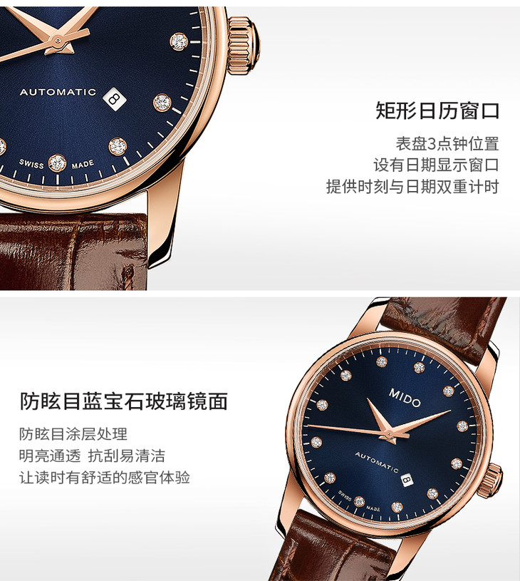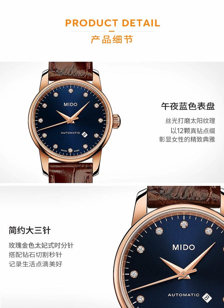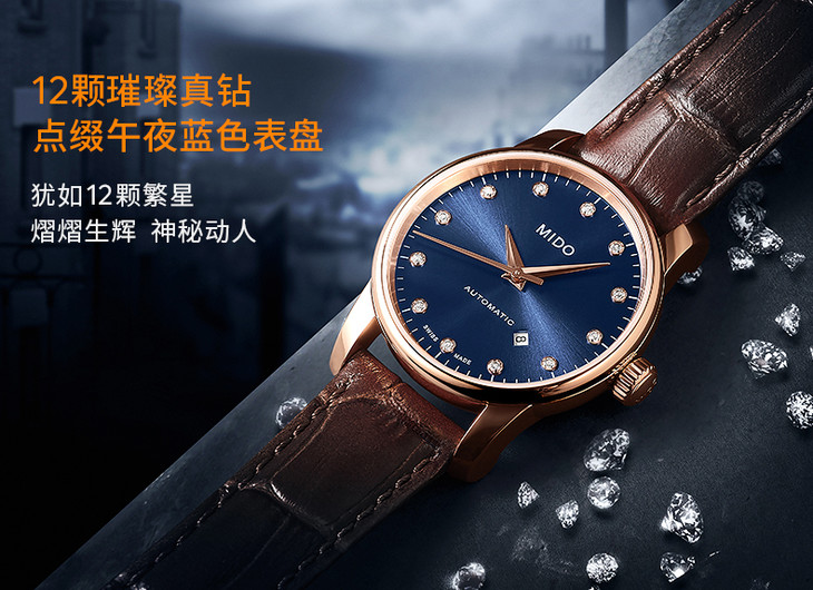 蓝色表盘,镶嵌12颗钻石(0.078克拉)时标