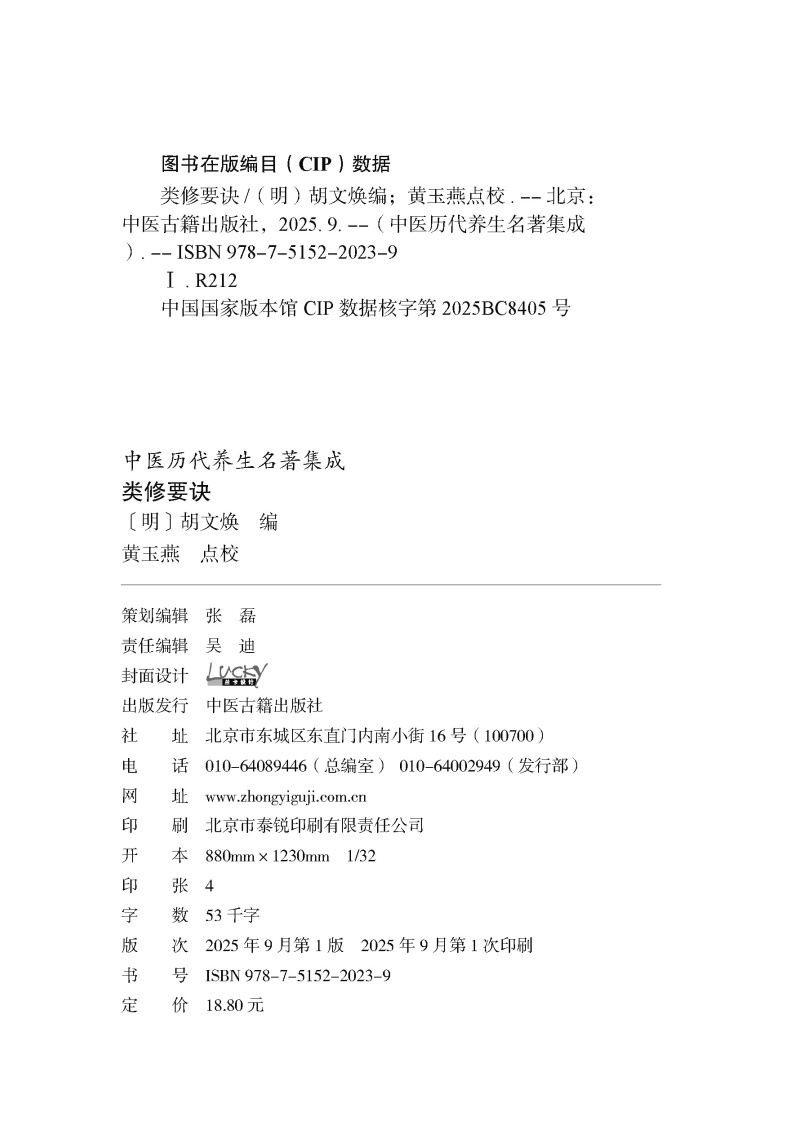 书名:类修要诀 中医历代养生名著集成