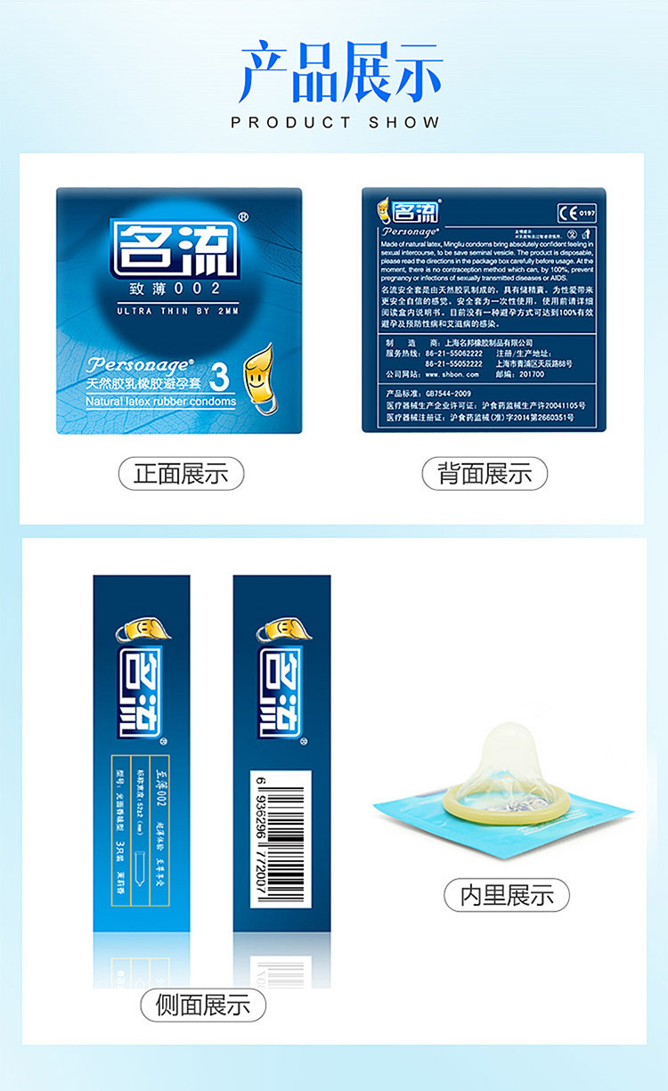 名流 避孕套超薄 安全套润滑 成人情趣性用品男用 致薄002 3只装