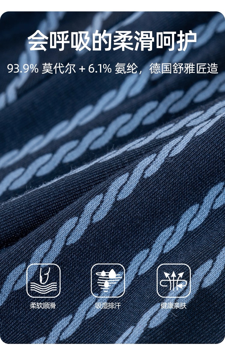 【莫代尔经典条纹】舒雅男士中腰平角裤95%莫代尔 5%氨纶 180克 39/25518T