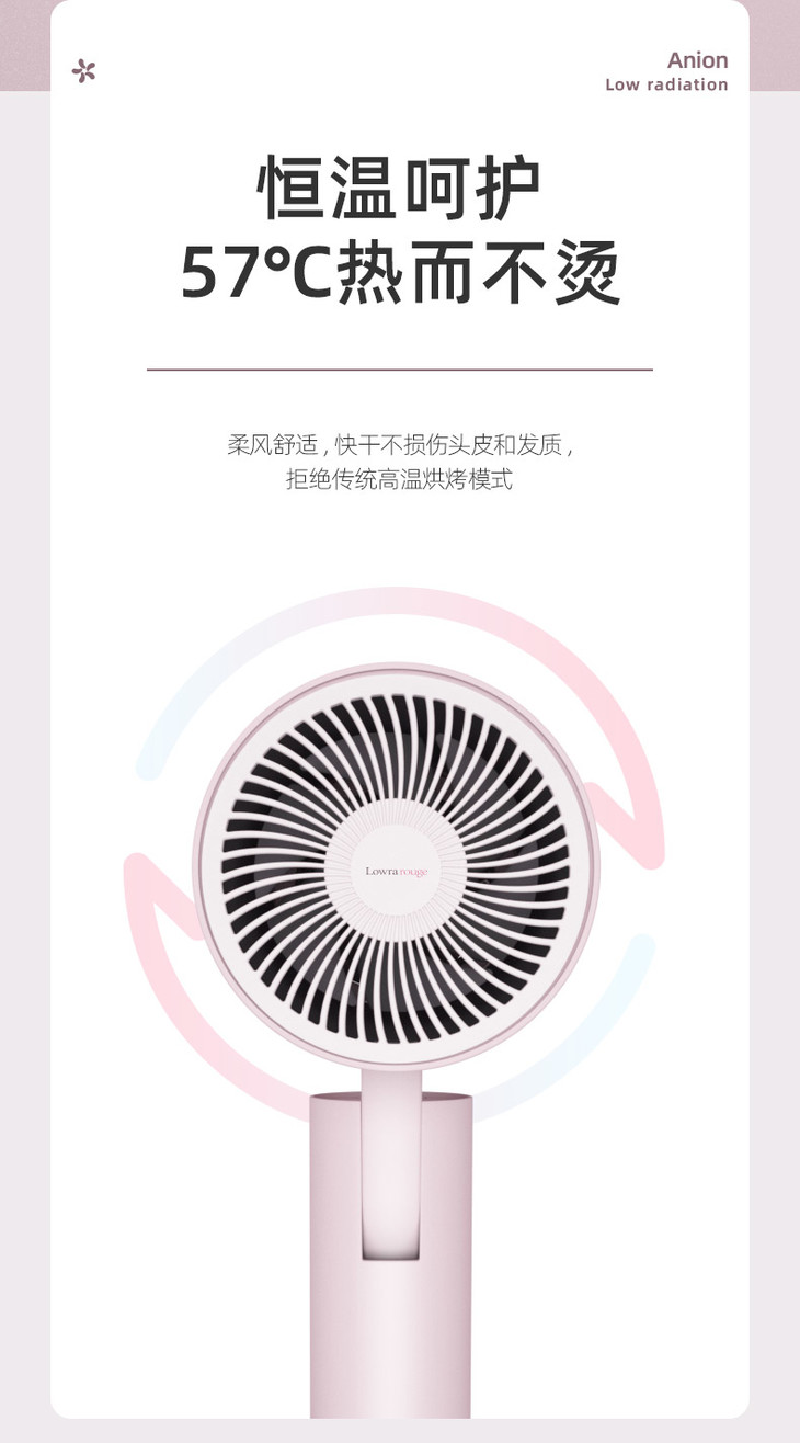 Lowra rouge罗拉家用出风口低辐射吹风机冷热风负离子电吹风礼盒