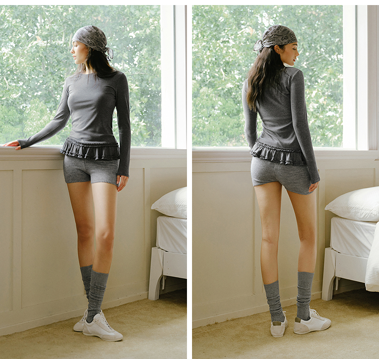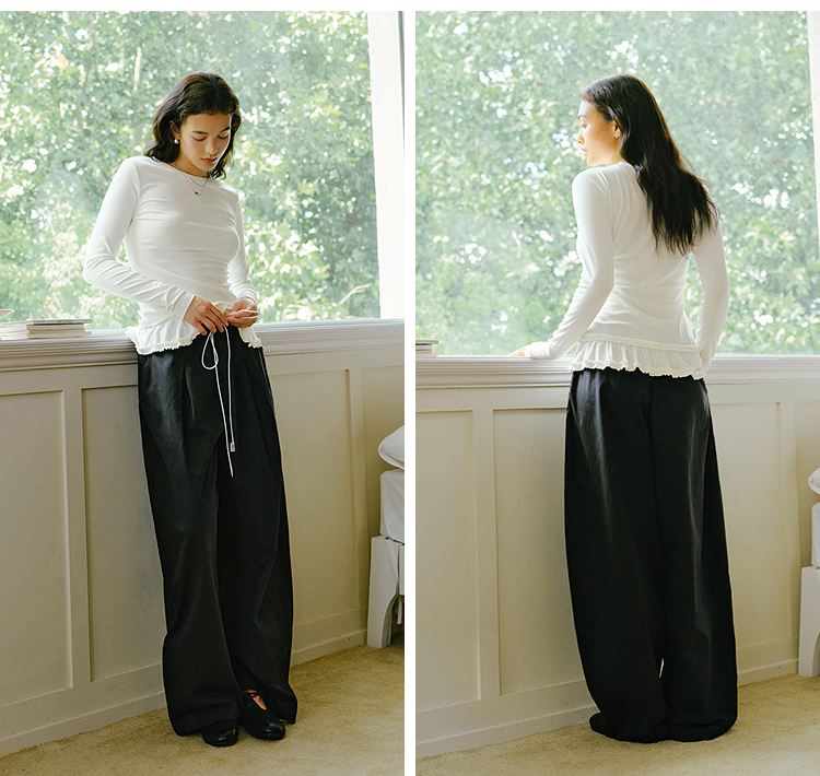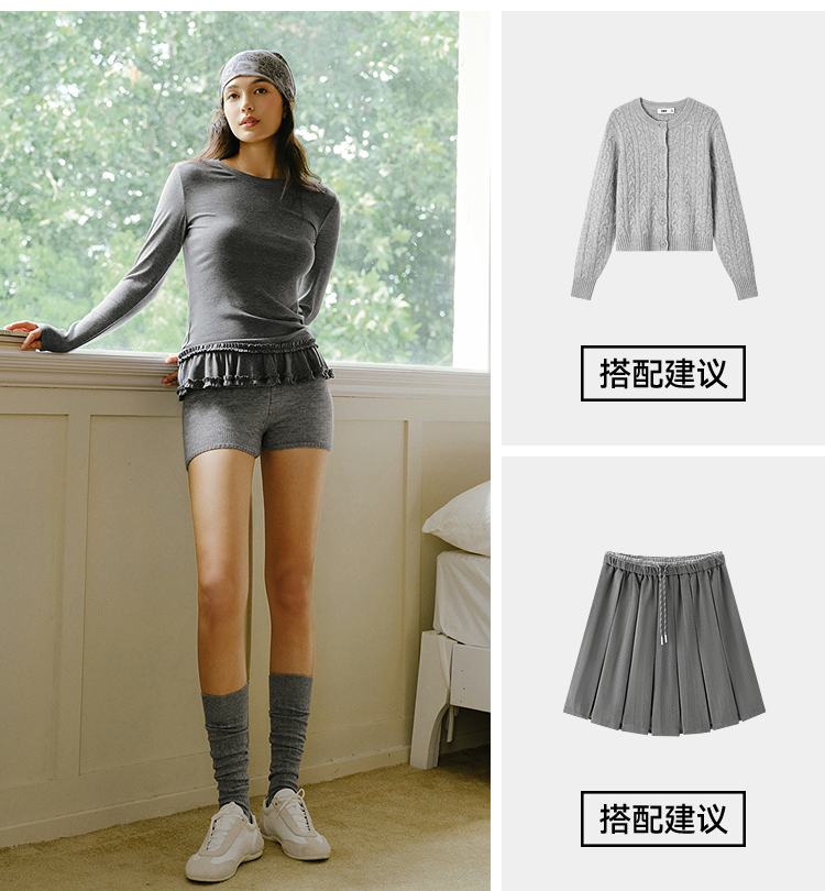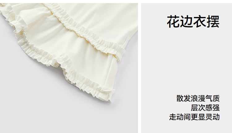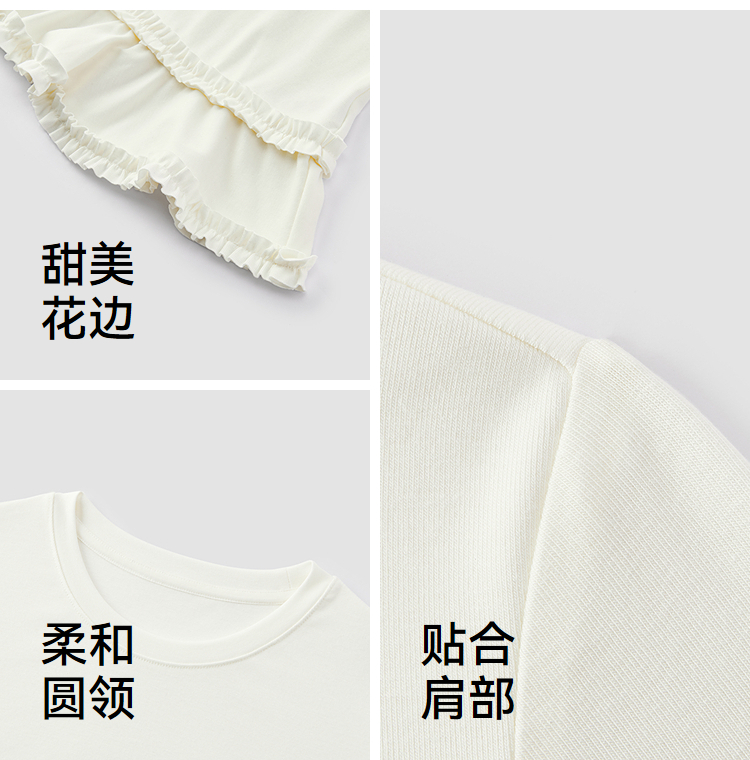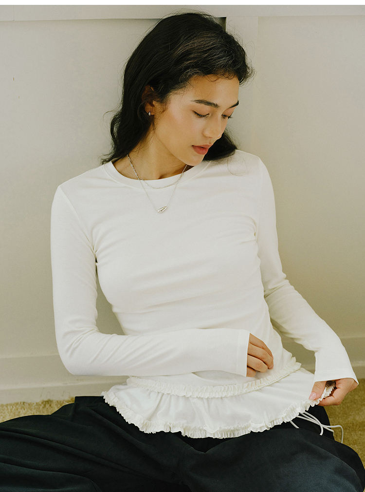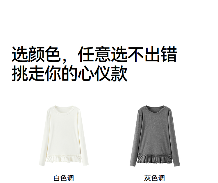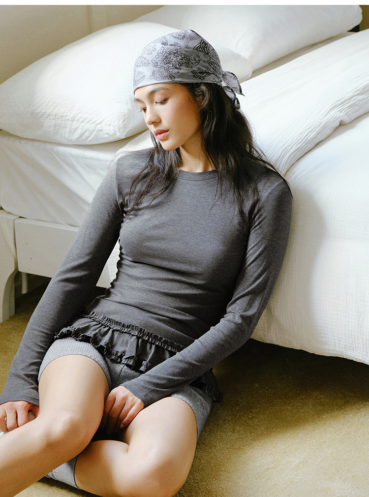 森马长袖T恤女纯色木耳边气质紧身冬2025新款荷叶边上衣简约甜美