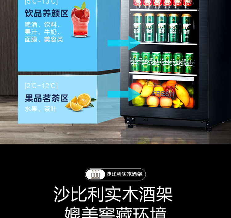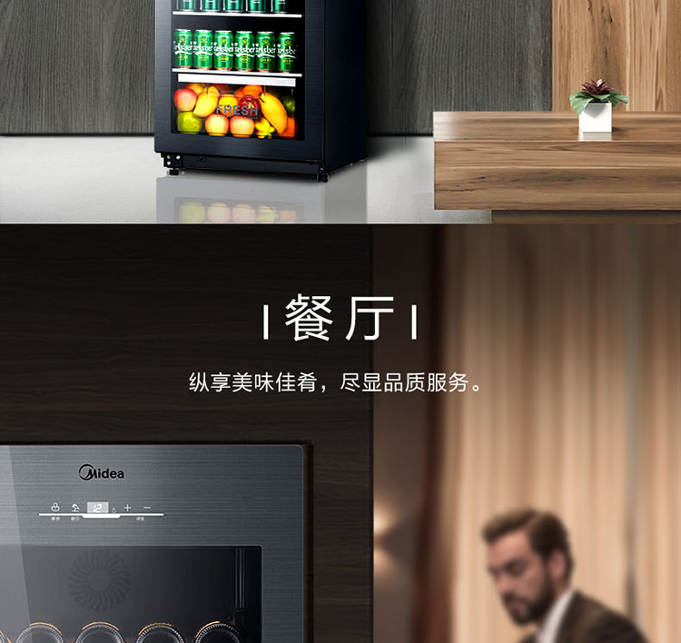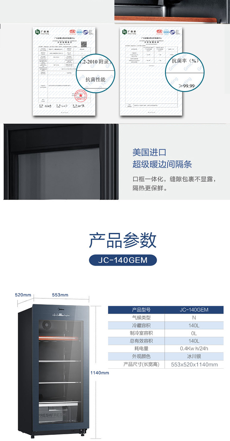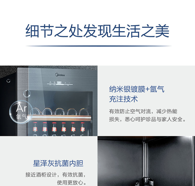 美的 (Midea) 140升 恒温红酒柜 时尚冰吧 酒窖级立式家用商用柜葡萄酒展示冰柜 (冰川银) JC-140GEM