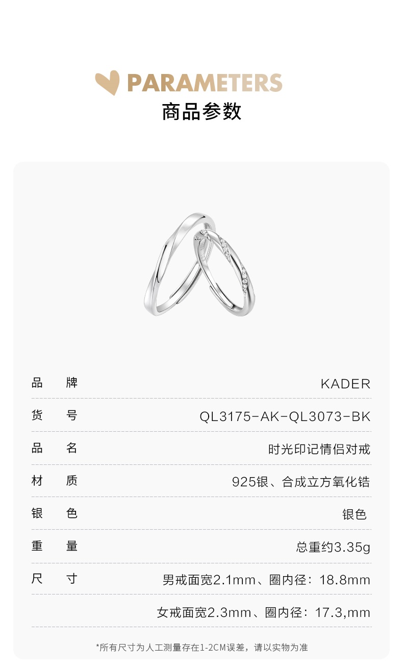 卡蒂罗/KADER 共赴爱河系列 时光印记情侣对戒 莫比乌斯钟爱久久可调节情侣对戒 经典浪漫无尽的爱恋爱频率 礼物