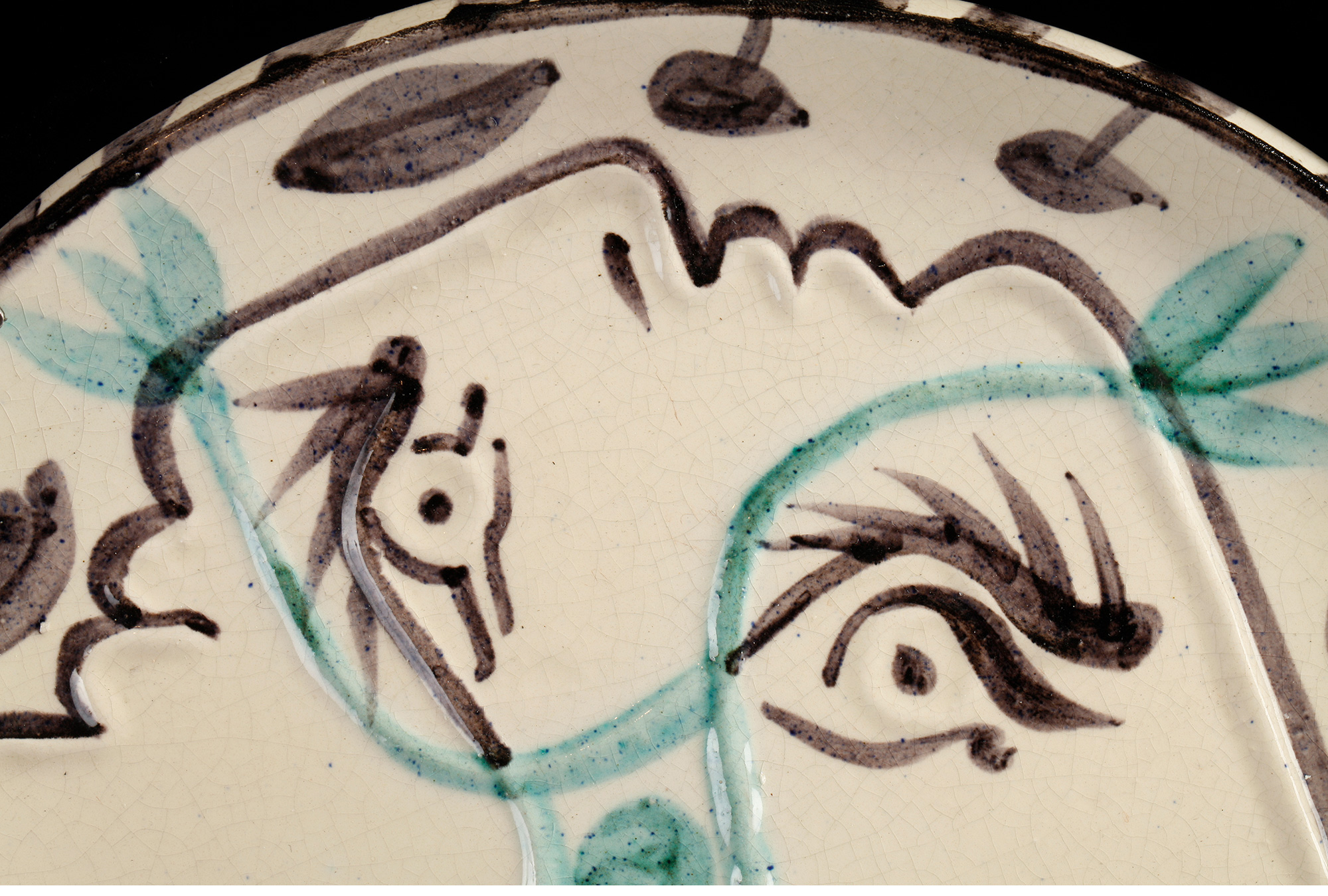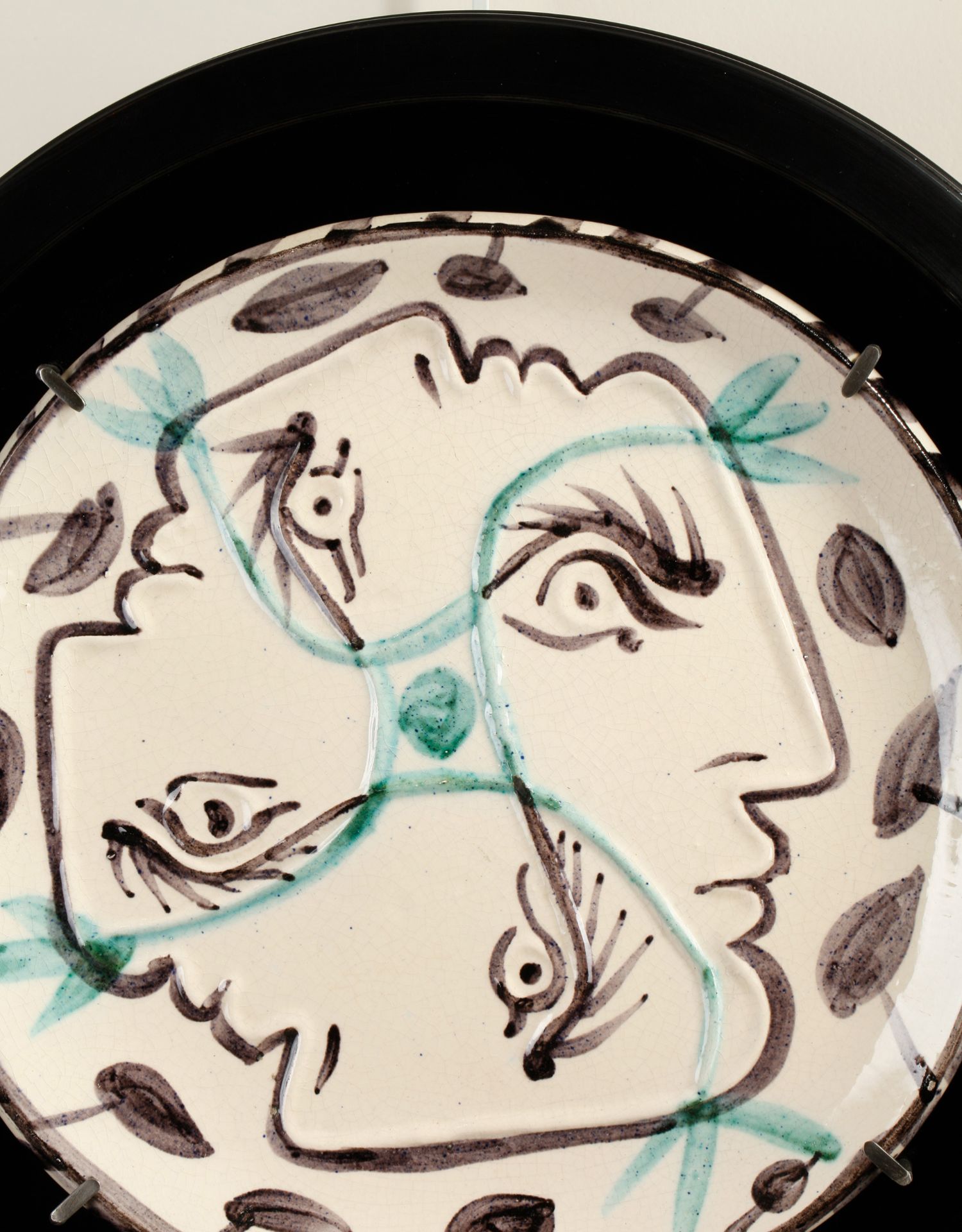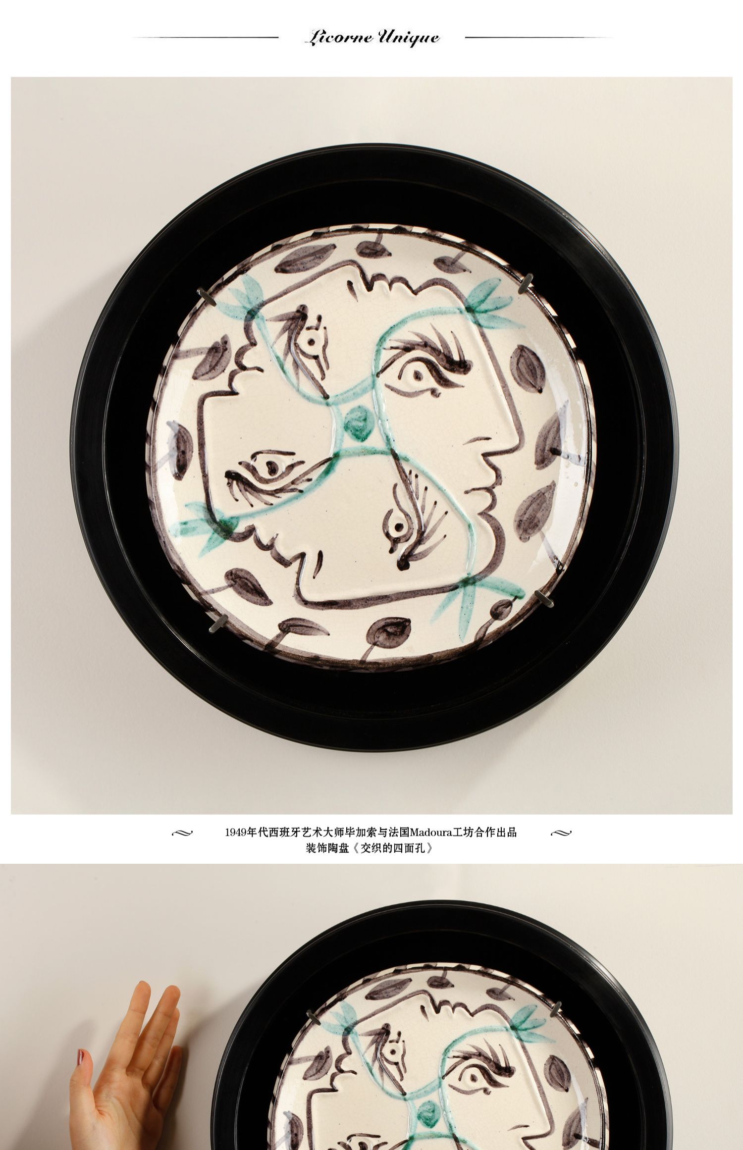 独角鹿西洋古董毕加索与Madoura工坊合作装饰陶盘交织的四面孔