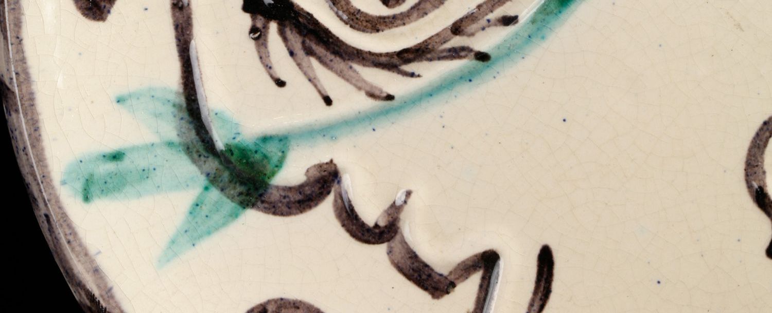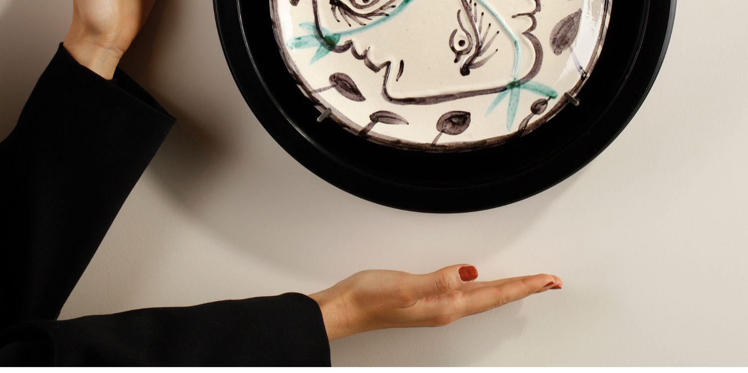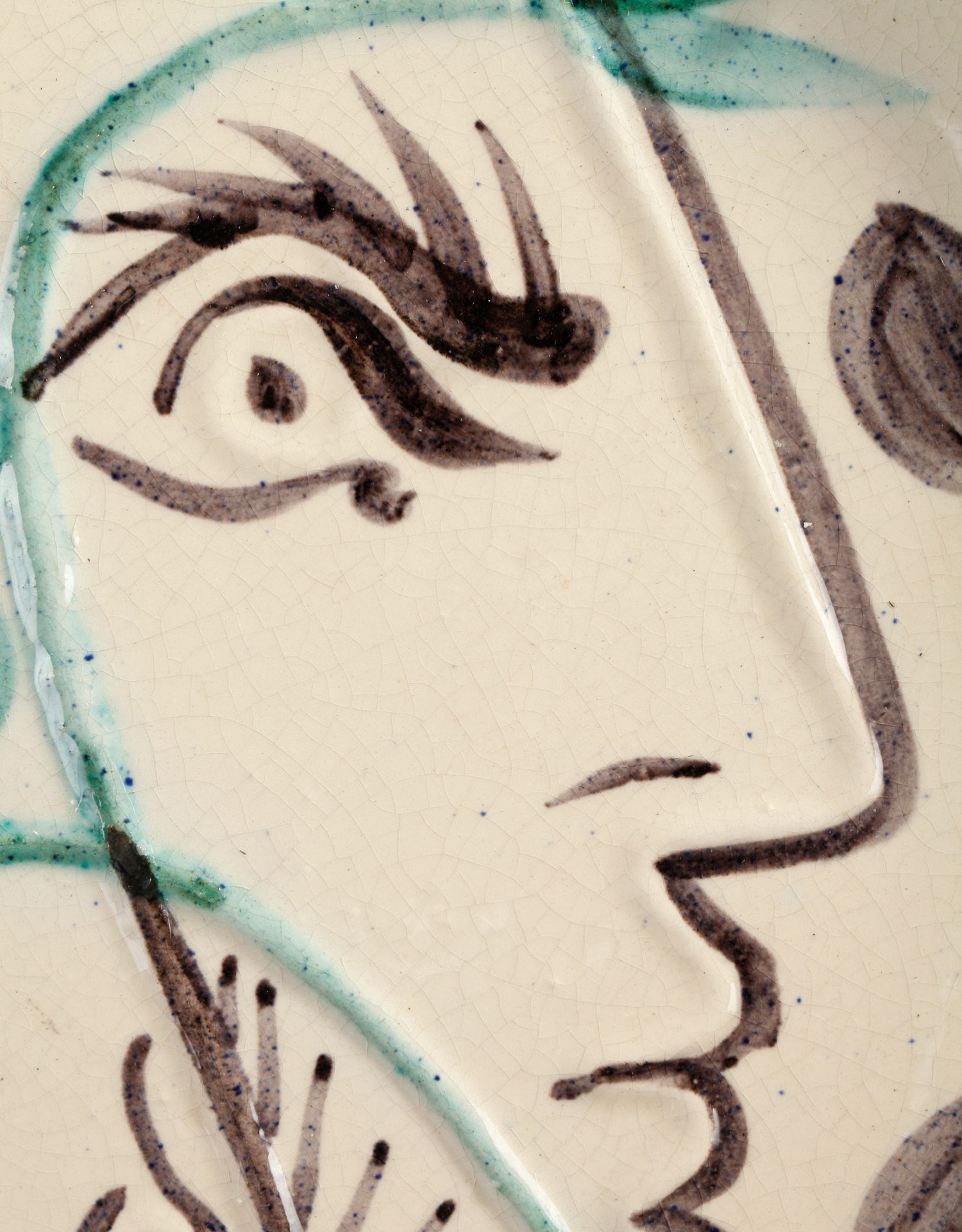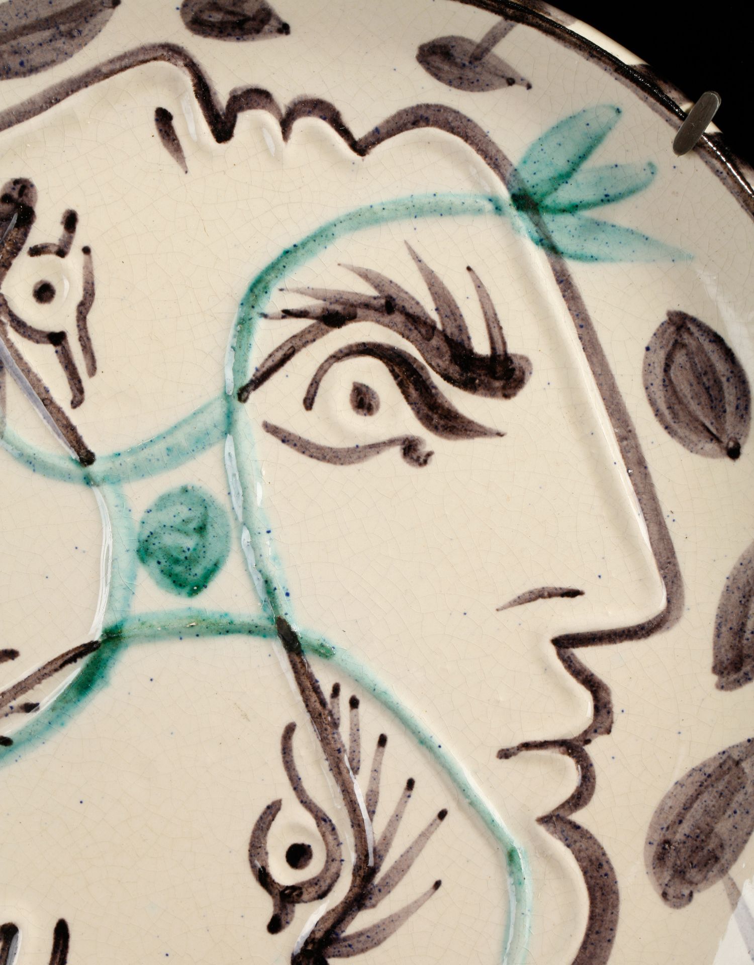 独角鹿西洋古董毕加索与Madoura工坊合作装饰陶盘交织的四面孔