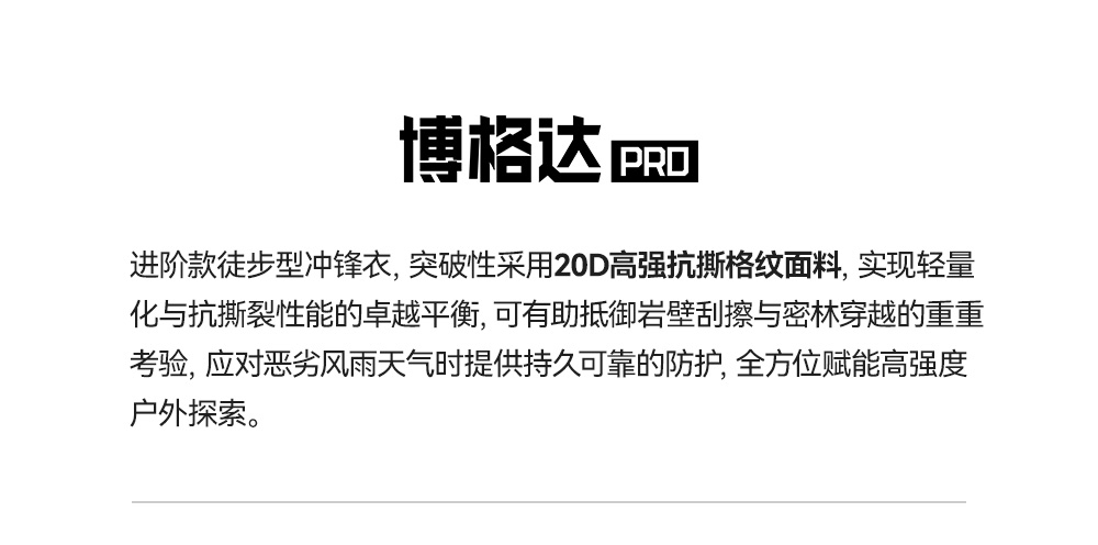 - 致力于推动登山及探险运动发展,为运动员及专业爱好者提供高性能的户外装备。