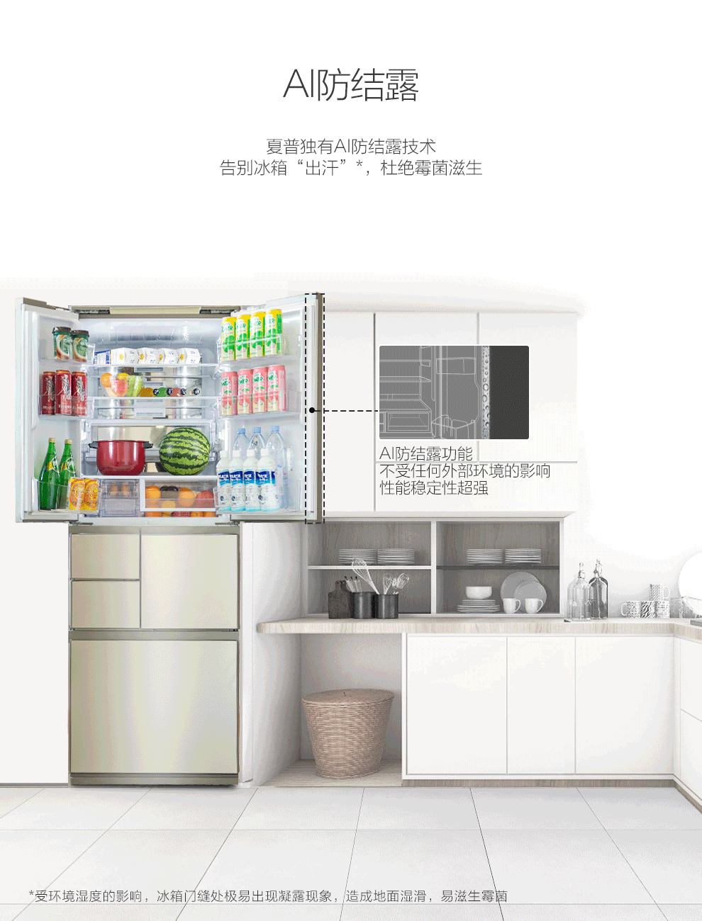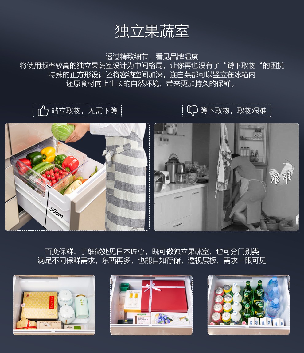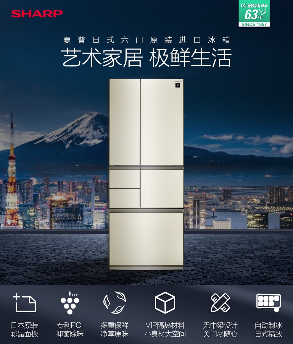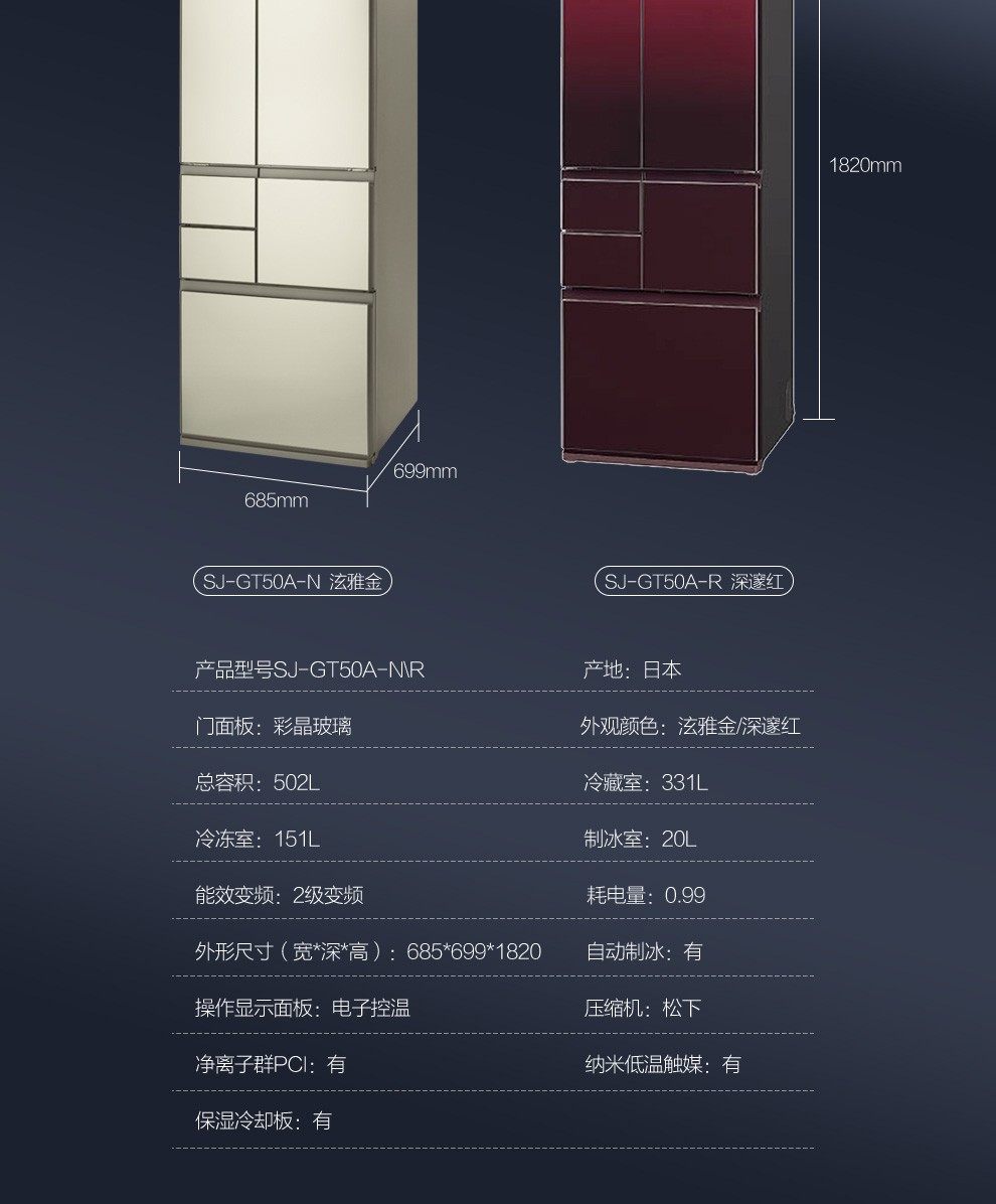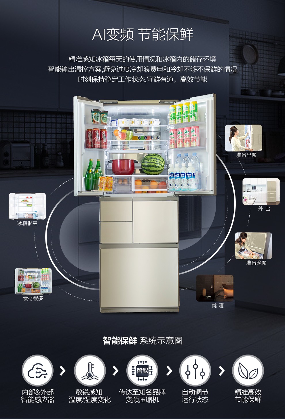 夏普 502升 泫雅金法式五门冰箱 SJ-GT50A-N(日本原装进口)