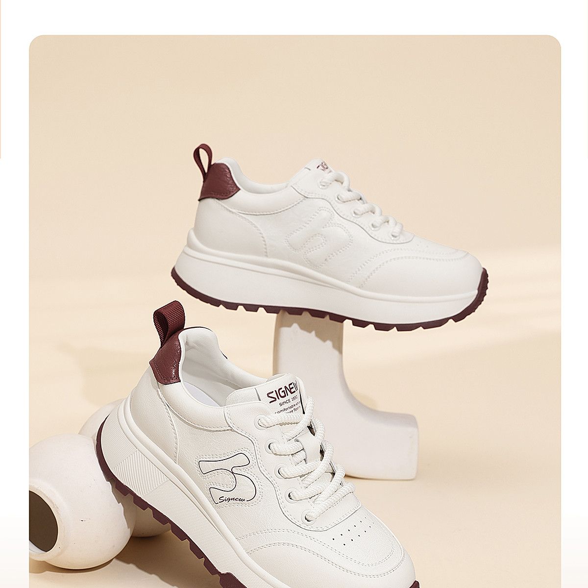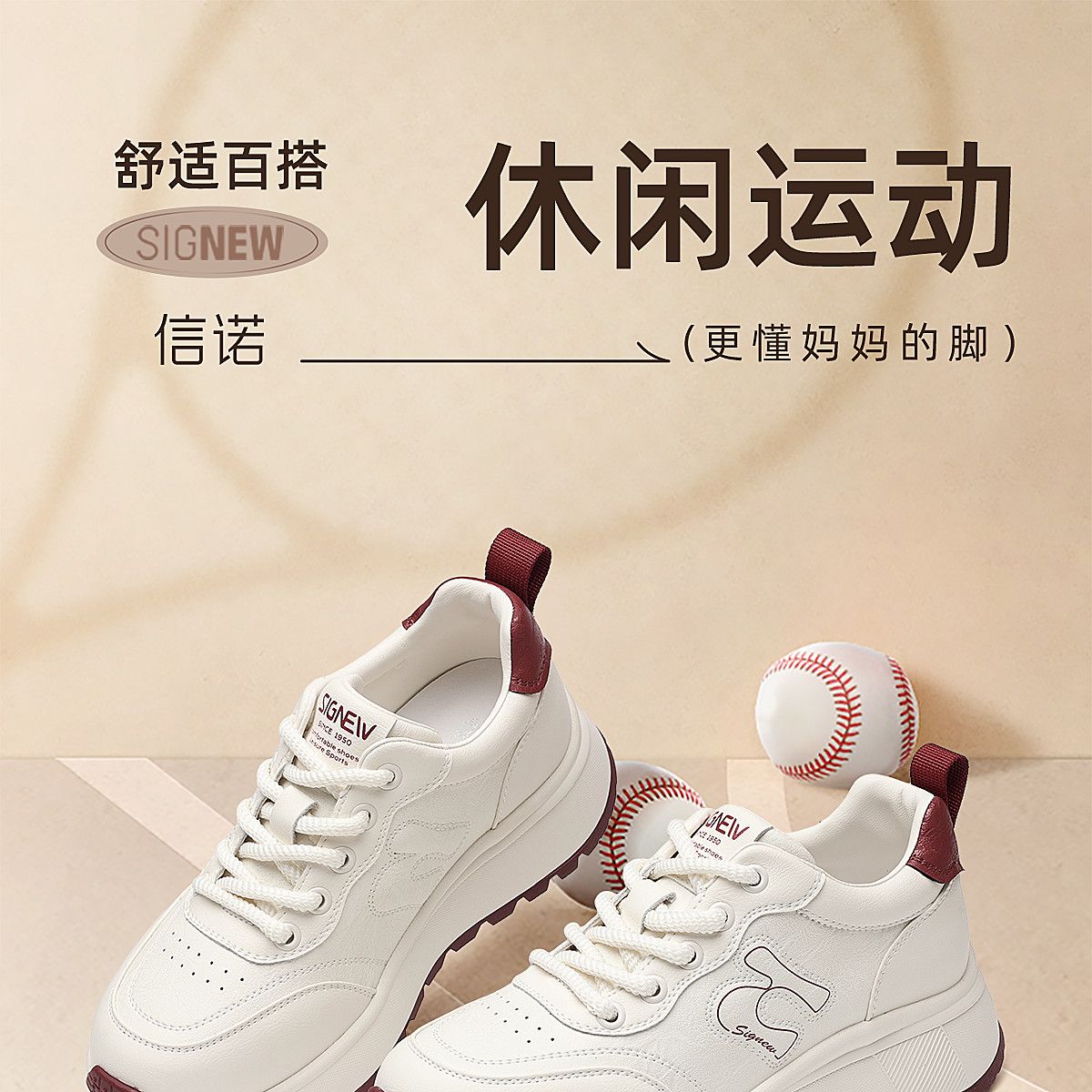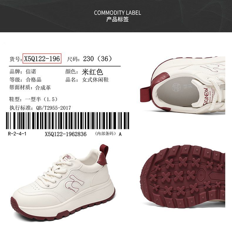 信诺时尚妈妈鞋厚底增高小白鞋舒适软底运动休闲鞋女2025秋季新款X5Q122-196