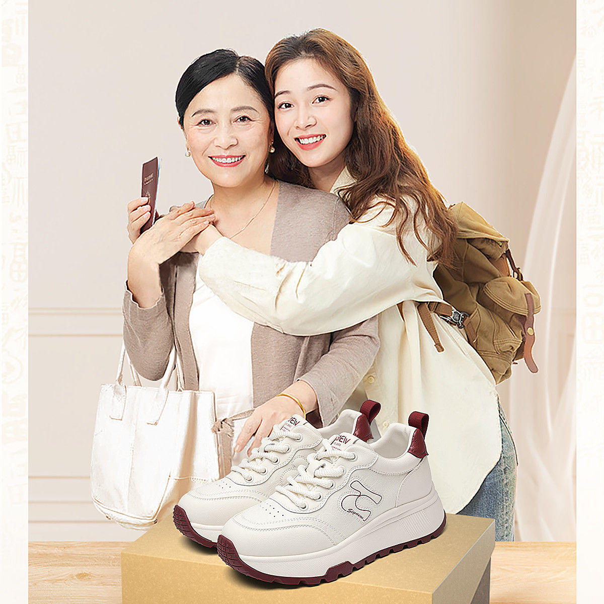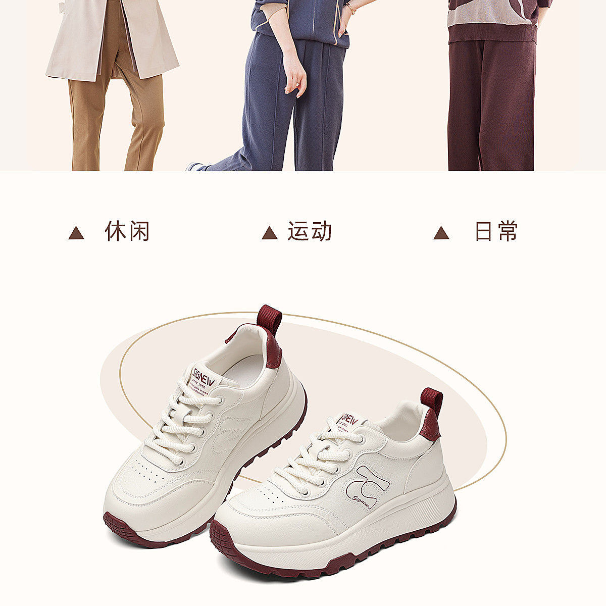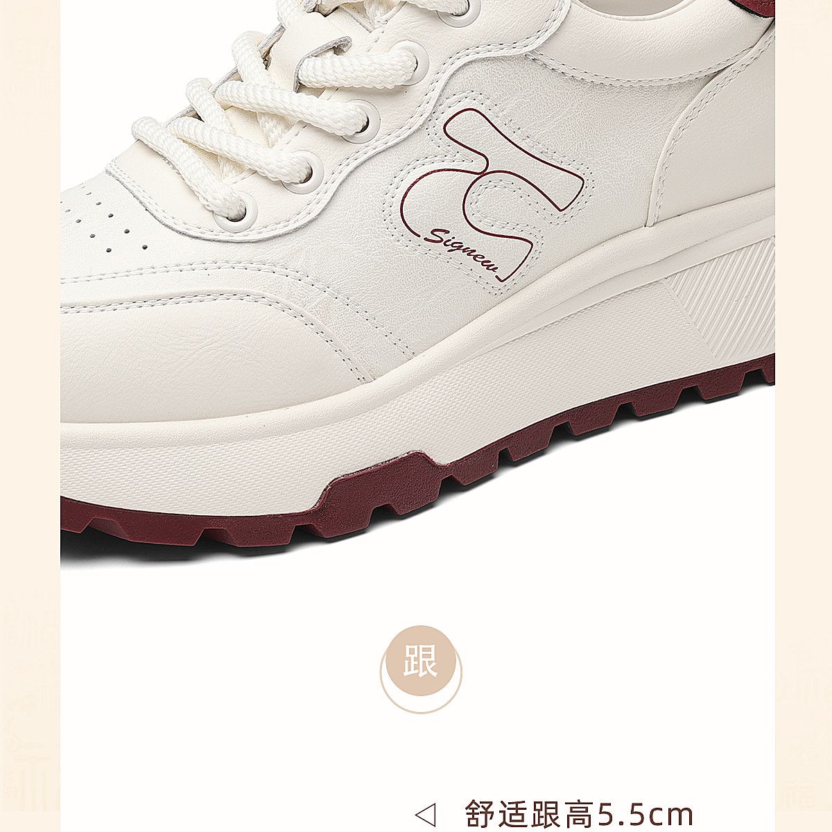 信诺时尚妈妈鞋厚底增高小白鞋舒适软底运动休闲鞋女2025秋季新款X5Q122-196
