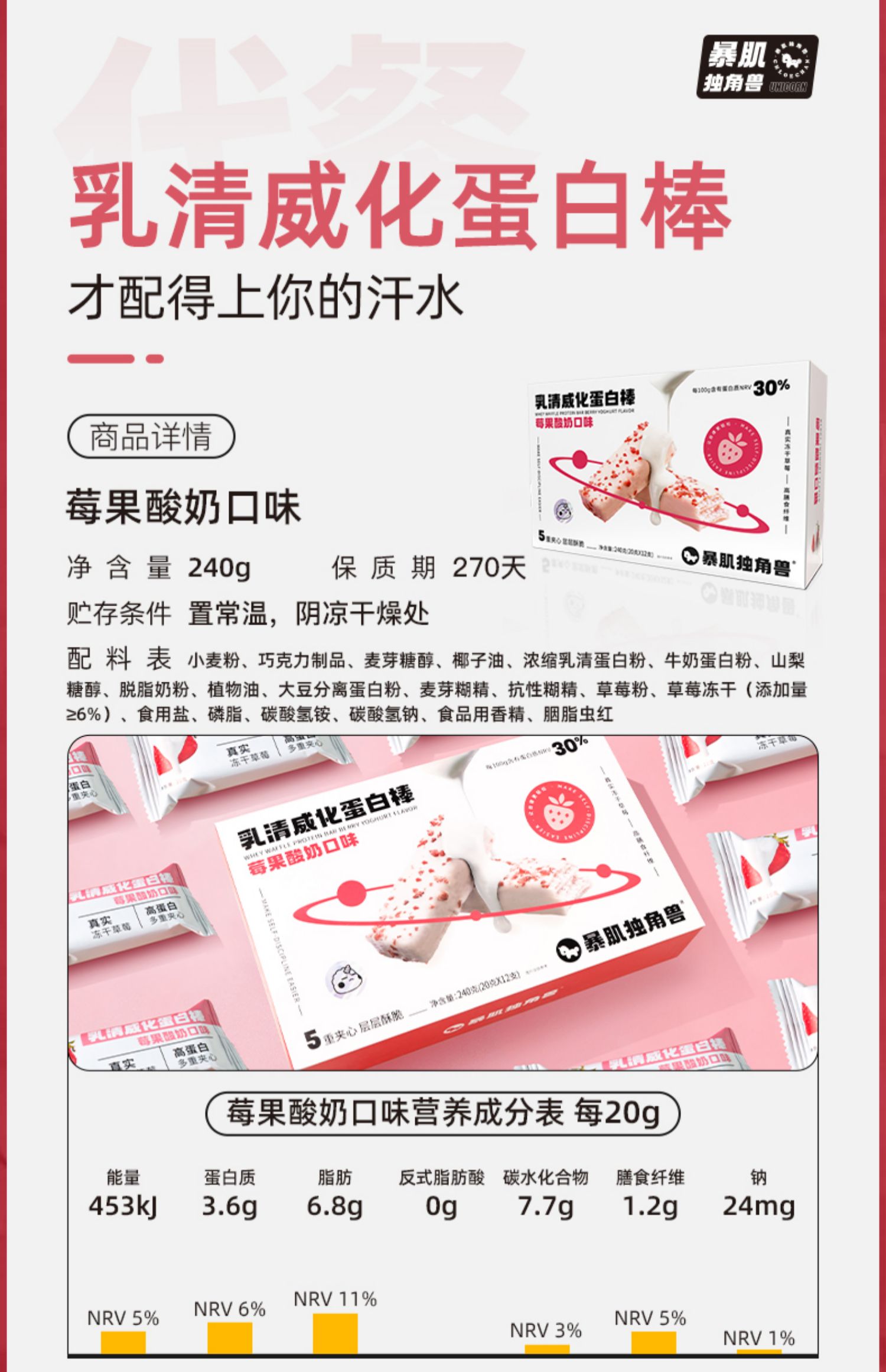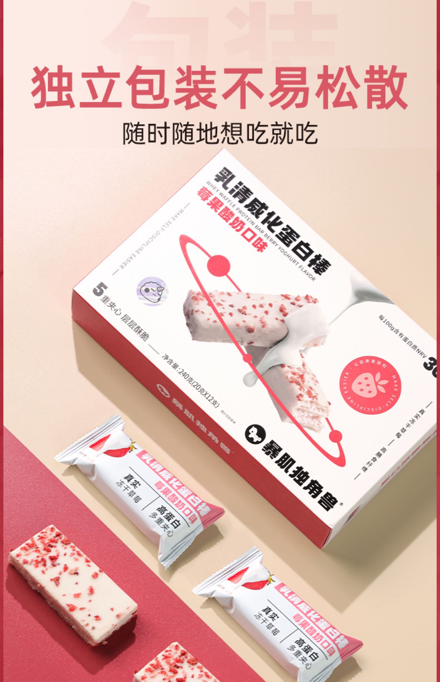 暴肌独角兽乳清蛋白棒冻干威化健身能量棒解馋代餐饱腹饼干零食品
