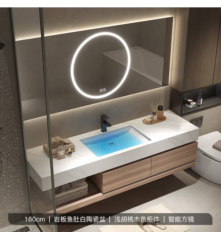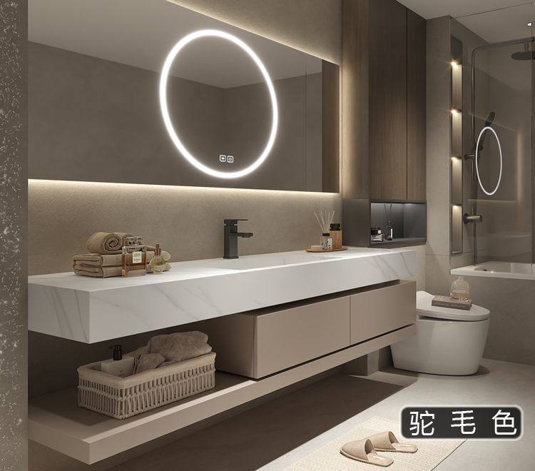 盆洗脸池卫生间组合风岩板台柜洗手盆一体奶油洗漱设计师浴室柜