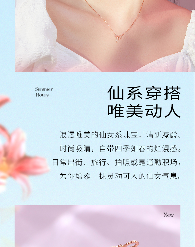 周六福 三色18K金肖邦链 锁骨链 多款可选项链 多彩