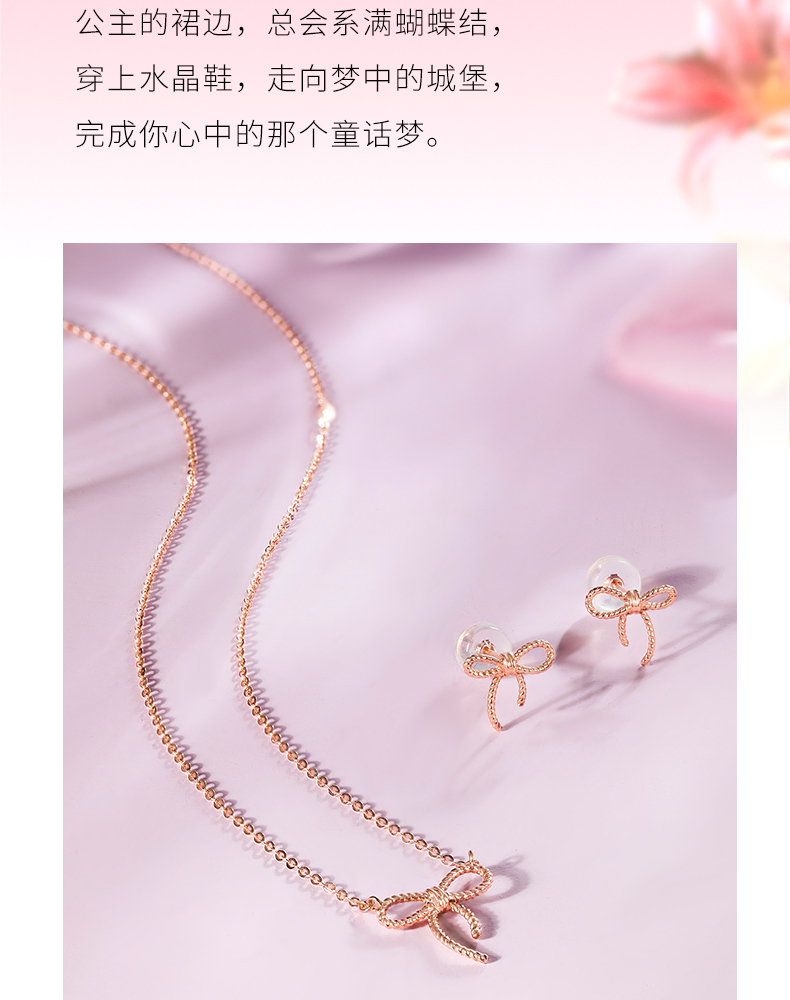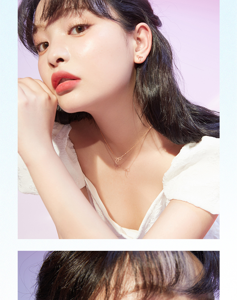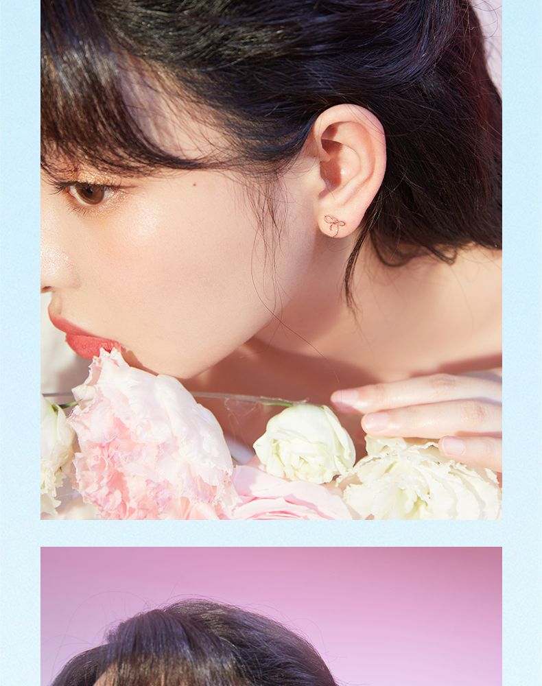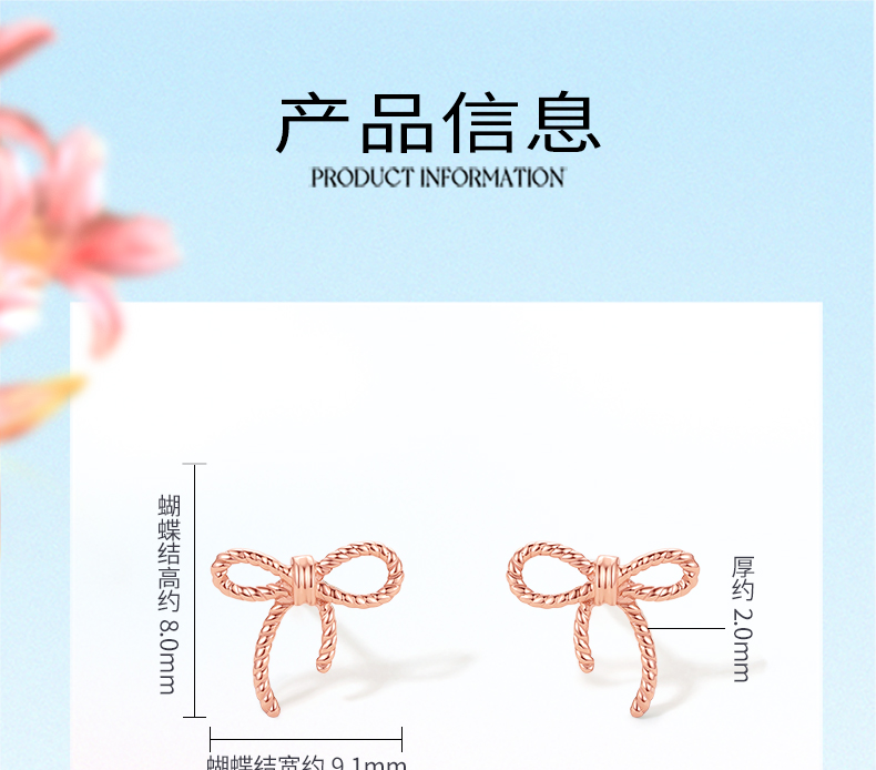 周六福珠宝18K金耳钉女精美多彩蝴蝶结耳饰耳环半夏时光系列