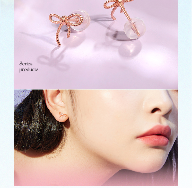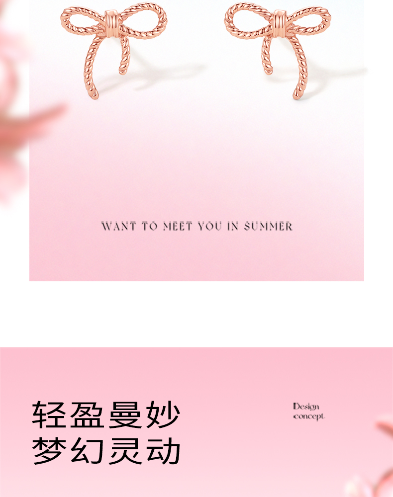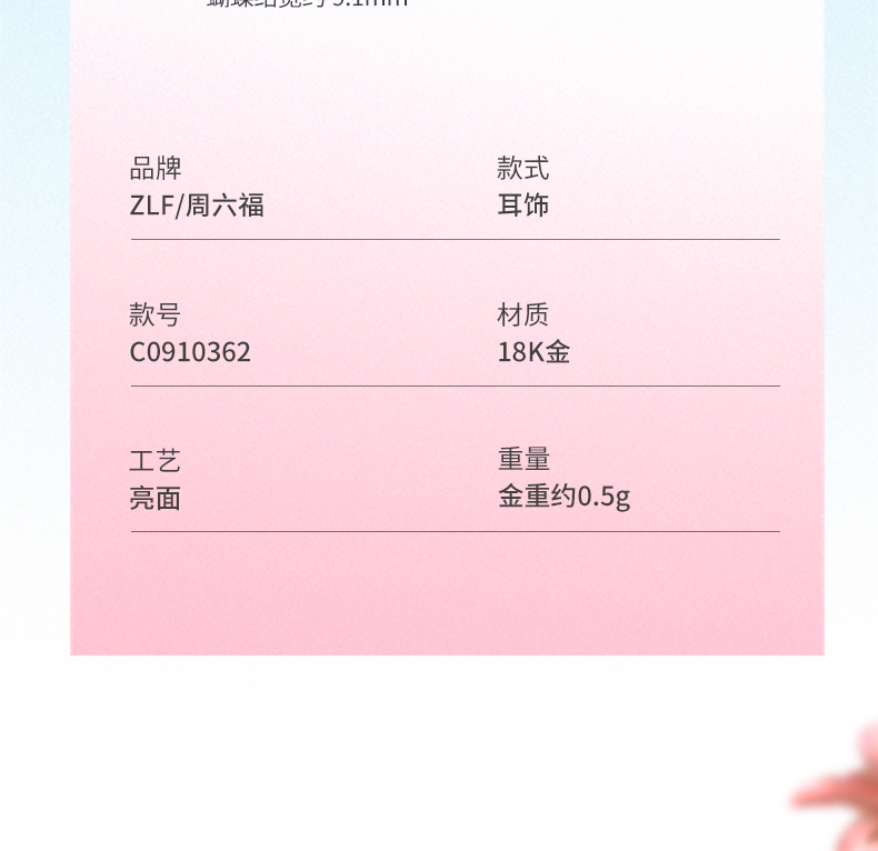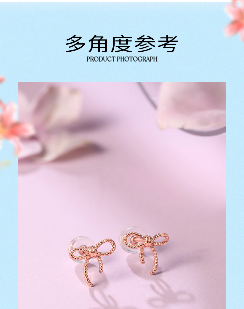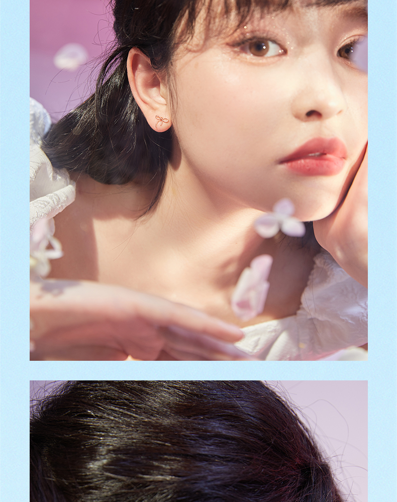 周六福珠宝18K金耳钉女精美多彩蝴蝶结耳饰耳环半夏时光系列