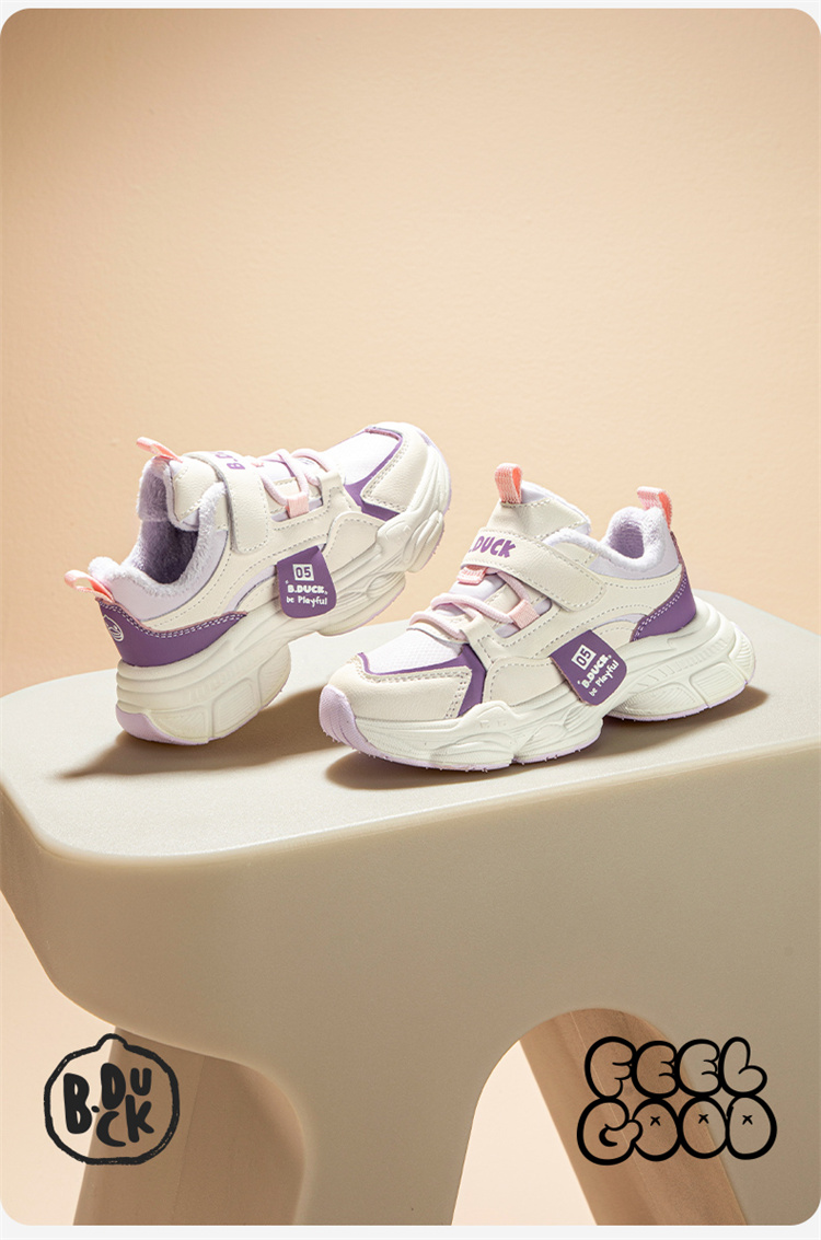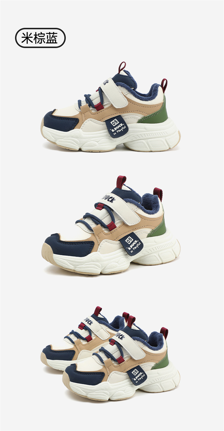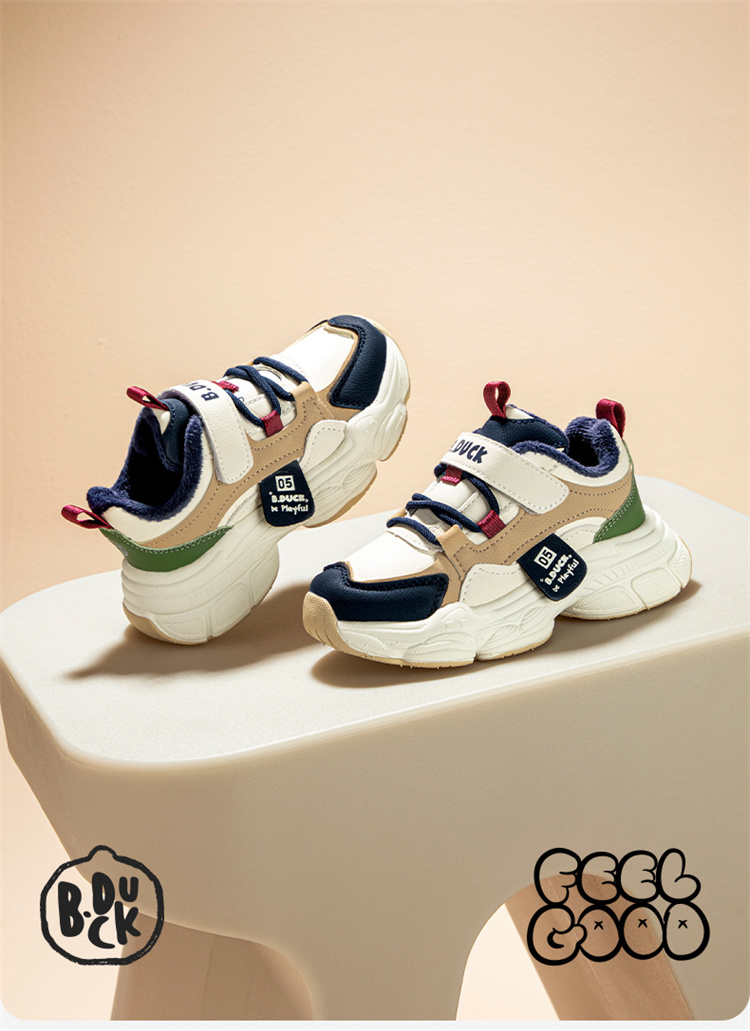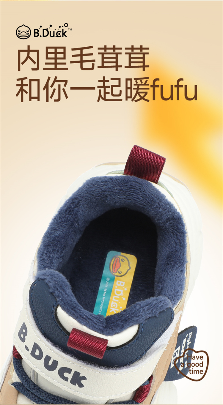 B.Duck小黄鸭童鞋加绒运动鞋冬季男女童魔术贴童鞋26-32 B5586920