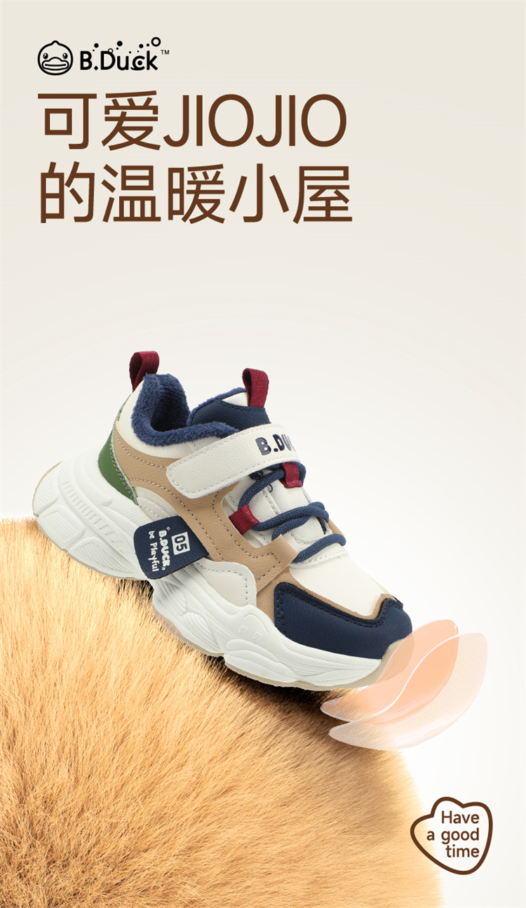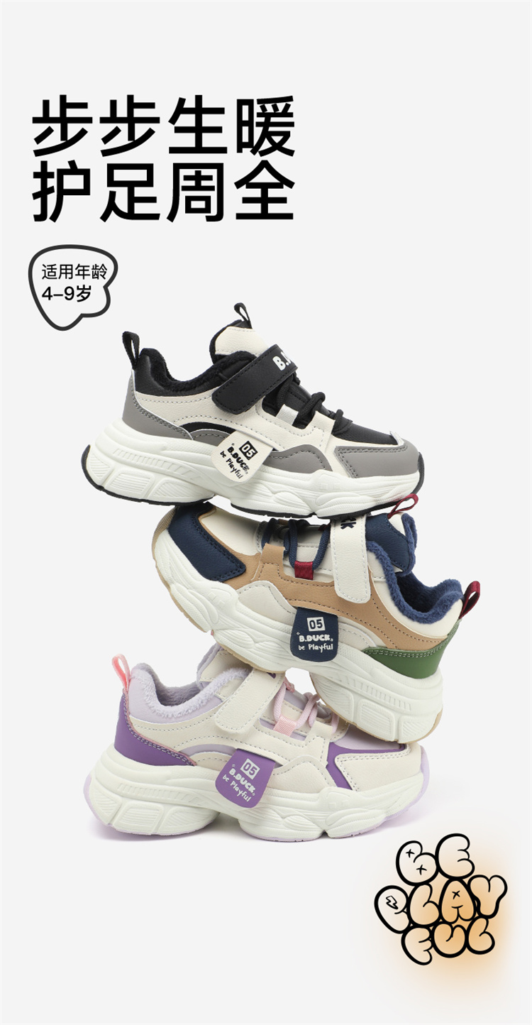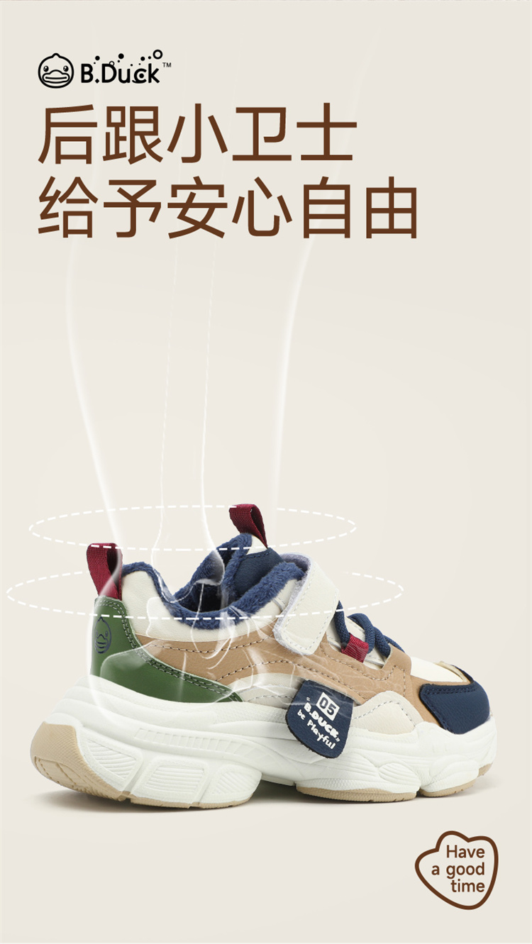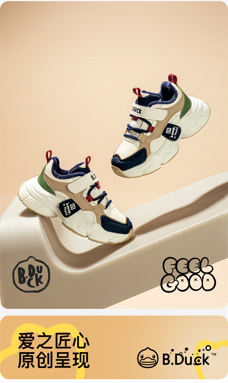 B.Duck小黄鸭童鞋加绒运动鞋冬季男女童魔术贴童鞋26-32 B5586920
