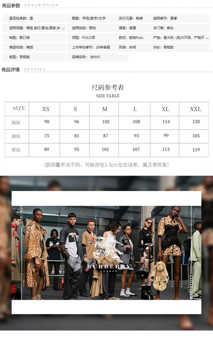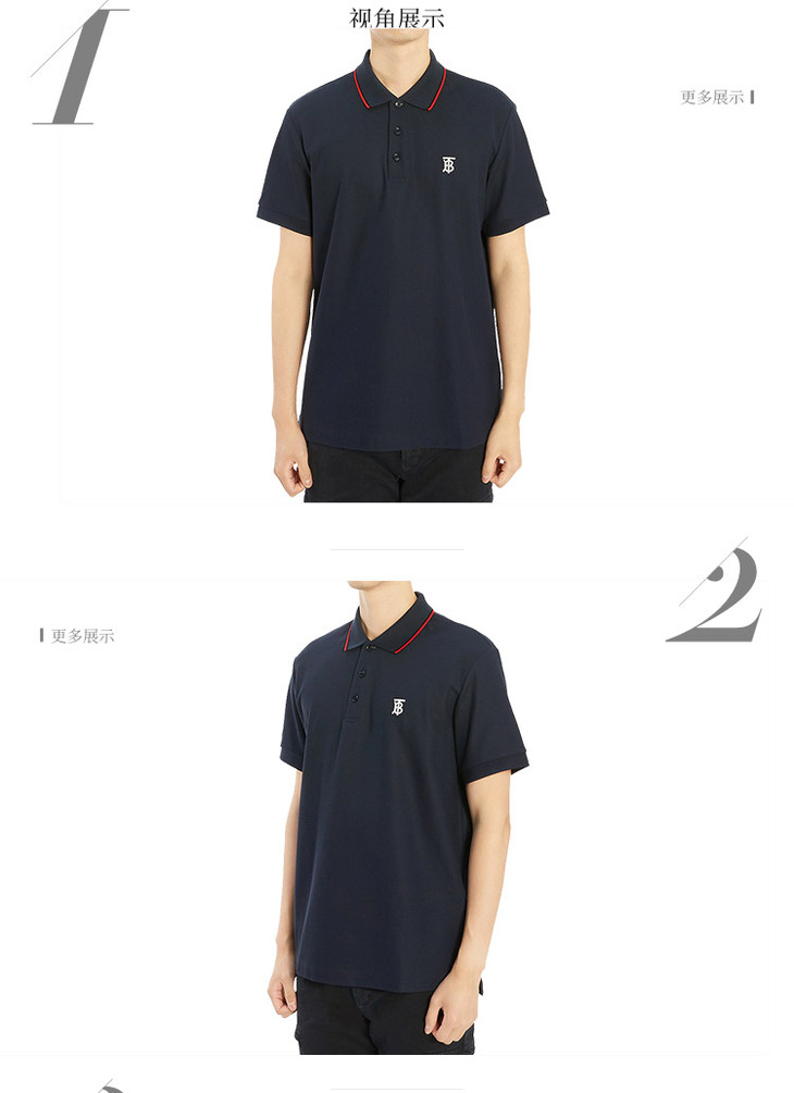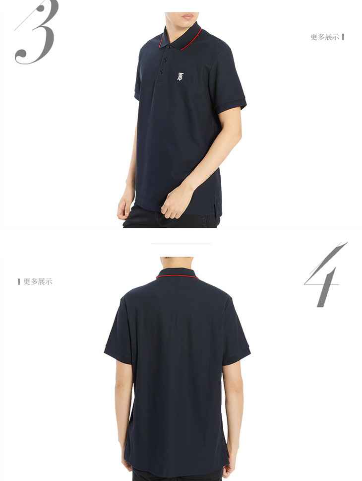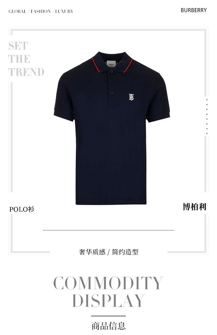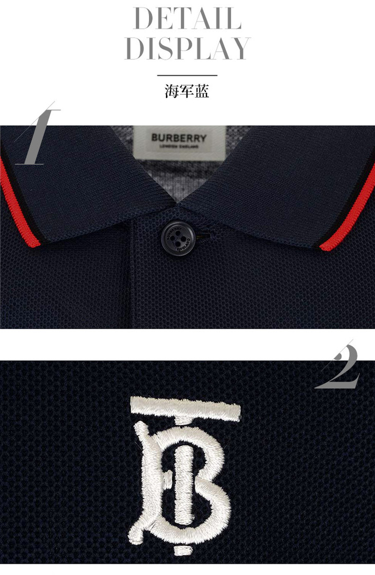 【二】BURBERRY 巴宝莉 男士棉质TB专属标识图案刺绣短袖 POLO衫 藏蓝色 8017007 A1222