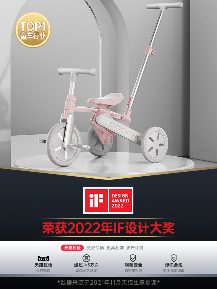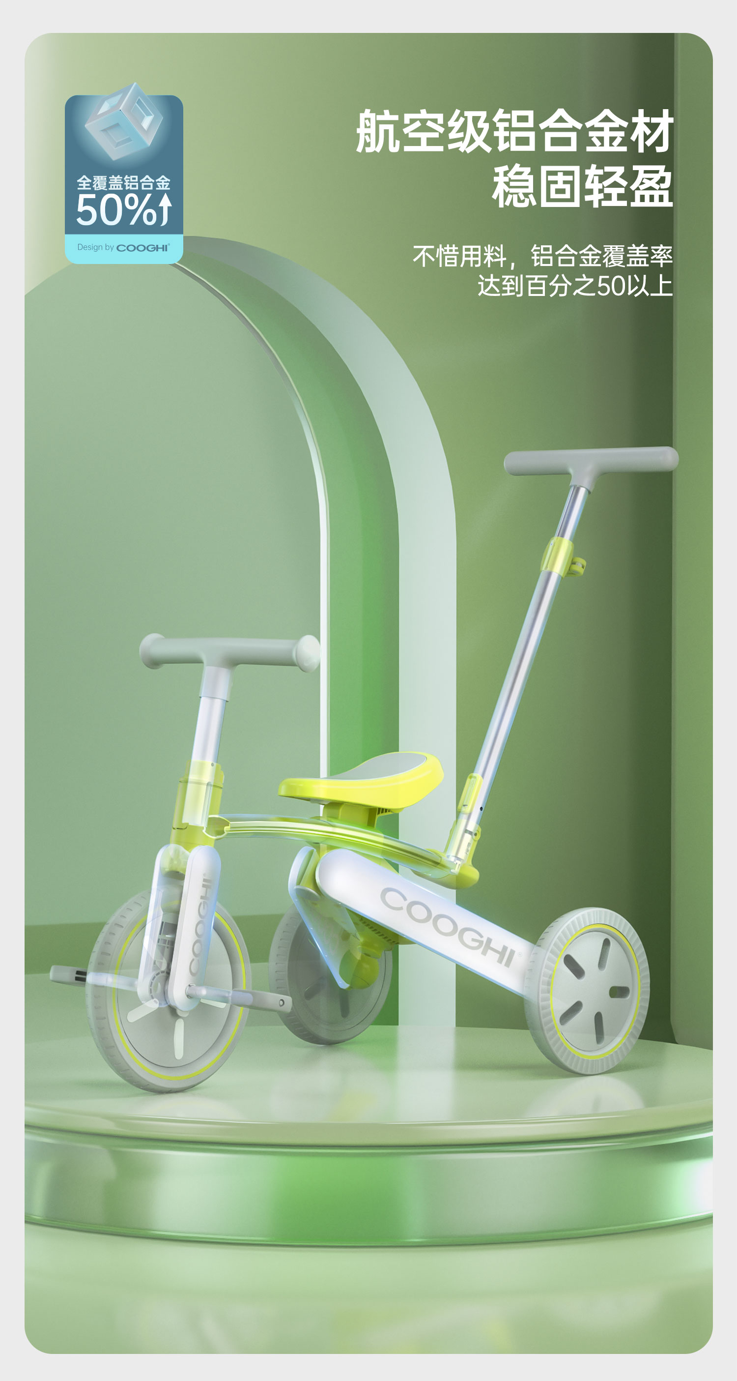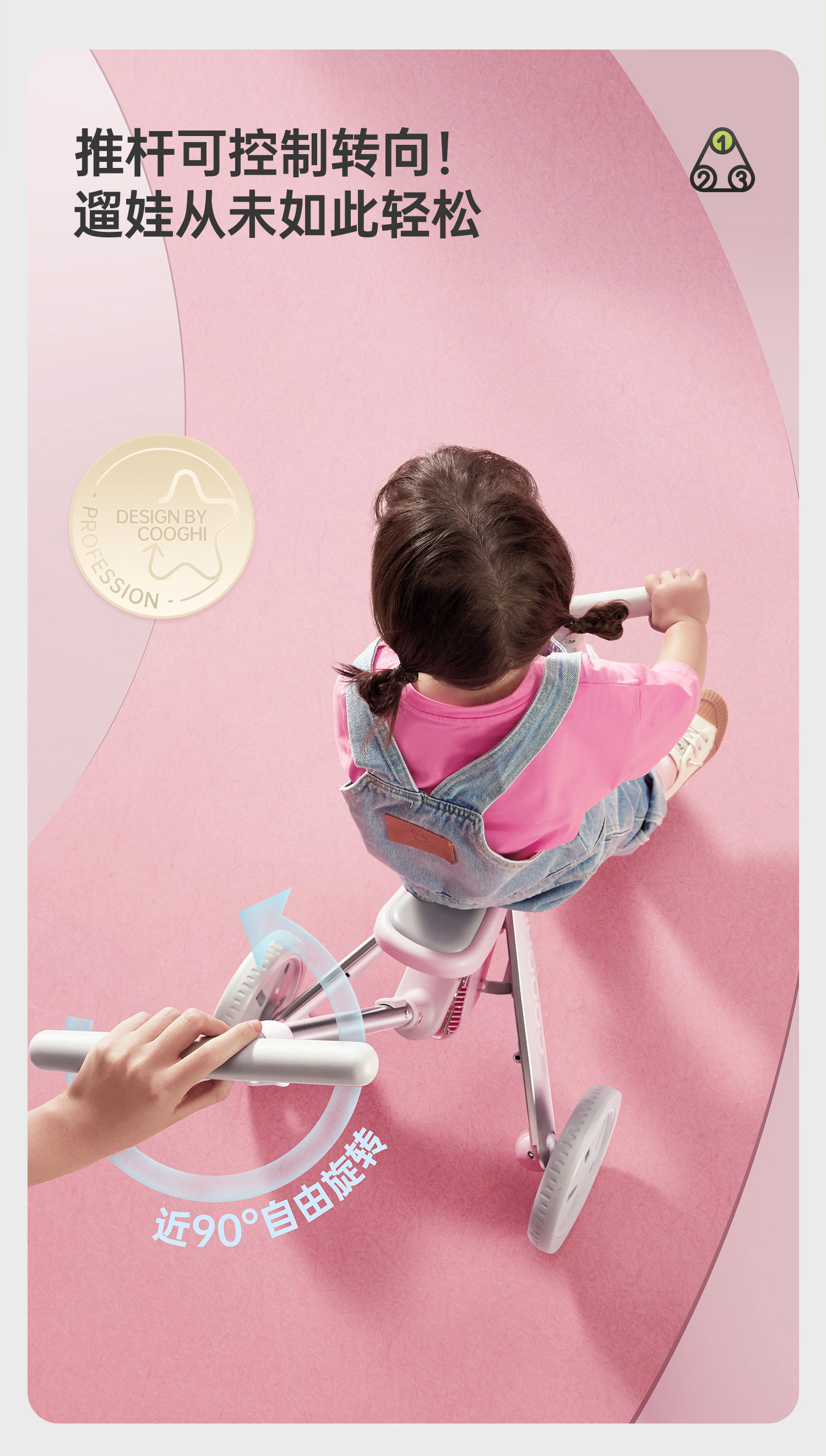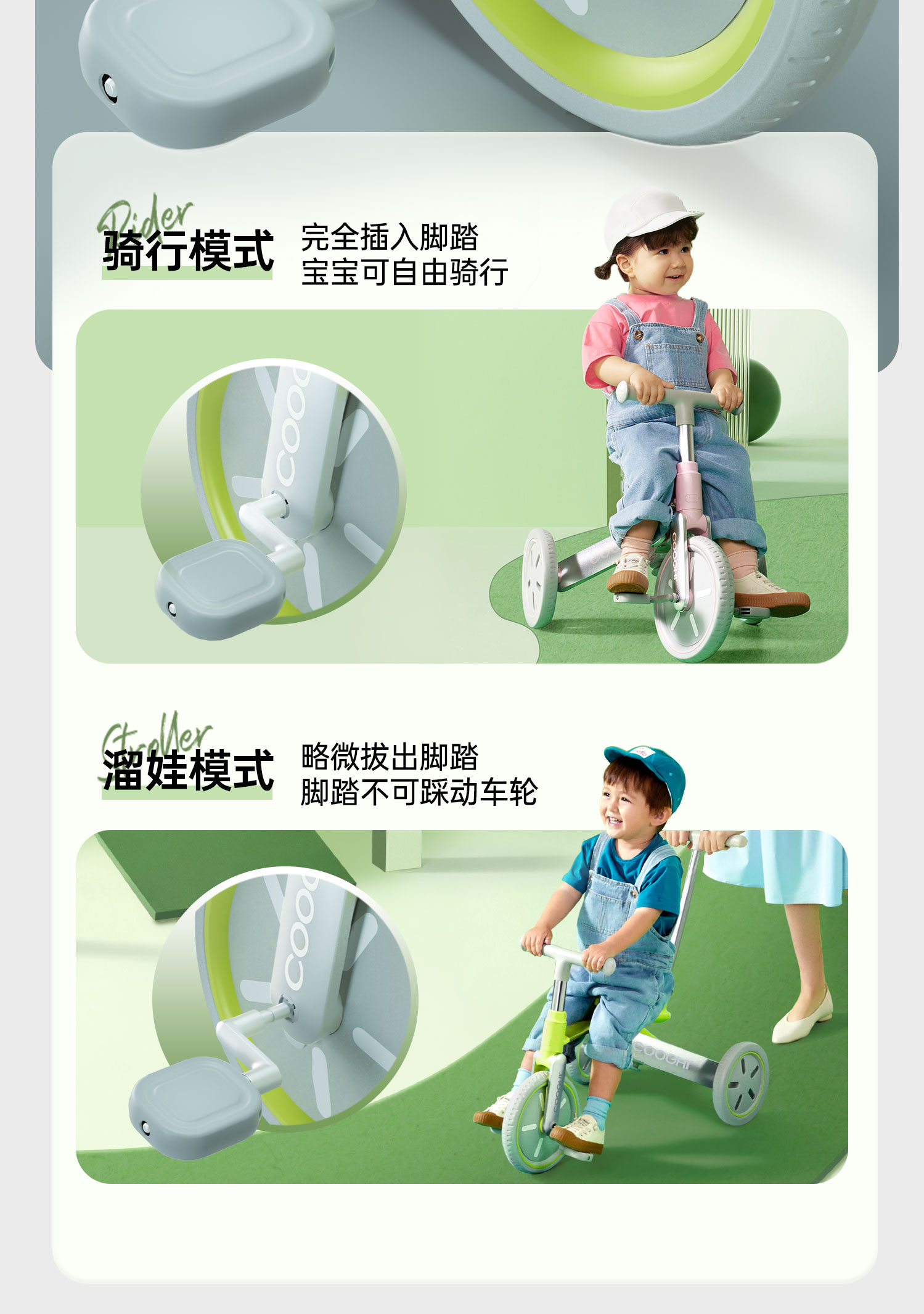COOGHI酷骑儿童三轮车脚踏车1-5岁自行车轻便宝宝推车溜遛娃神器