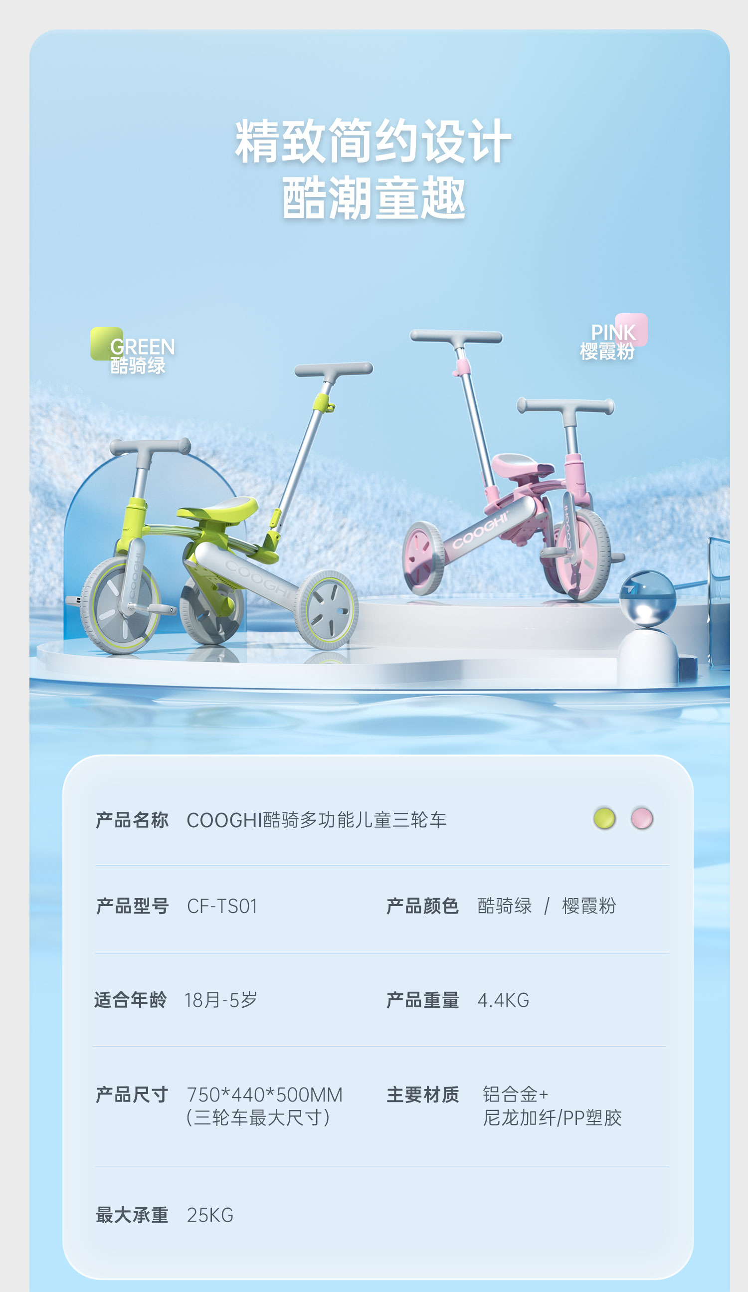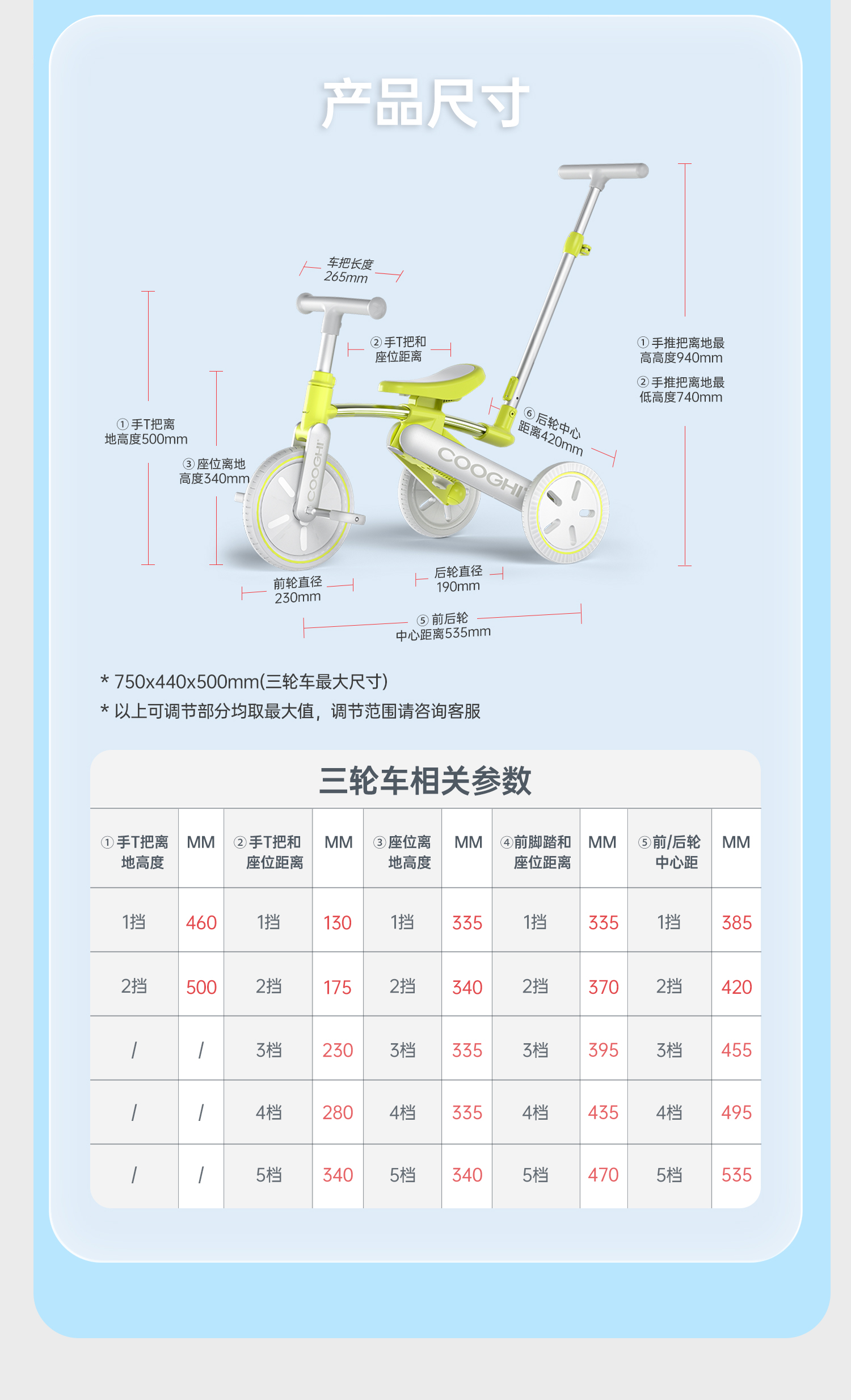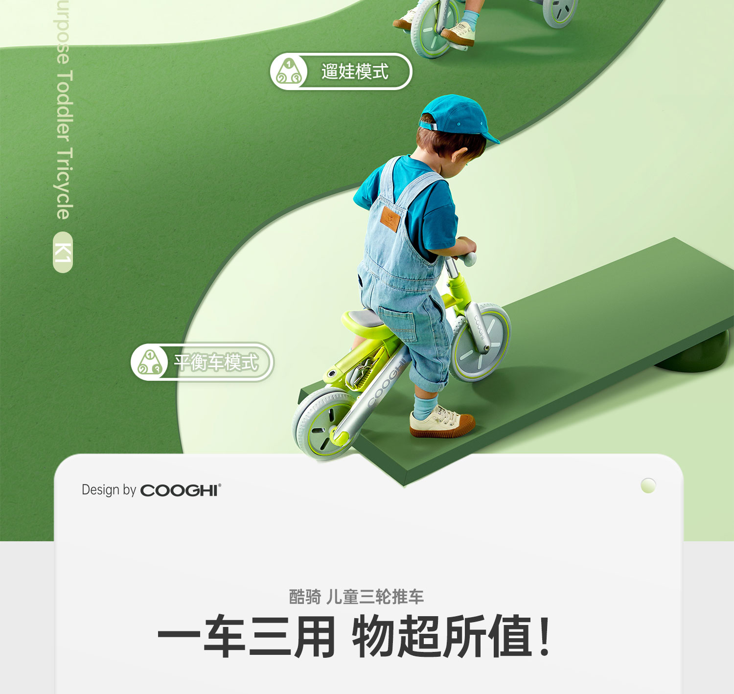COOGHI酷骑儿童三轮车脚踏车1-5岁自行车轻便宝宝推车溜遛娃神器
