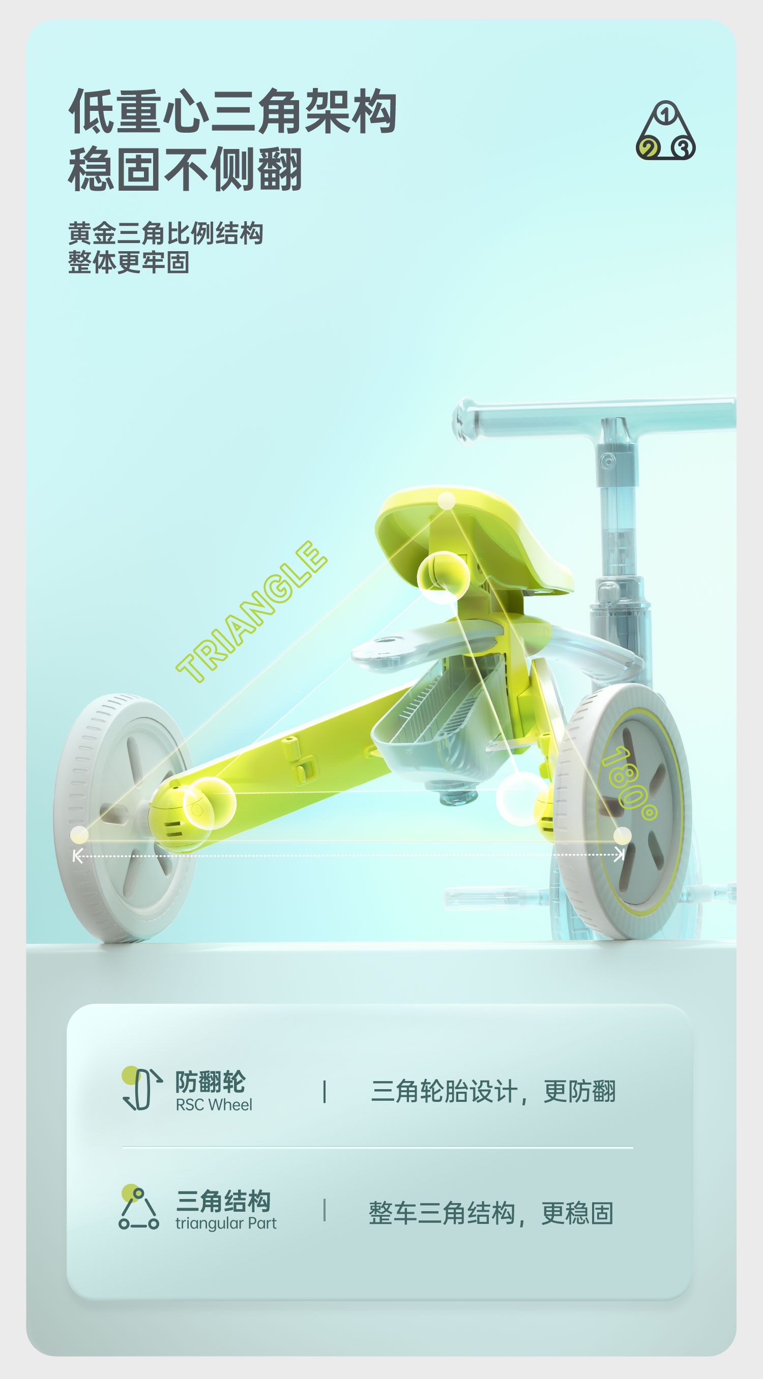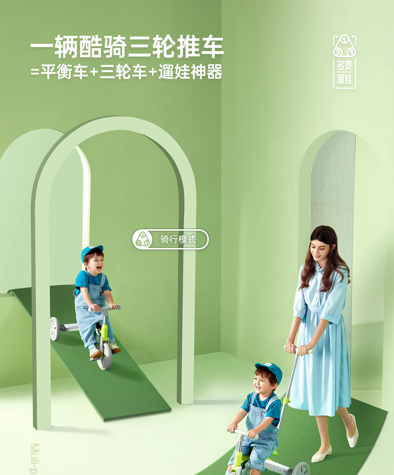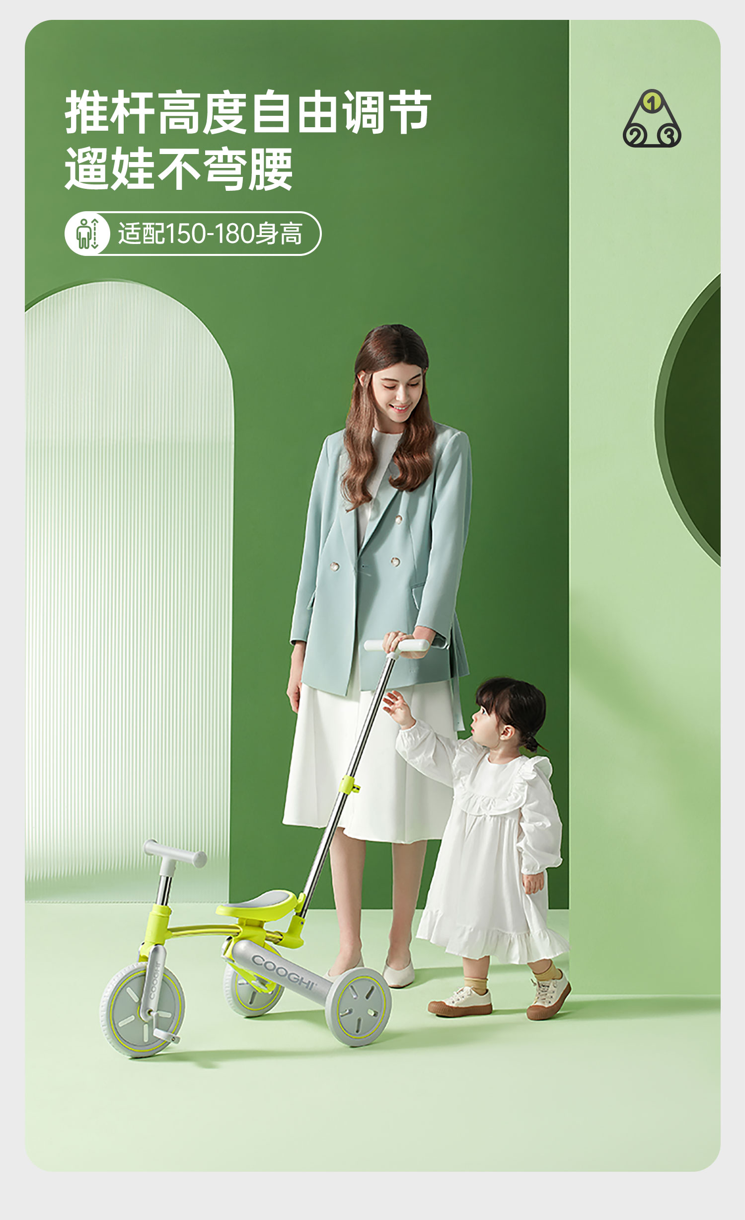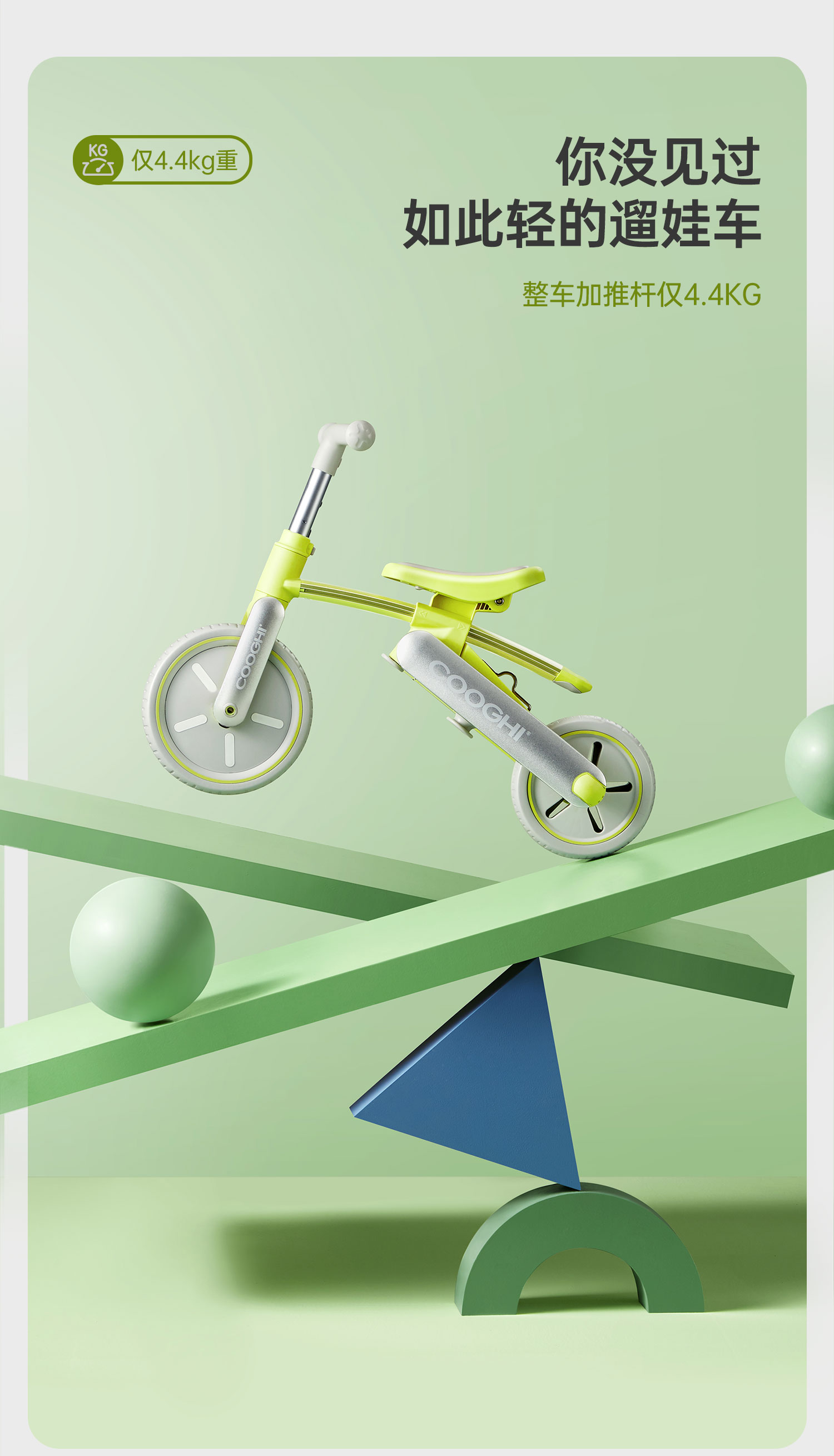 COOGHI酷骑儿童三轮车脚踏车1-5岁自行车轻便宝宝推车溜遛娃神器