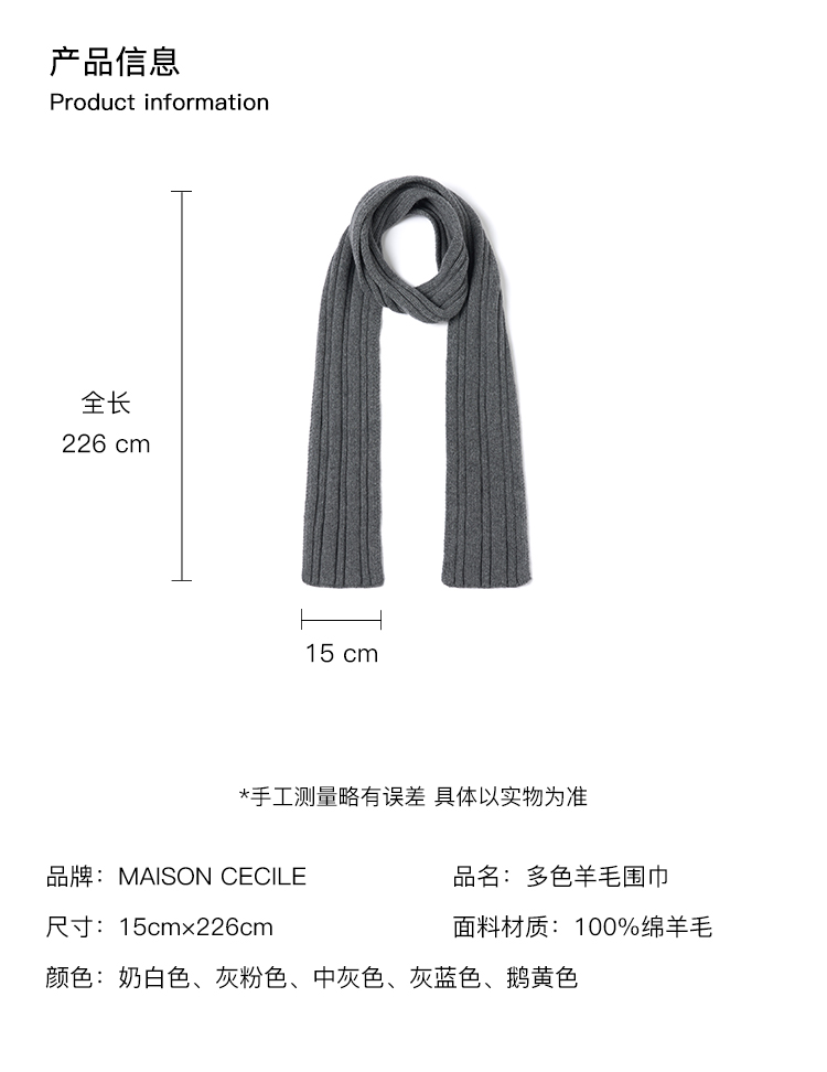 MAISON CECILE 多色|全羊毛厚实肌理感叠搭神器百搭保暖长款围巾
