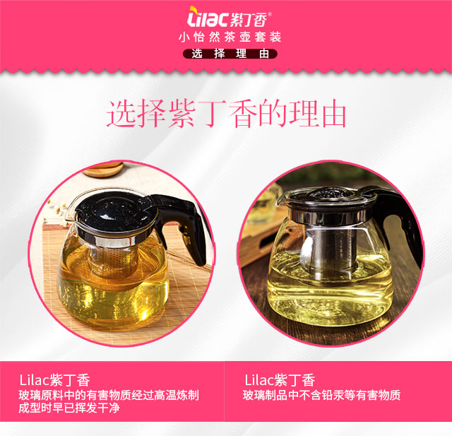 紫丁香 900ML耐热茶壶套装小怡然茶具五件套S388