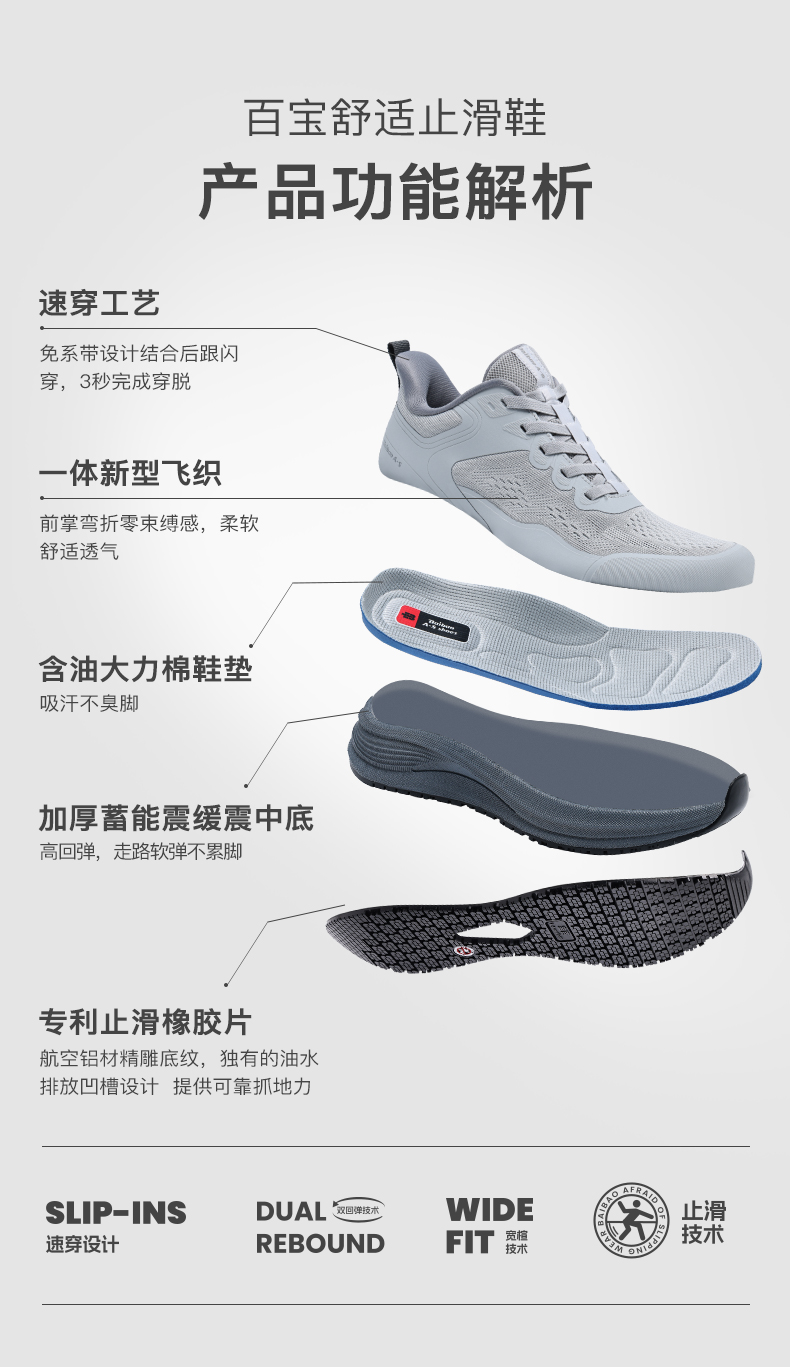 百宝2025春季新品男士休闲鞋松紧带一脚蹬止滑厚底回弹减震运动鞋