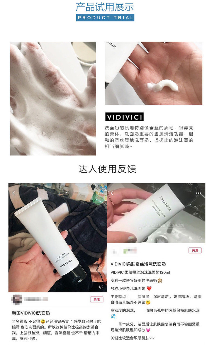 1、产品名称:VIDIVICI女神蚕丝氨基酸洗面奶