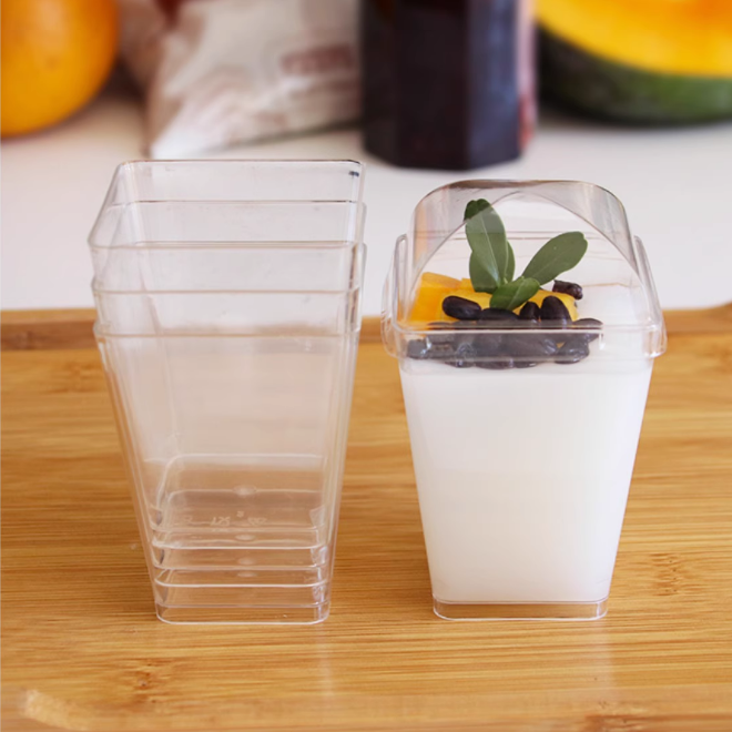 带盖【高梯形】慕斯杯 5个/25个 慕斯杯木糠杯布丁杯果冻杯酸奶杯一次性塑料杯