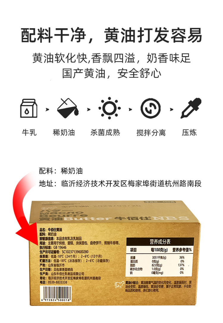 400g 牛佰仕黄油 动物性原味黄油 面包饼干牛排牛轧糖原料