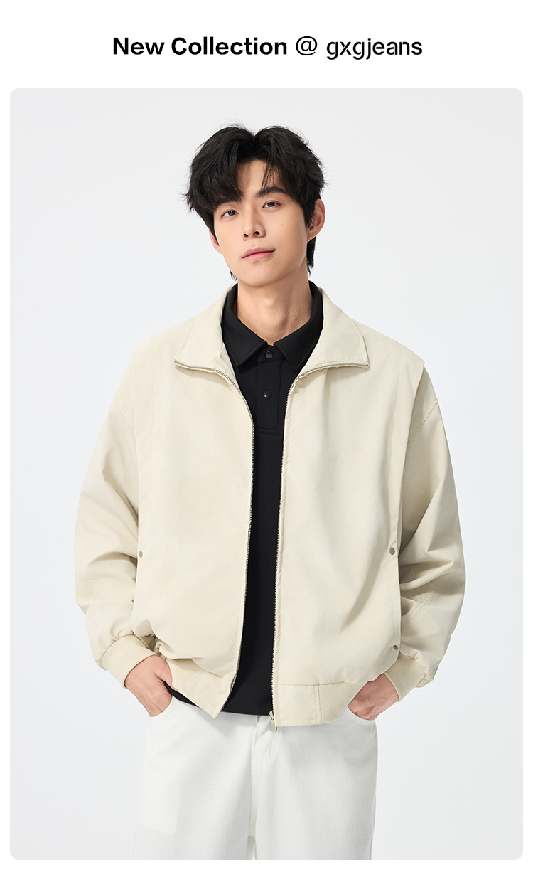 gxgjeans男装【PU】男士翻领夹克26春款纯色时尚潮流百搭宽松青少年外套K&C