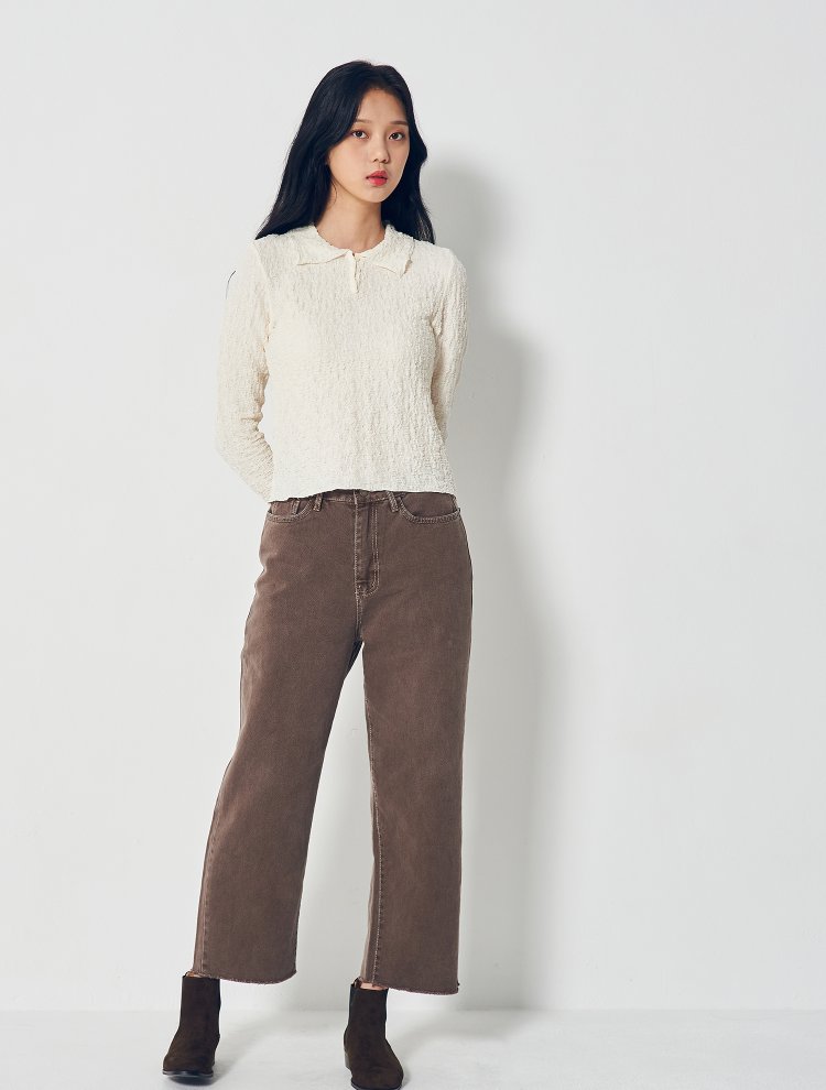 8seconds rib frill cardiganIvory Shirring Pique领T恤女款JPY带授权招加盟代理