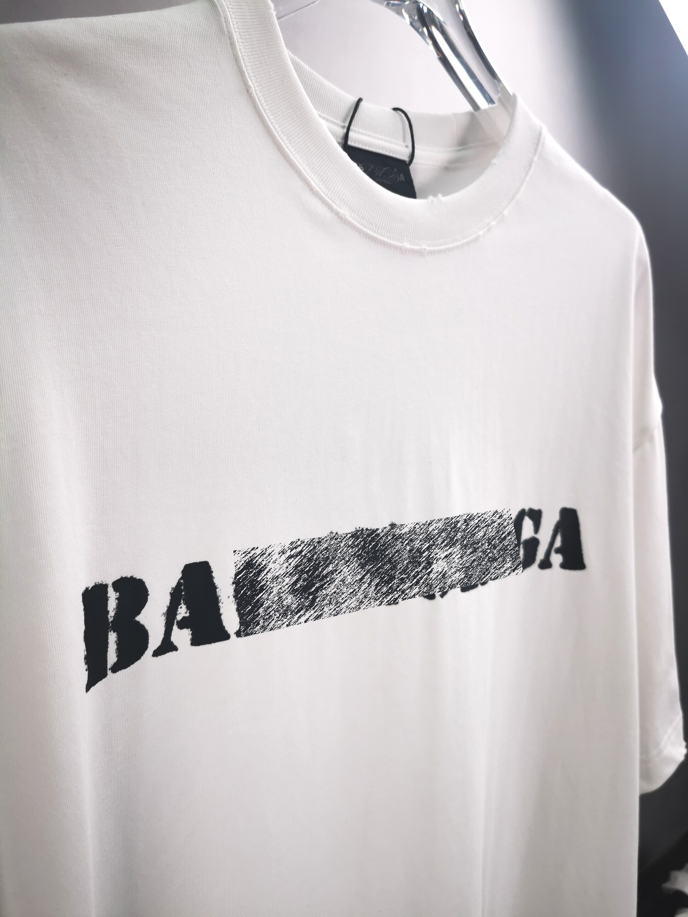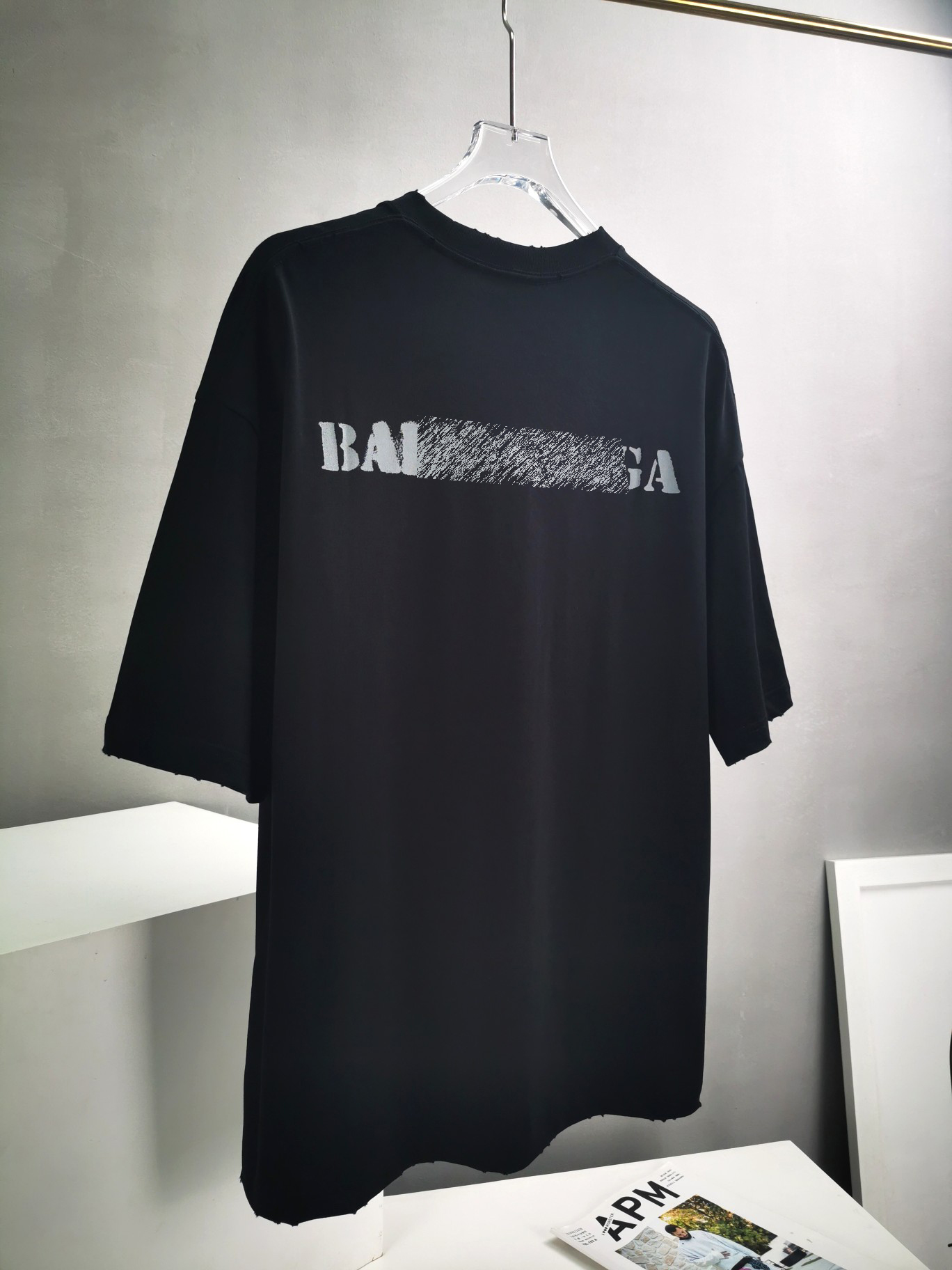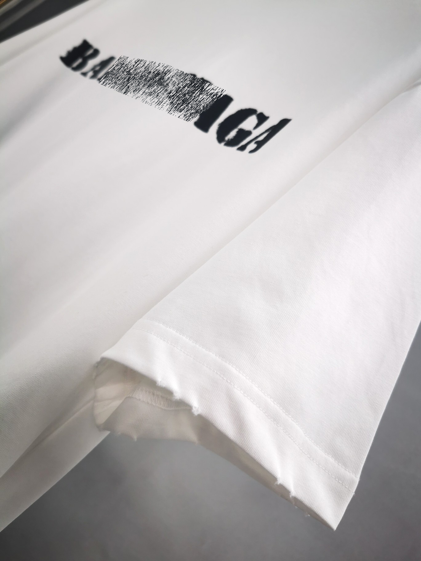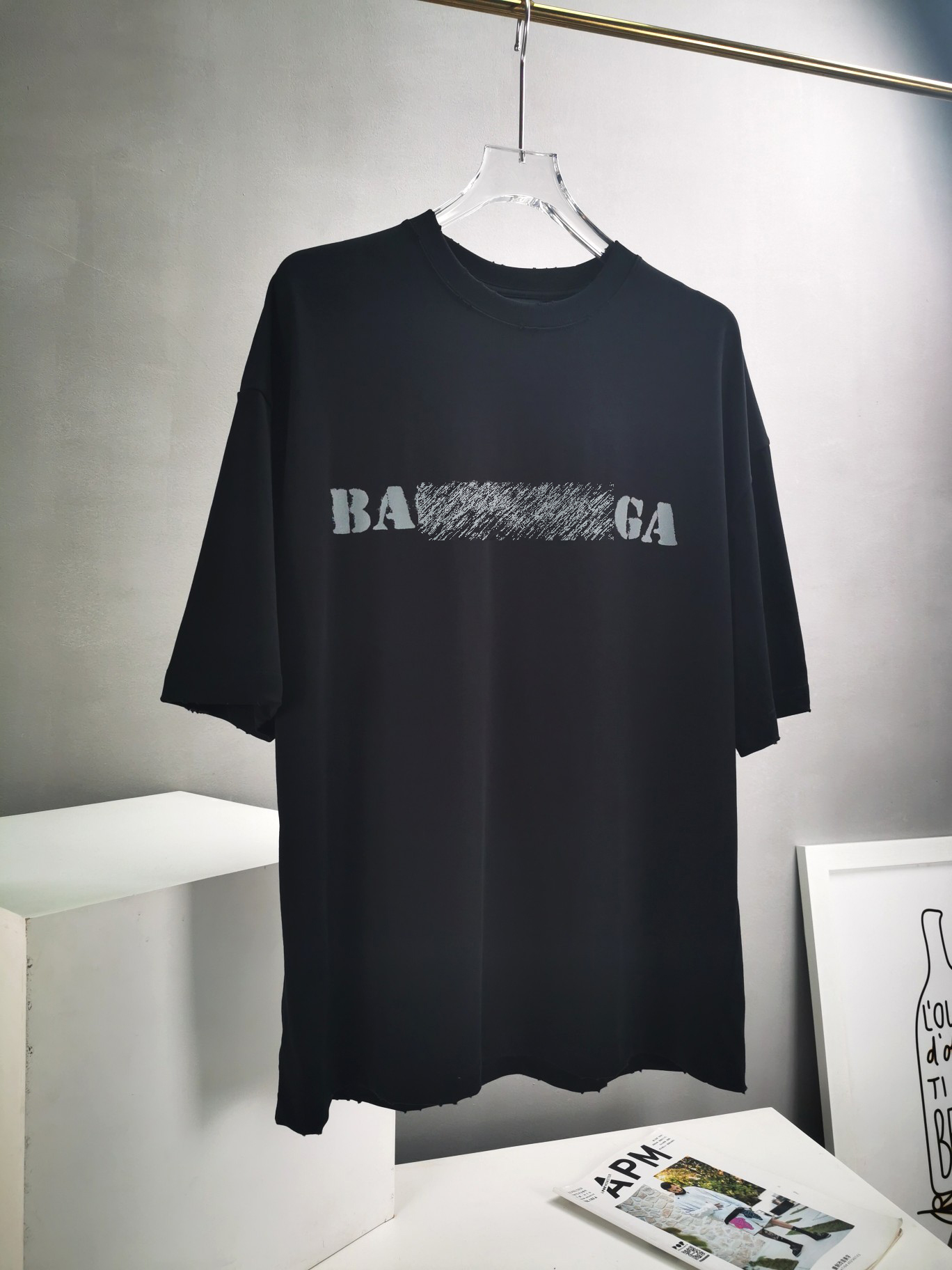 BL世家 2024春夏新款 洗水磨破印花字母 圆领短袖T恤 Z-11567