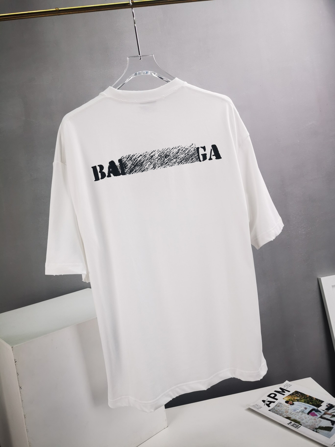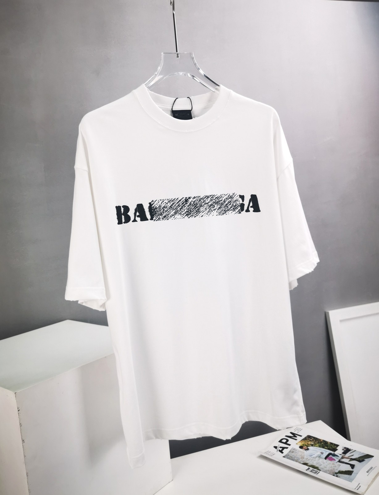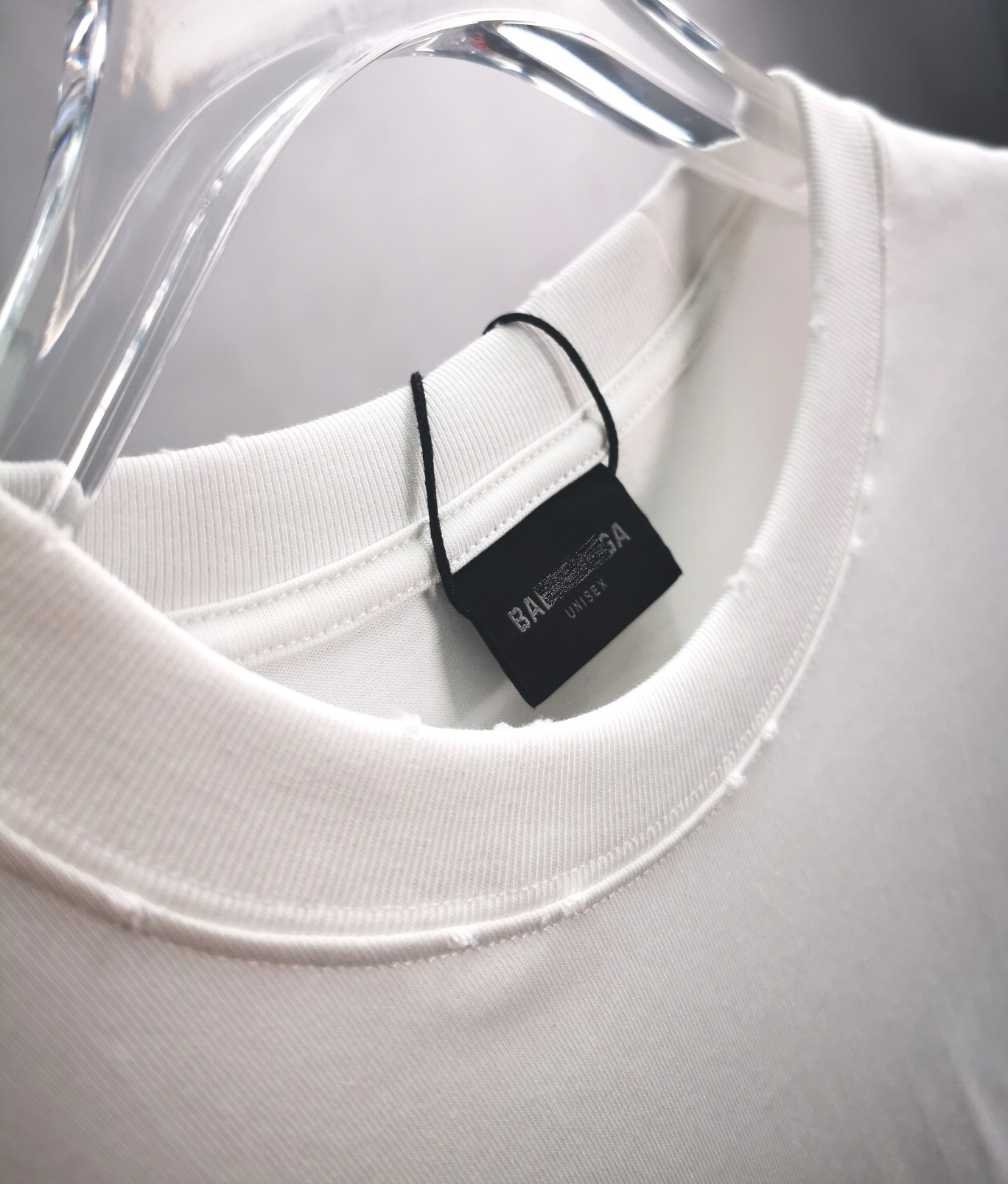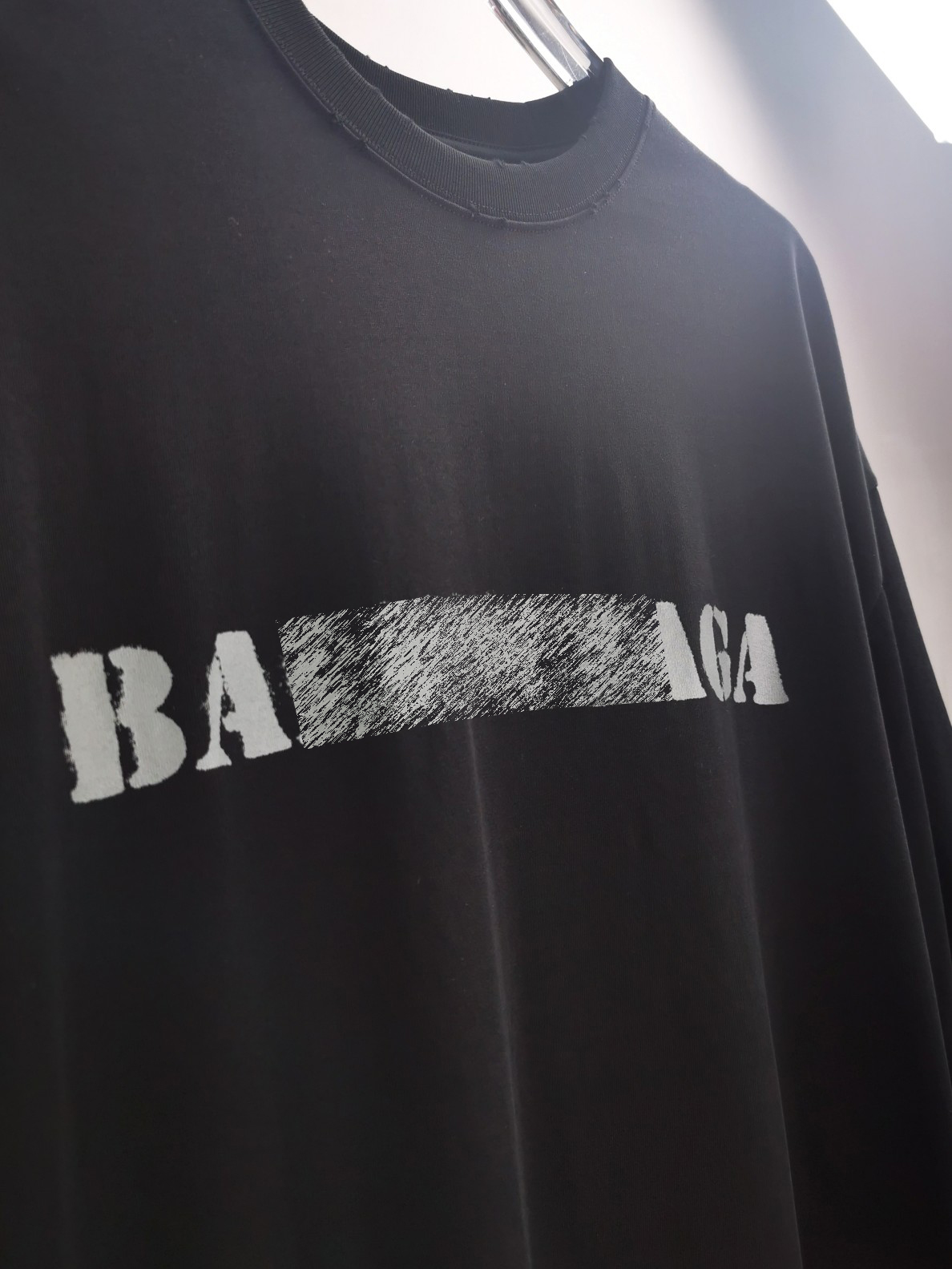 BL世家 2024春夏新款 洗水磨破印花字母 圆领短袖T恤 Z-11567