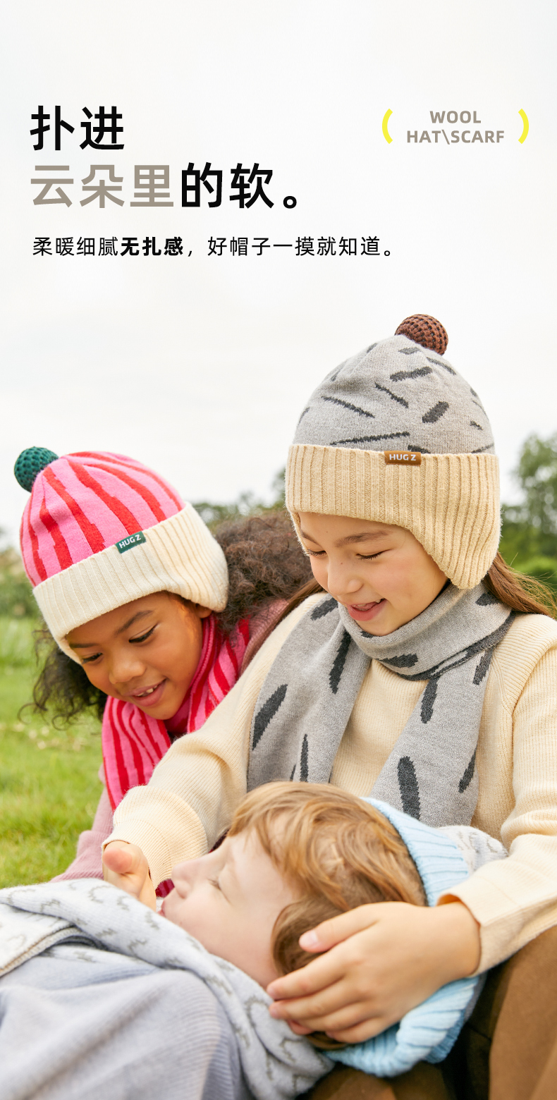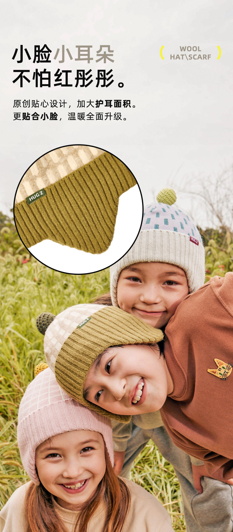 hugz儿童帽子秋冬季婴儿针织毛线帽男童女孩宝宝护耳防风抱抱帽子