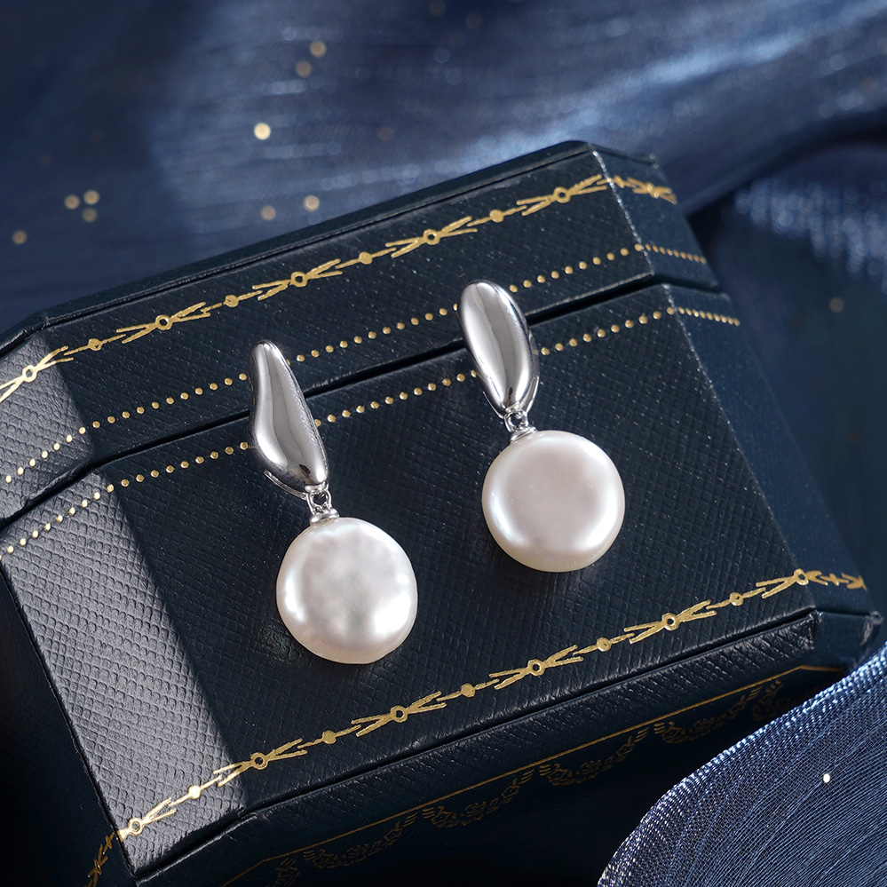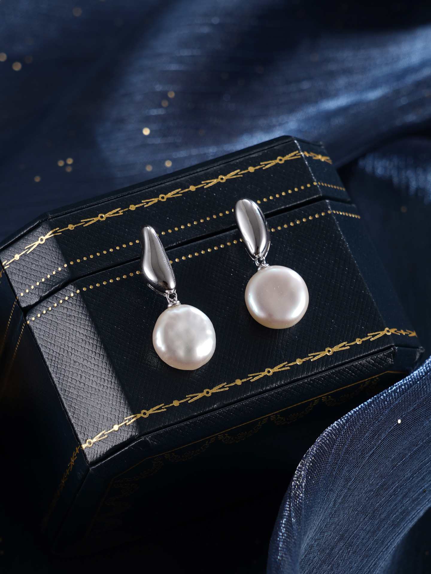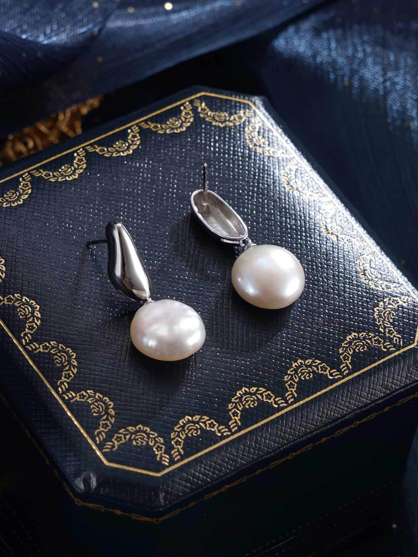 子佩集【月华诗韵】银S925珍珠惜王妃耳钉【SPE0570009】12mm巴洛克扁珠2601
