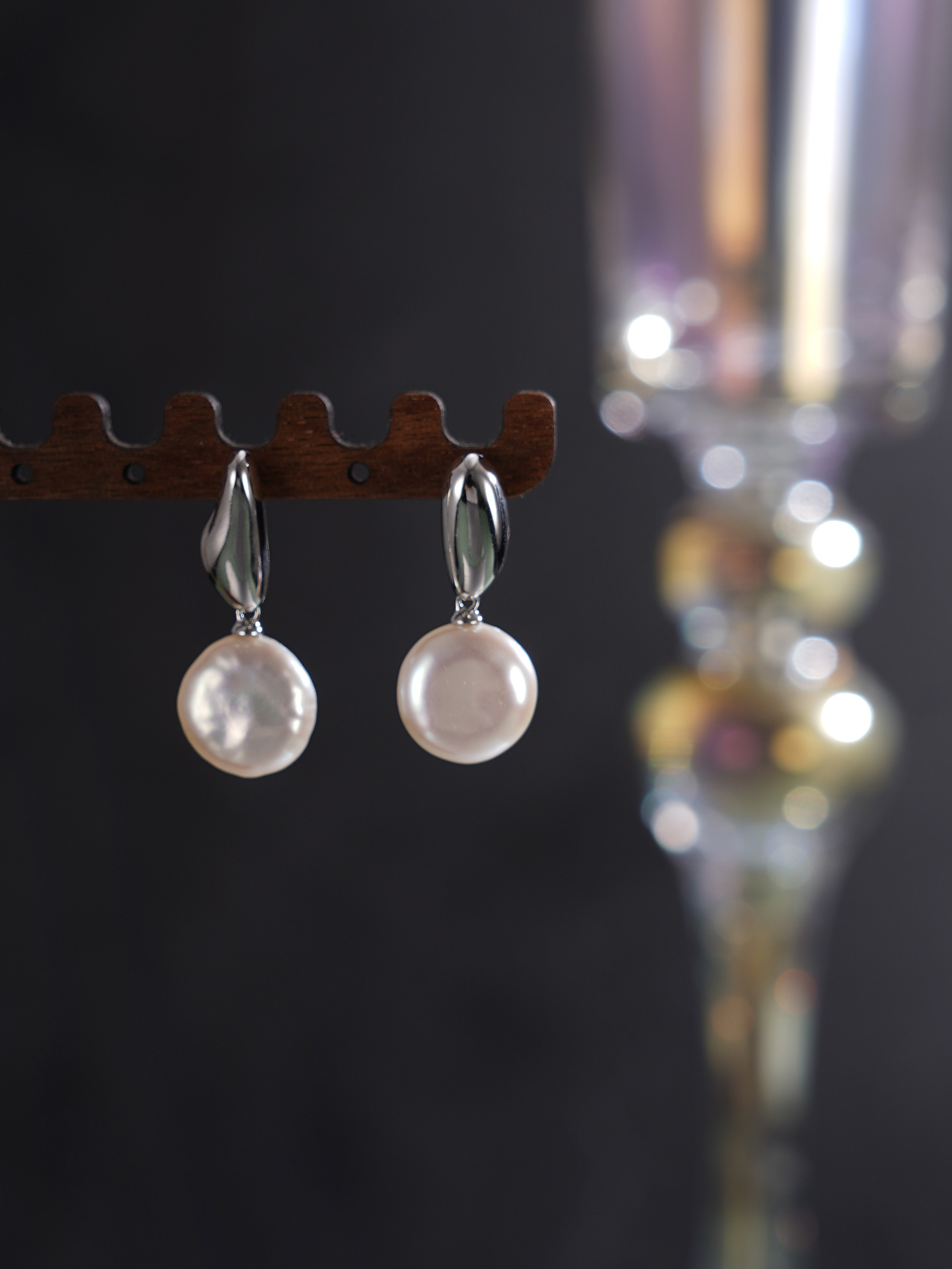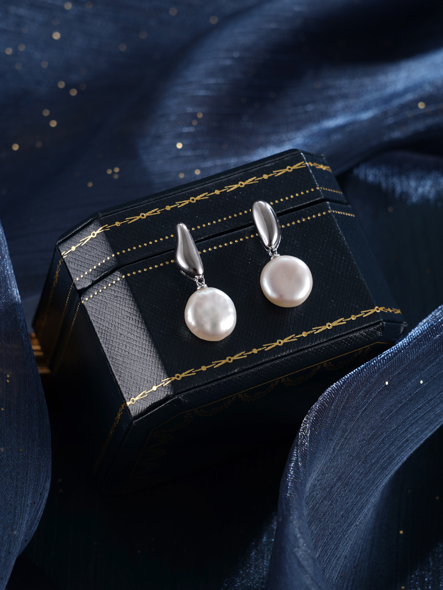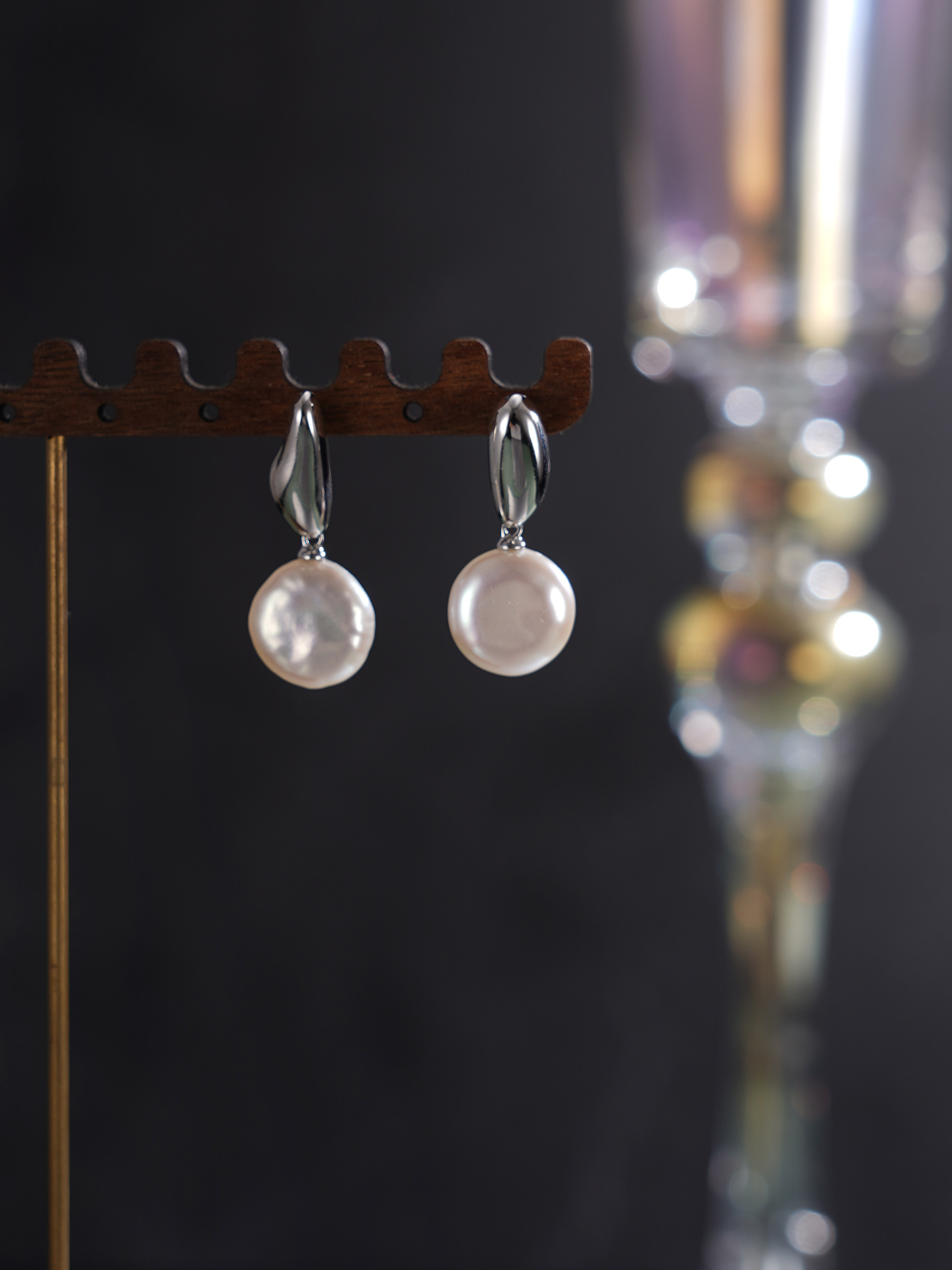子佩集【月华诗韵】银S925珍珠惜王妃耳钉【SPE0570009】12mm巴洛克扁珠2601
