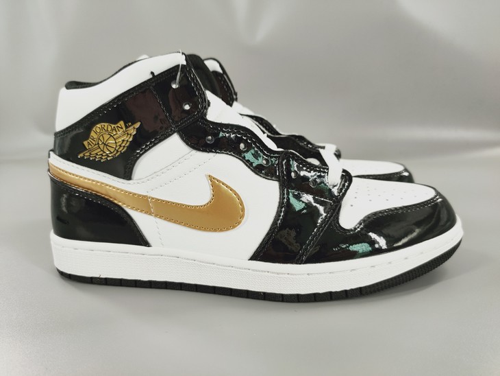 Air Jordan 1 Mid AJ1 乔丹 小黑金脚趾 漆皮 中帮 852542-007 尺码 36-46