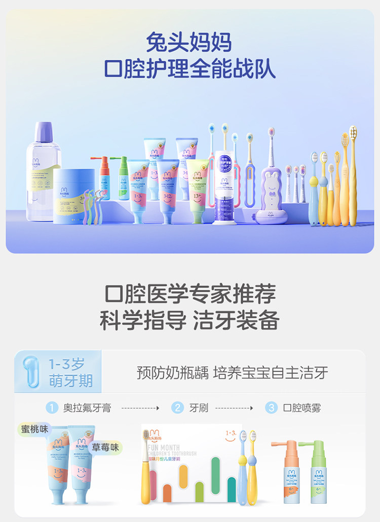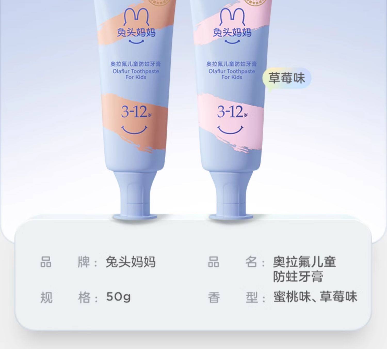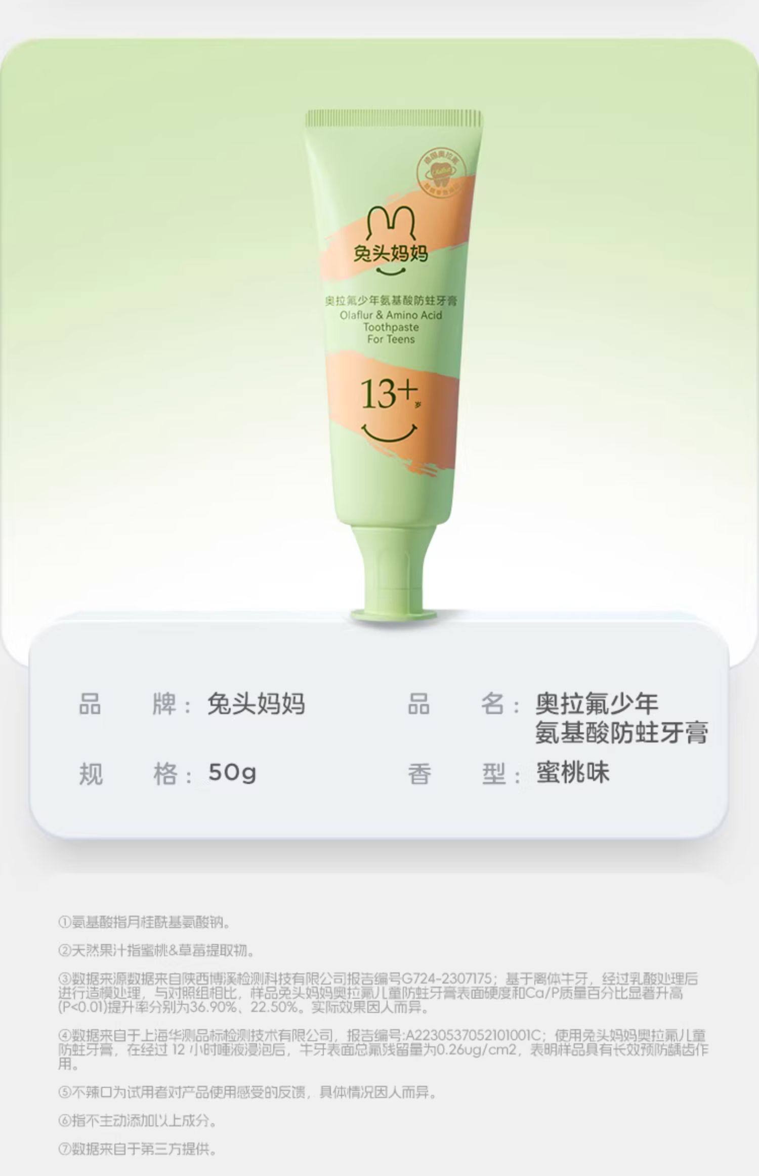 兔头妈妈 奥拉氟13岁+氨基酸防蛀牙膏50g(蜜桃味)