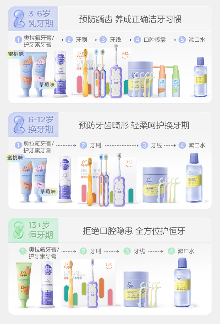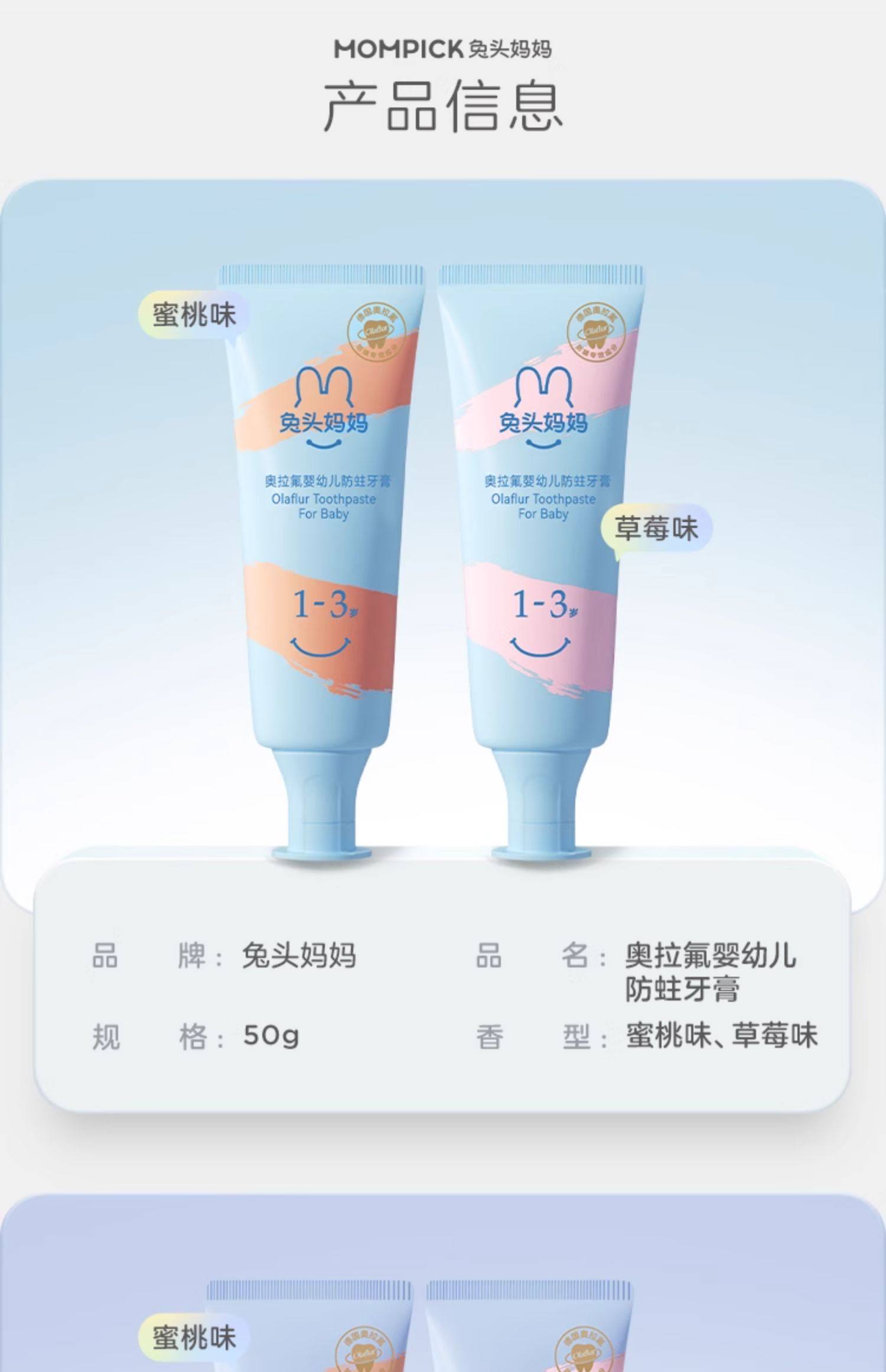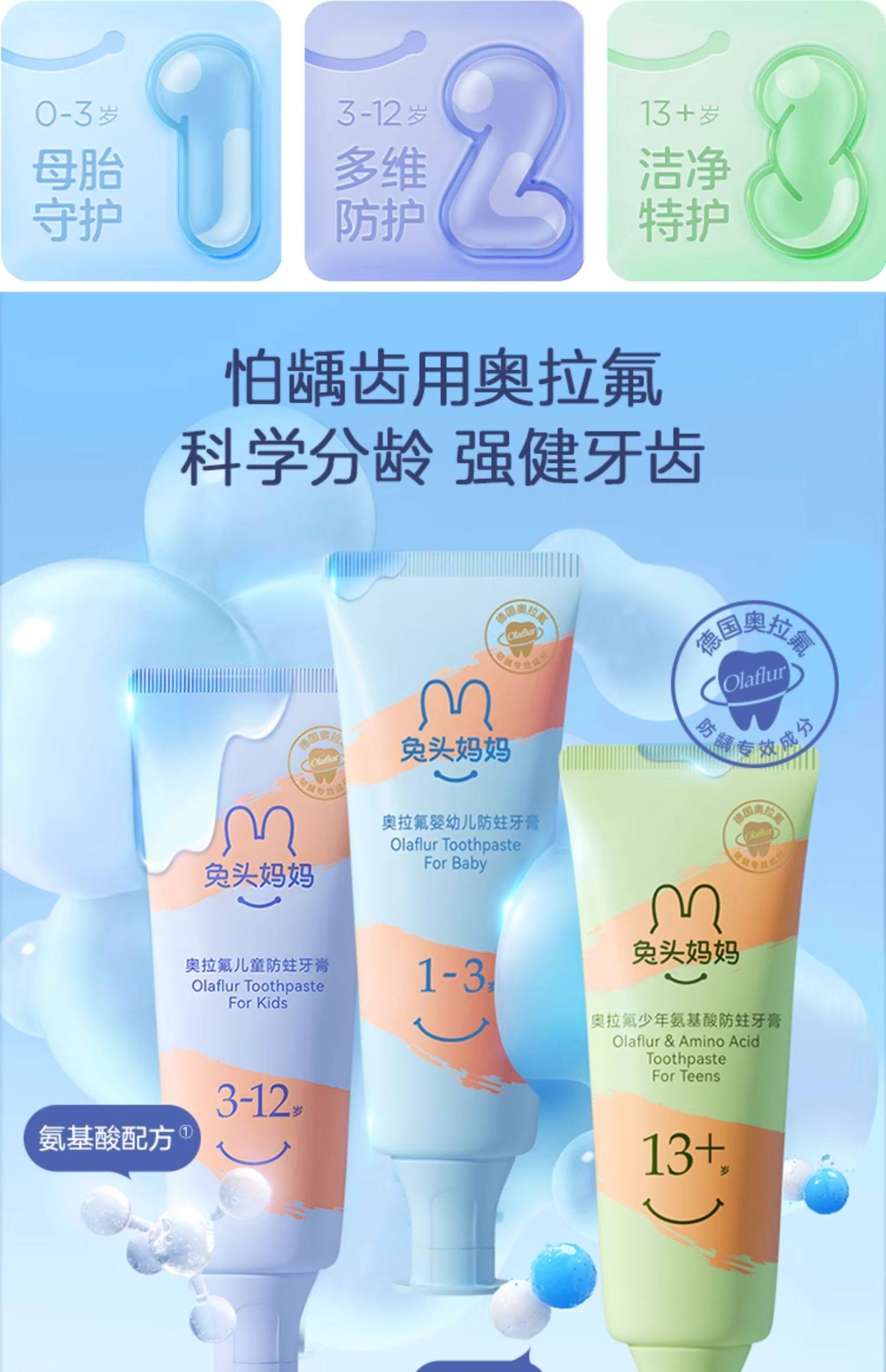 兔头妈妈 奥拉氟13岁+氨基酸防蛀牙膏50g(蜜桃味)