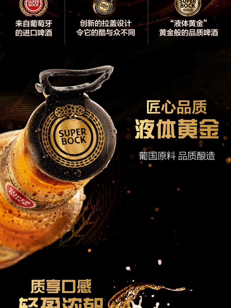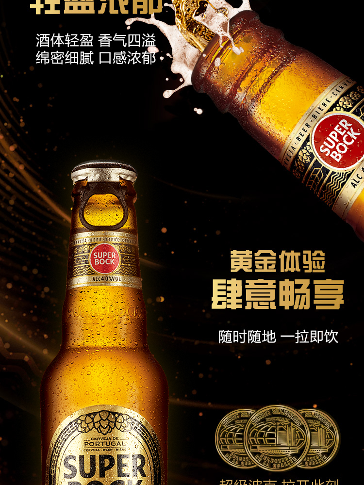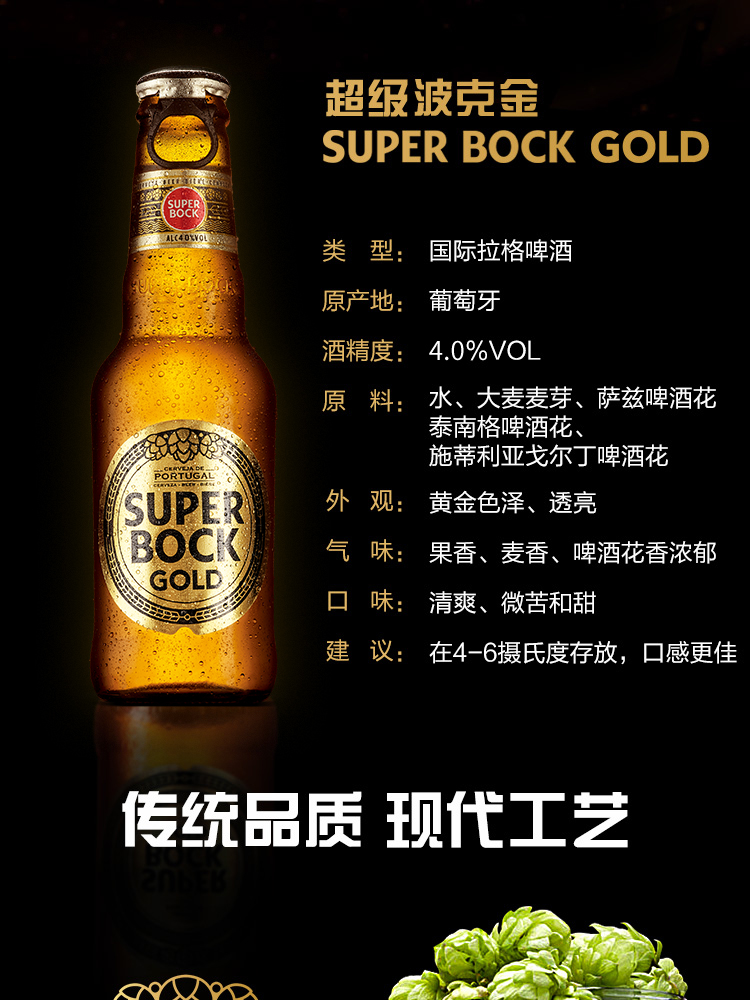 超级波克(SuperBock)GOLD金啤酒200ml*24瓶小瓶拉盖黄啤酒葡萄牙整箱原瓶进口