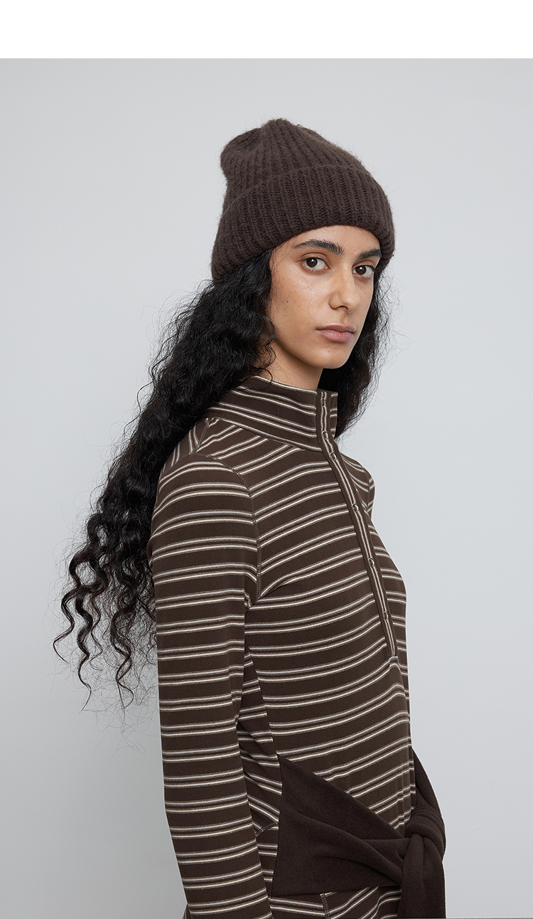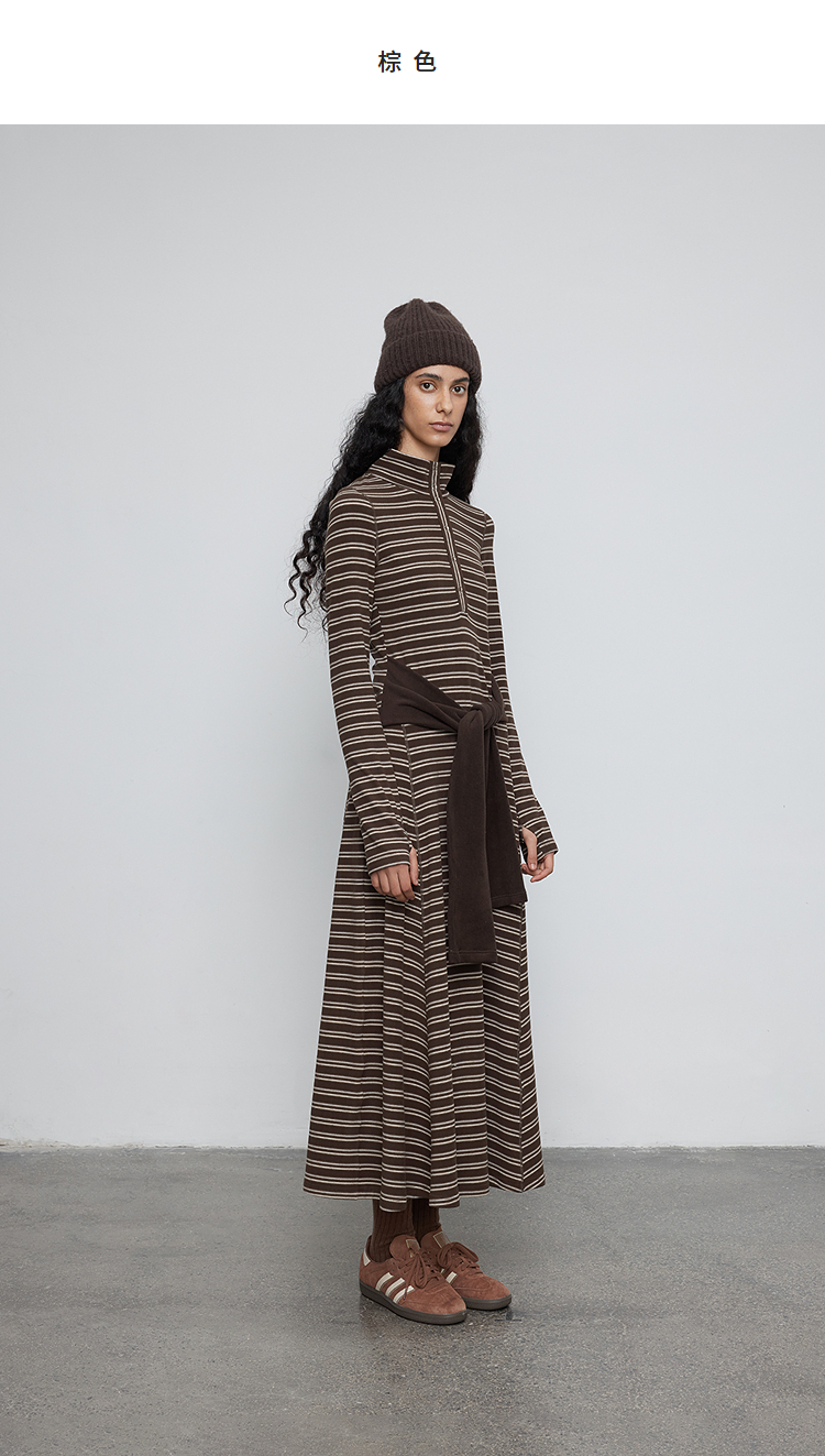 半圆/Q5525848/高领撞色收腰条纹长袖连衣裙