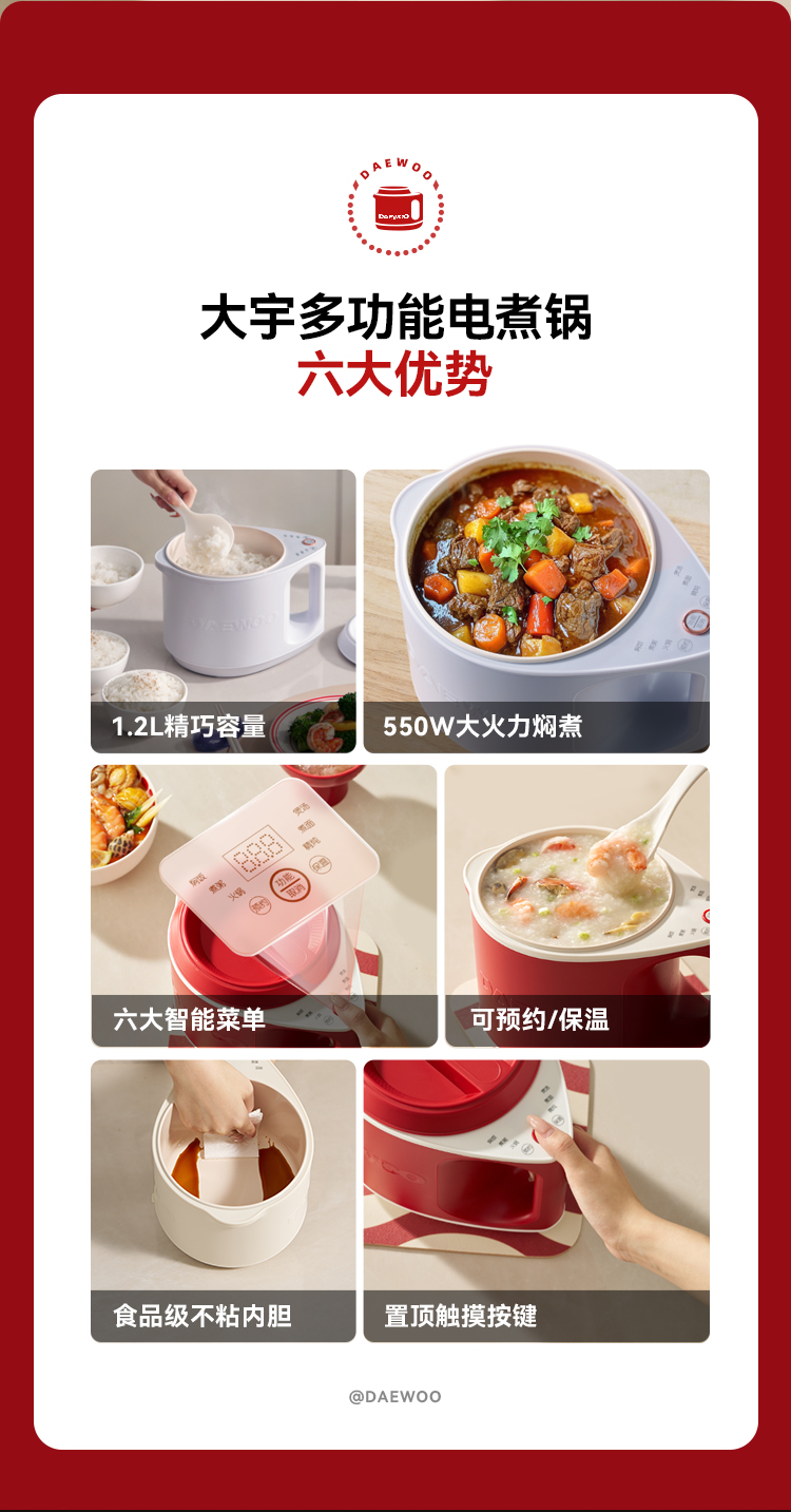【多功能迷你电煮锅】大宇家用宿舍小型电煮锅智能便携炖汤电煮锅正品