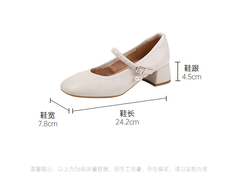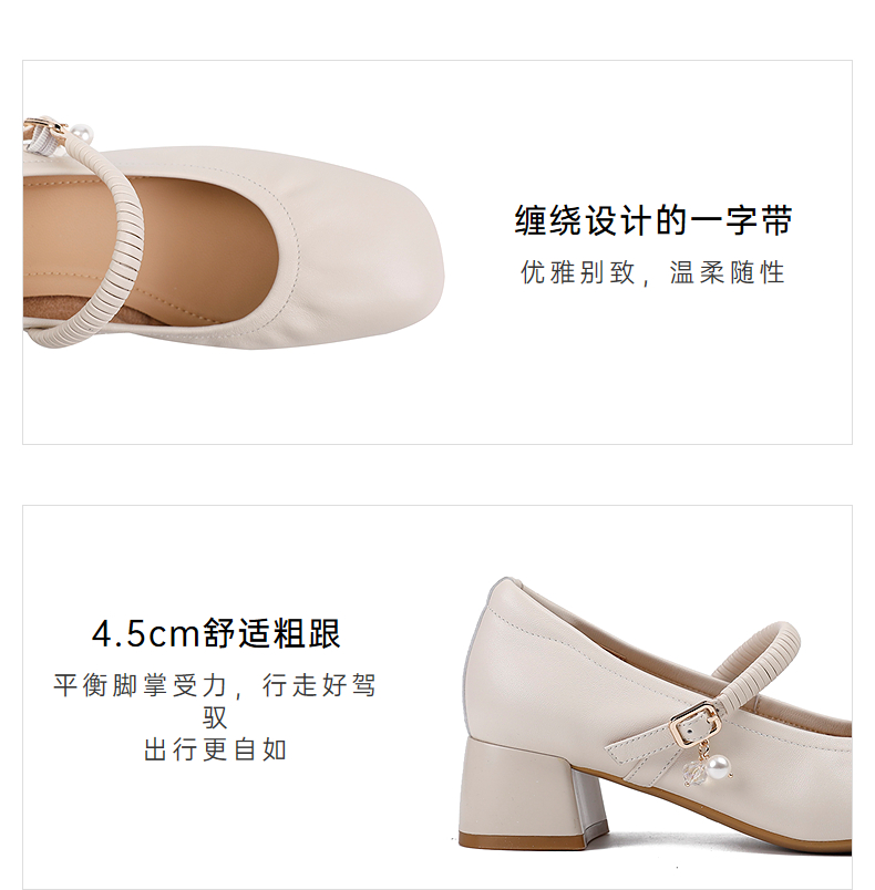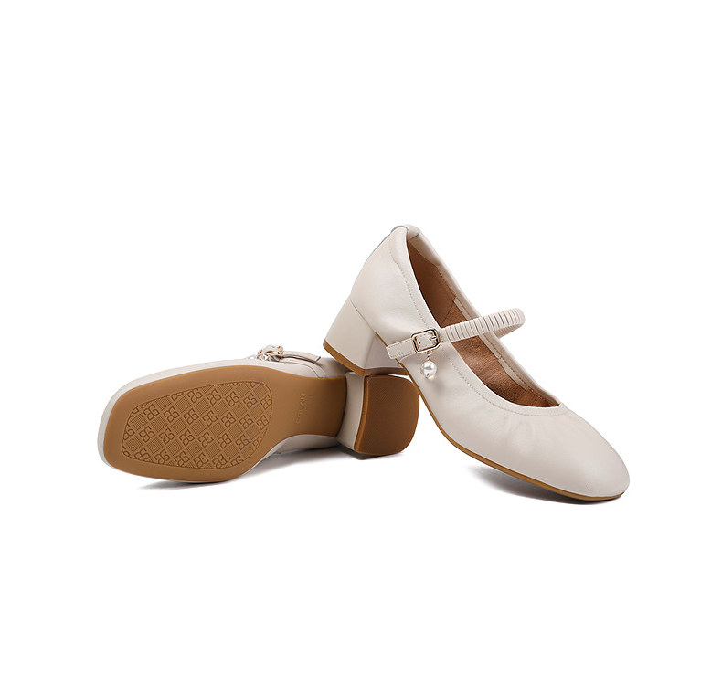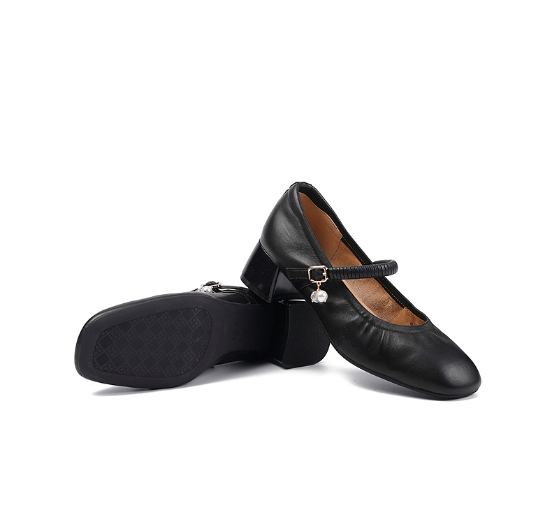 【静音系列】千百度粗高跟鞋女款褶皱羊皮玛丽珍鞋A25184506