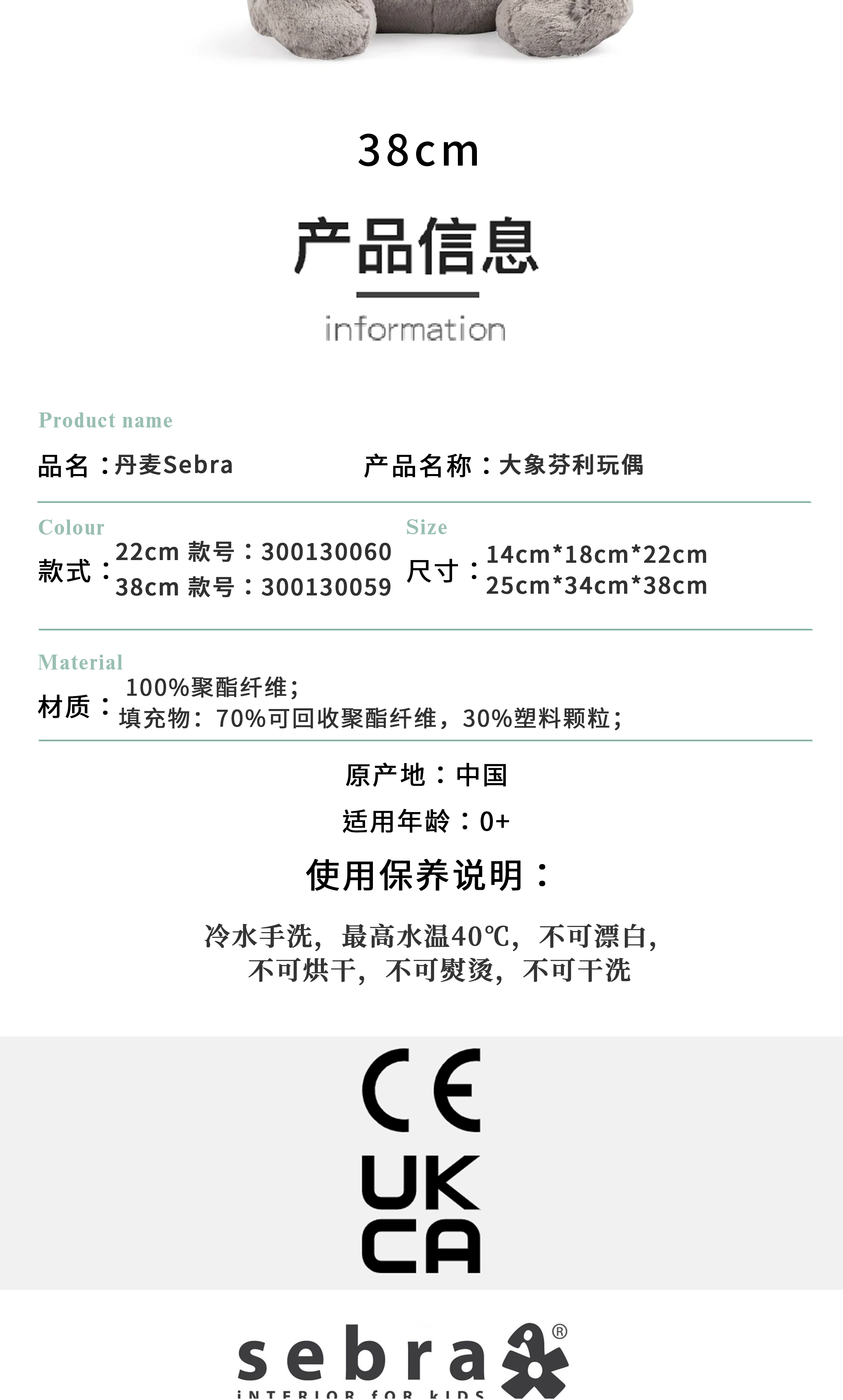 Sebra动物玩偶-大象芬利 宝宝安抚毛绒玩具38cm
