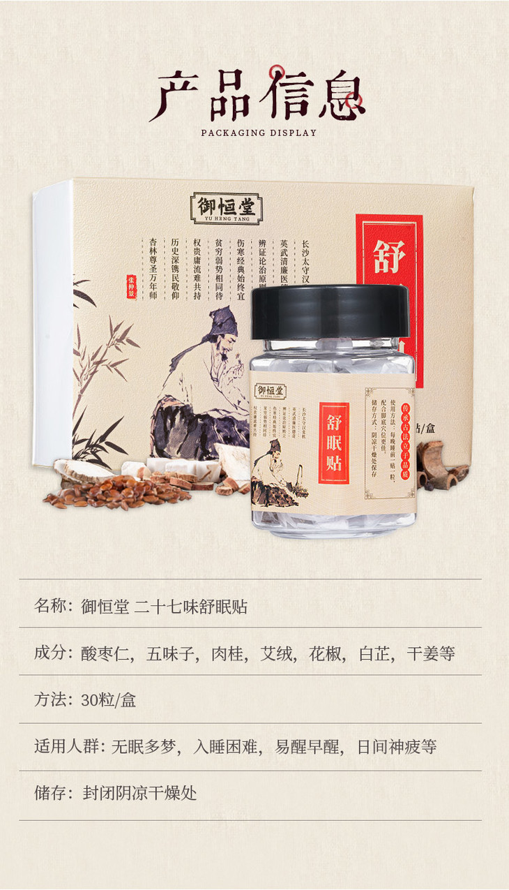 御恒堂二十七味睡眠贴 30贴/盒