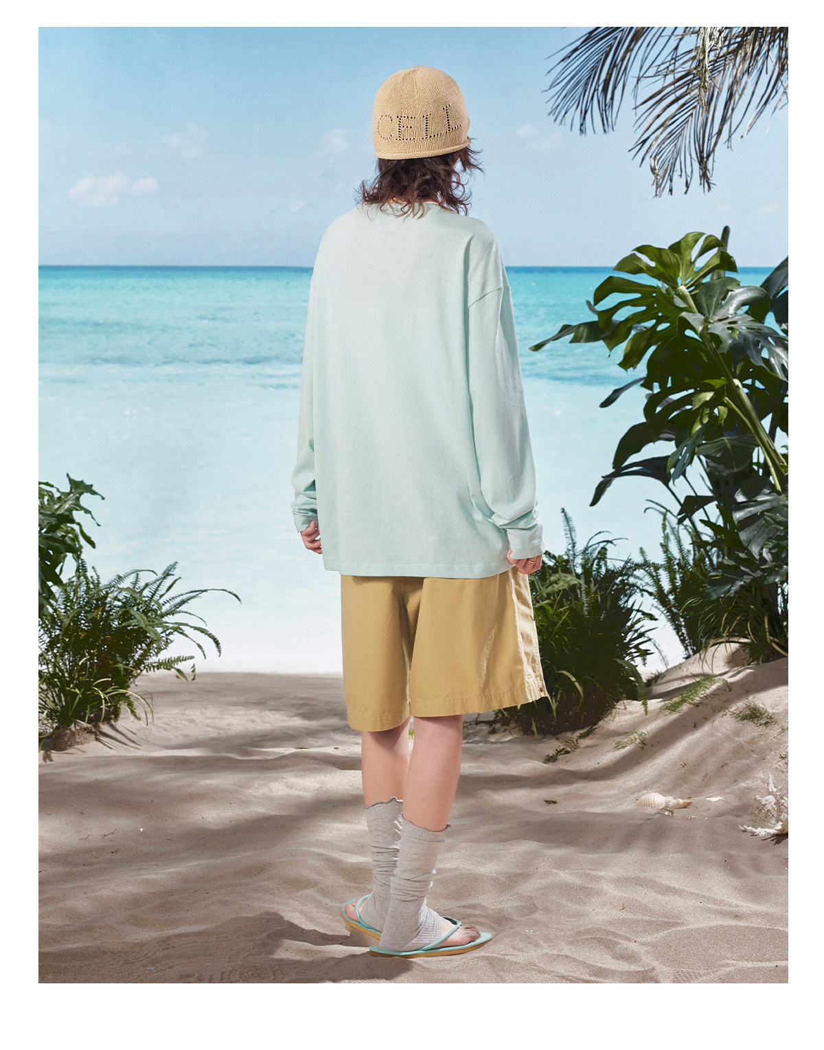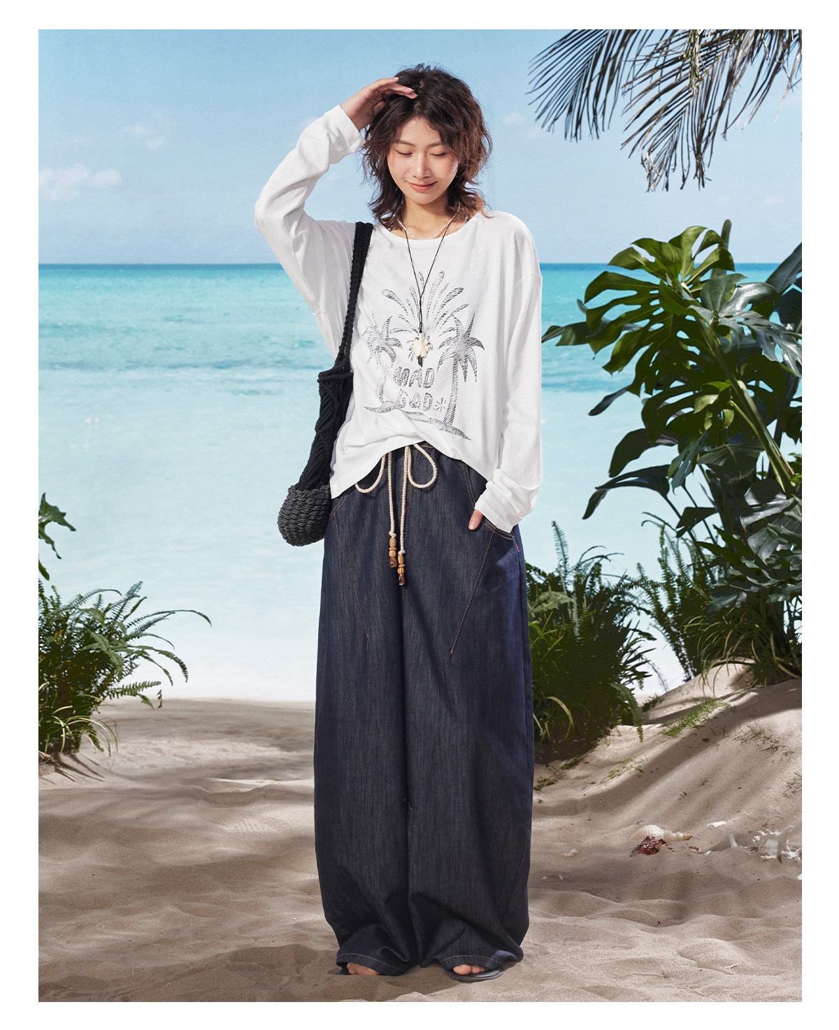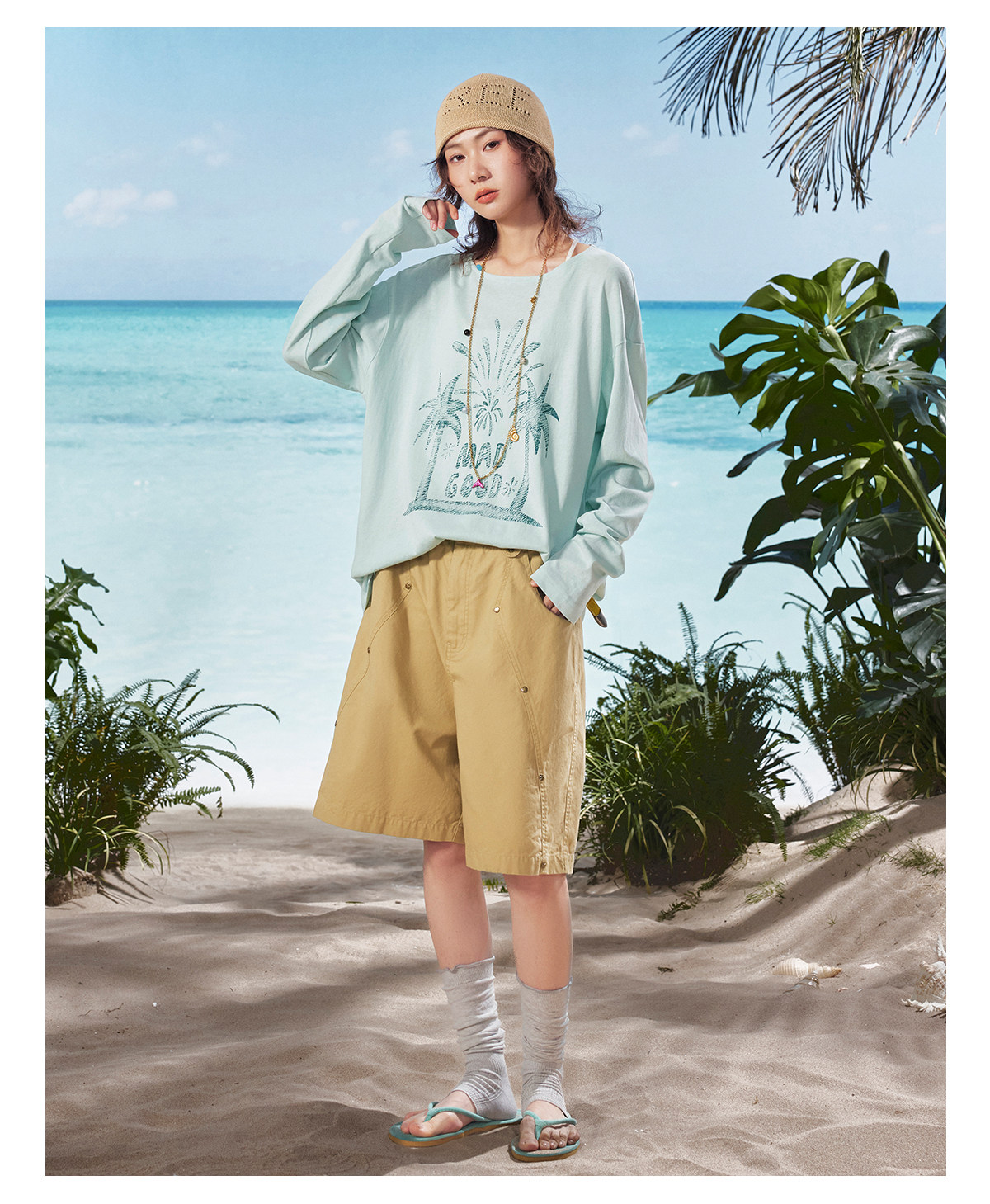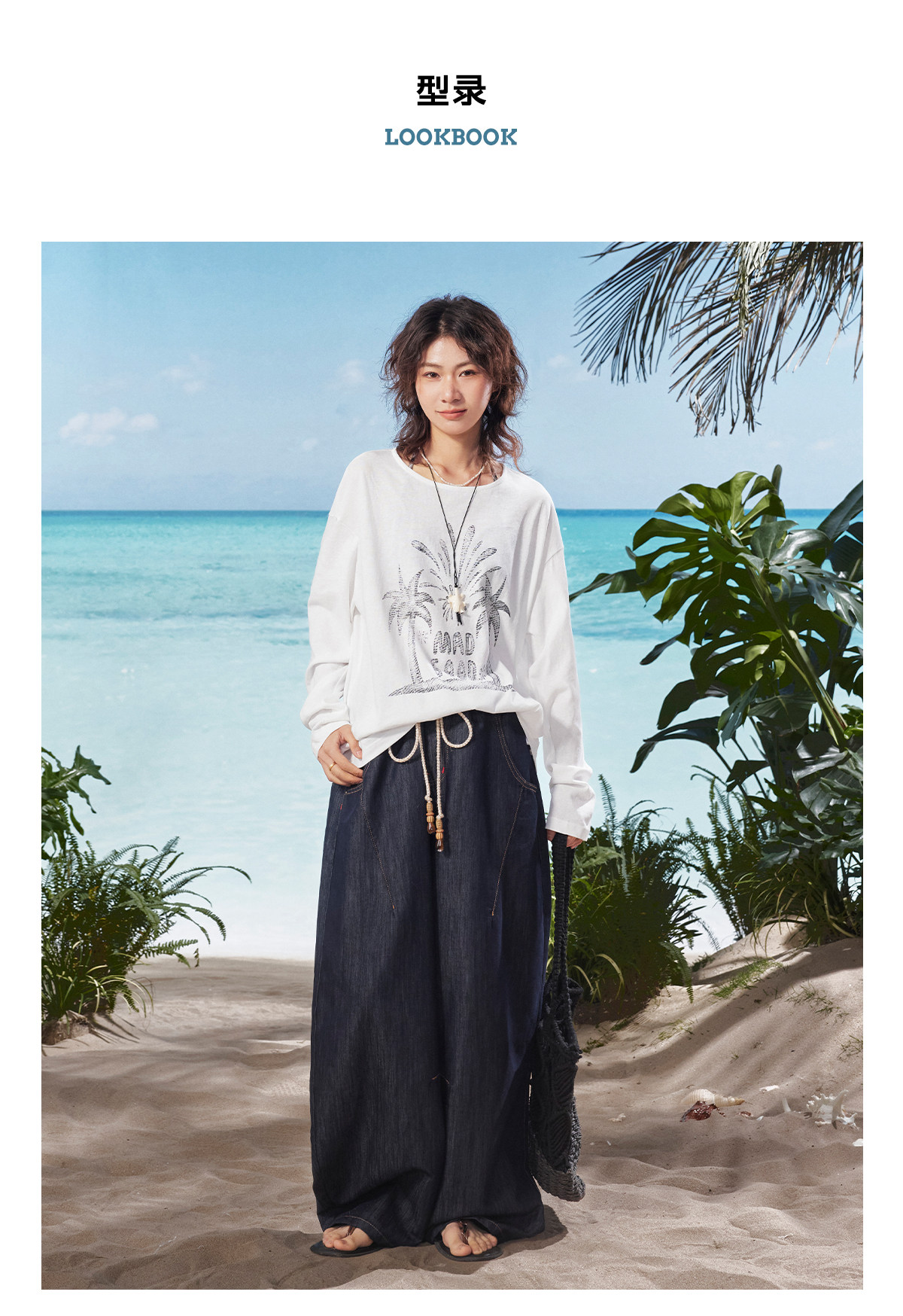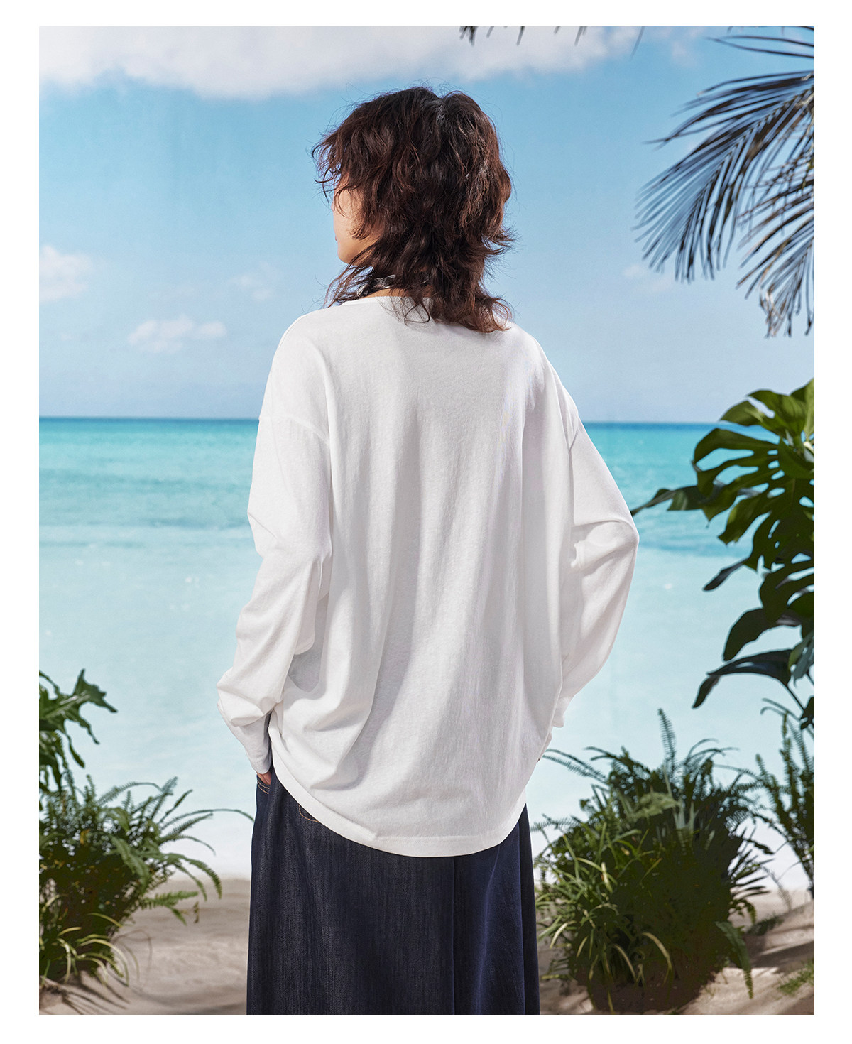 马得工地/MDGDTX222150/拓印椰树雪花棉长袖T恤罩衫