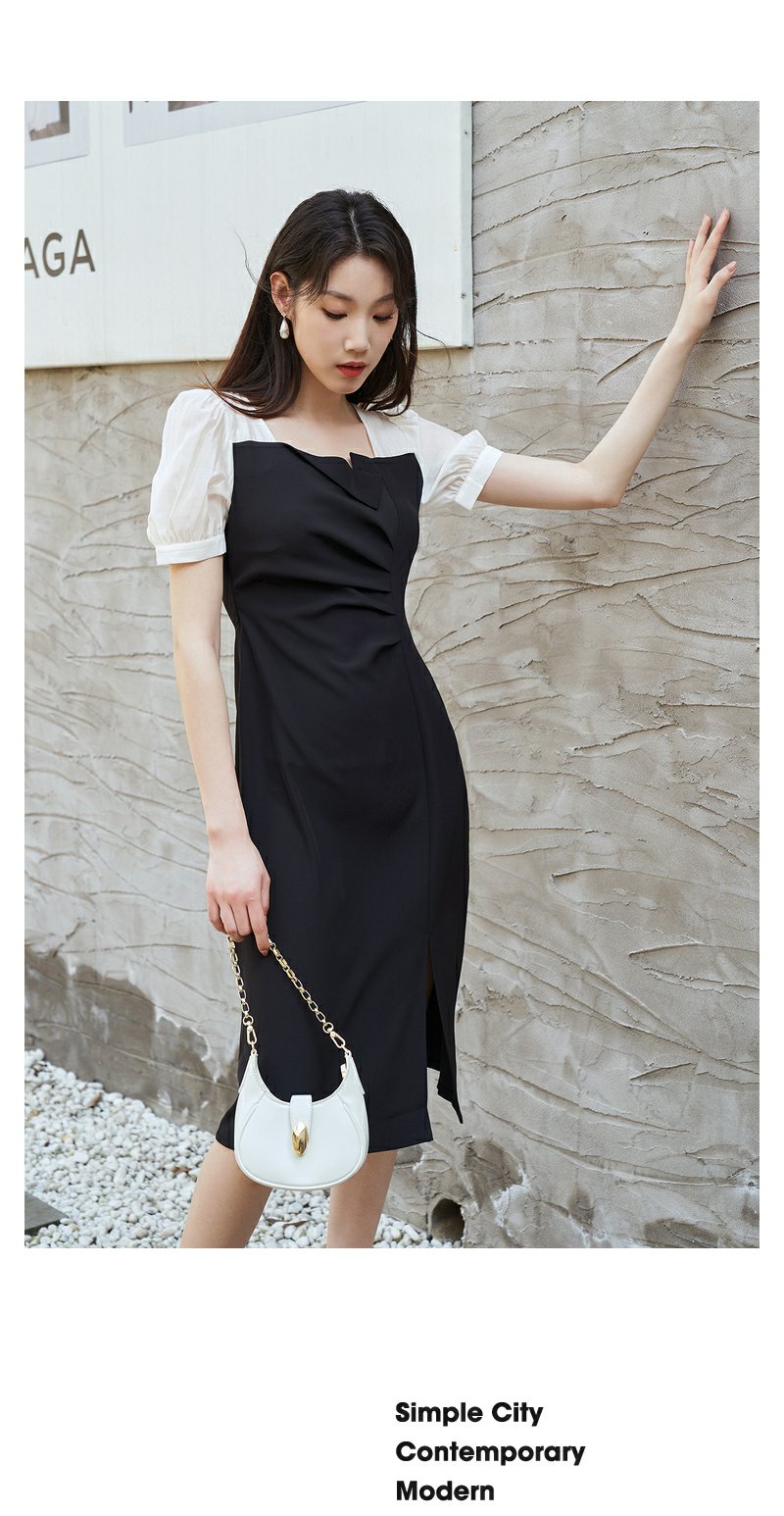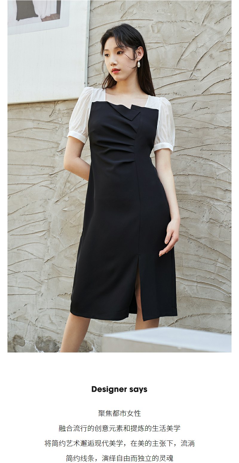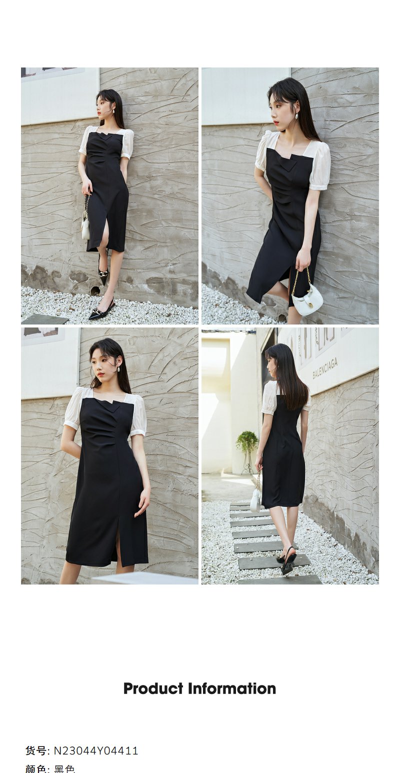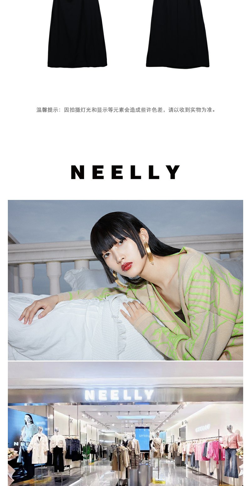 NEELLY纳俪商场同款黑色连衣裙女韩版设计感打褶显瘦A字裙夏季N23044Y04411