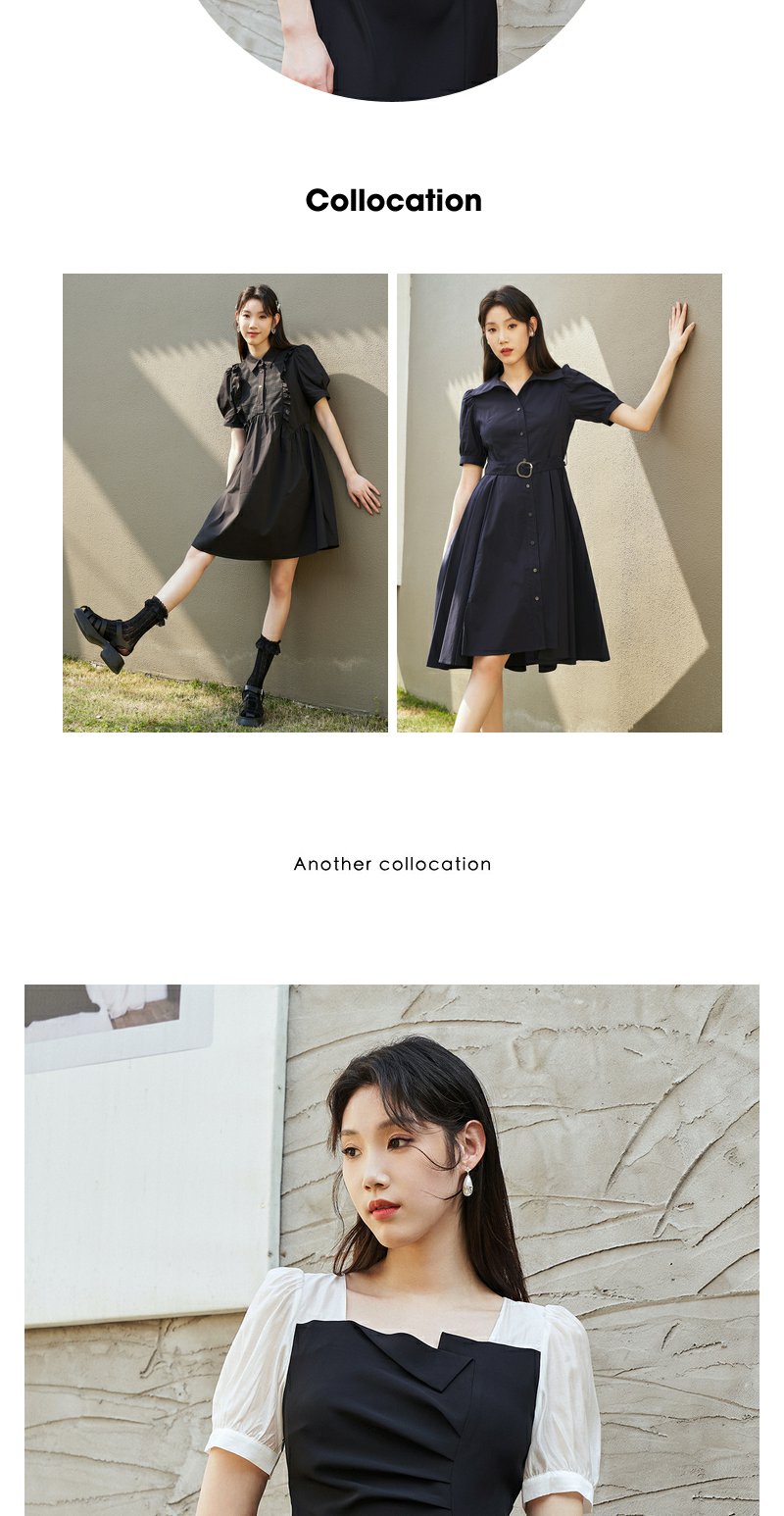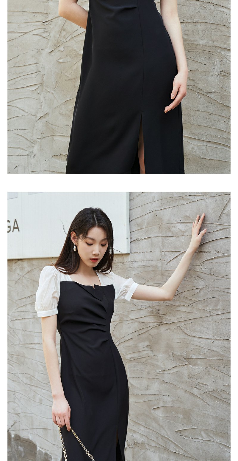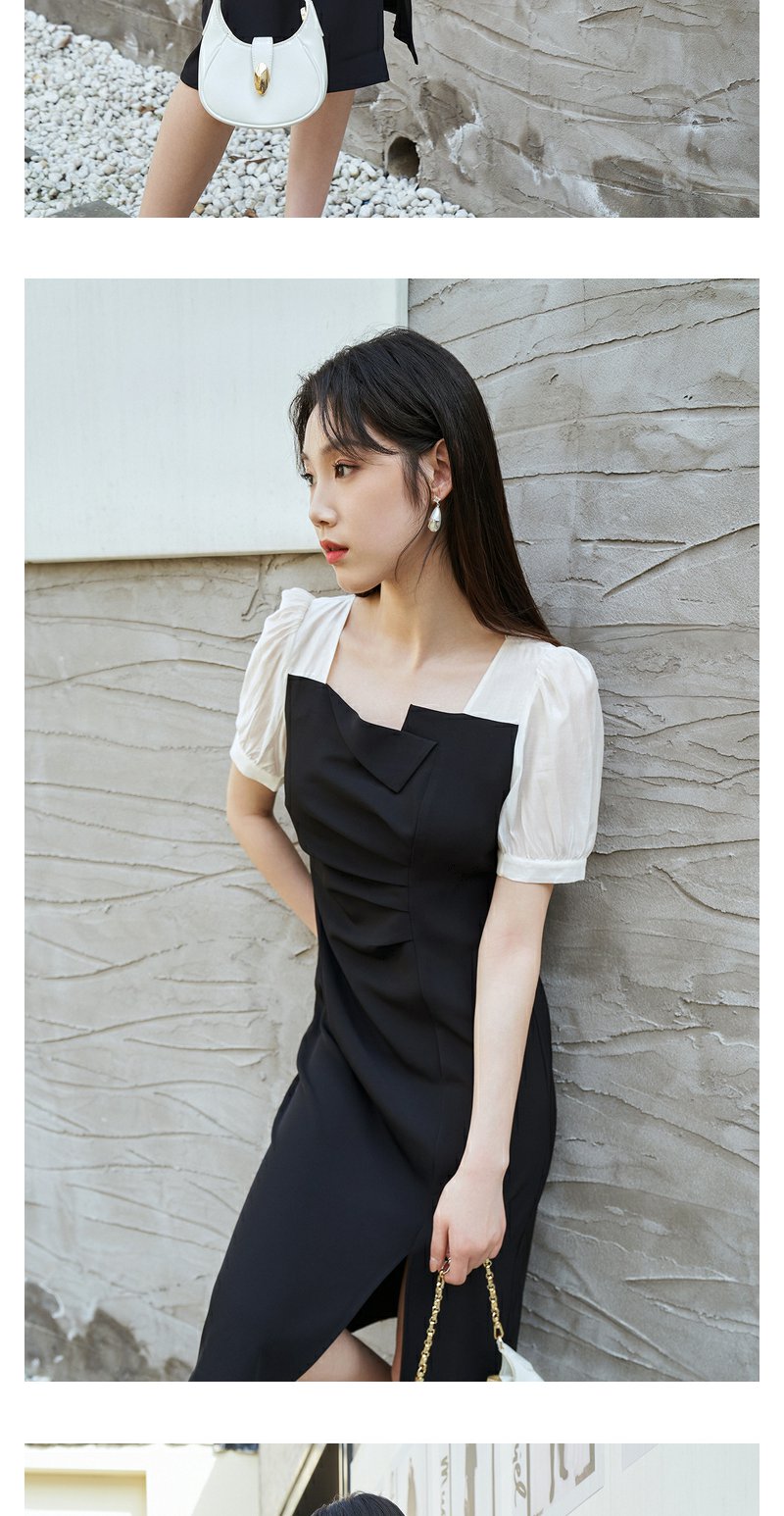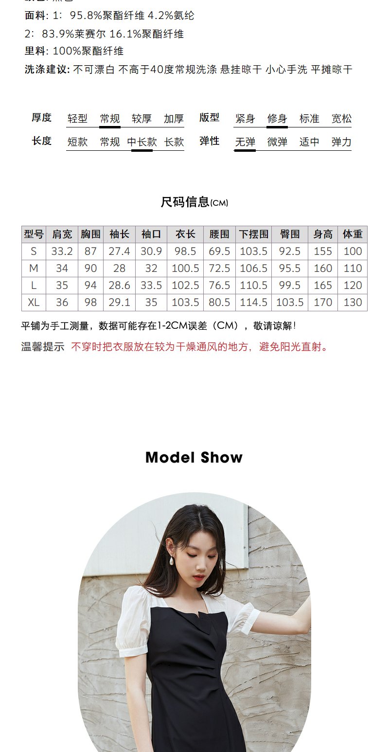 NEELLY纳俪商场同款黑色连衣裙女韩版设计感打褶显瘦A字裙夏季N23044Y04411